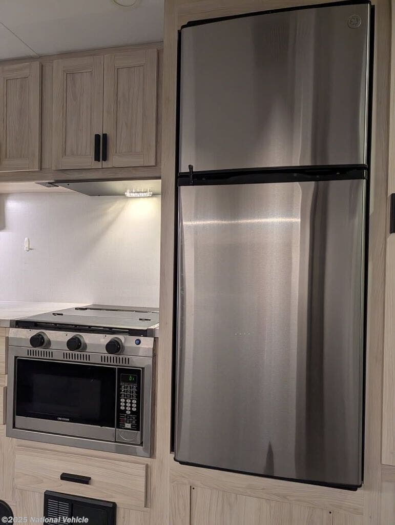 Three-burner cooktop with oven - microwave/grill/oven - Large 2-door refrigerator/freezerAbundant upper & lower storage