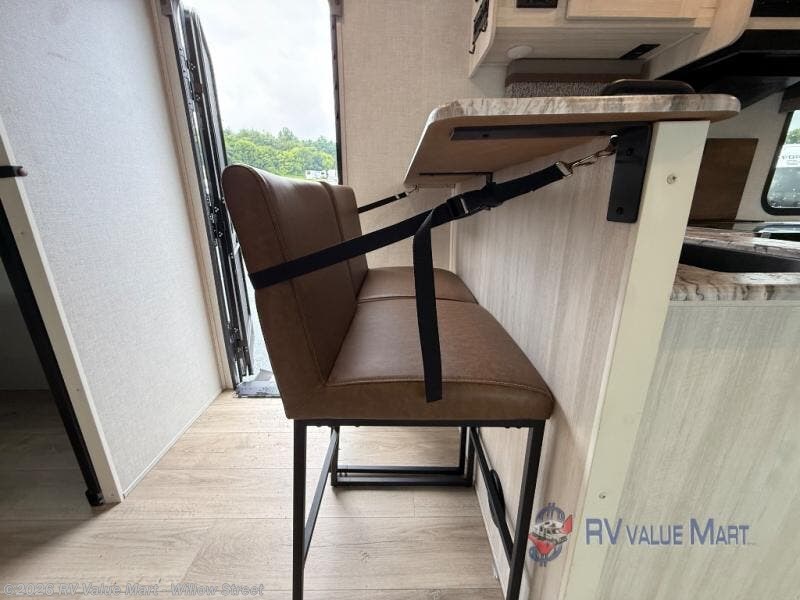 Every trip to the campground will be spent in comfort with this single slide out travel trailer. Once you arrive at the site, remove the kayaks or bikes from the rear storage door, start lunch on the outside kitchen, and put out the 15' power awning with LED lights. The interior includes a booth dinette slide with storage, a bar top with stools, plus an HD TV for movie nights. After a day of fun, head to the front private bedroom for a great night's rest on the queen bed, and you can store your belongings in the dual bedroom wardrobes!