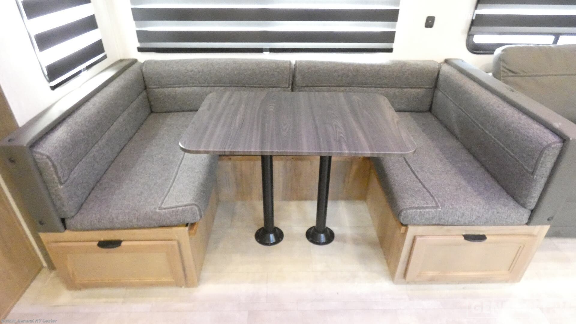 Forest River Timberwolf destination trailer 39TN highlights: U-Shaped Dinette Walk-in Pantry Bunk Room Fireplace Ten can easily sleep in this Timberwolf destination travel trailer featuring a bunkhouse, a large slide in the living area which creates a wide open space for a u-shaped dinette and sofa where you can enjoy the entertainment center with a fireplace. The kitchen is fully equipped with everything needed to create meals and snacks for your whole crew, and the walk-in pantry is great for storing all of your non-perishables. This space also features optional washer/dryer prep. In the very back, the bunkhouse features comfortable sleeping with double bunks on one side and double bunks with a hinged platform along the opposite side that the kids are sure to love. Up front, a side aisle bath featuring a shower with a seat, a vanity with medicine cabinet, and a toilet. You will also love the outside TV mount and 18' power awning space to create a nice size outdoor living area to enjoy on sunny days or pleasant evenings. Enjoy comforts of home wherever you decide to roam in a Timberwolf destination trailer by Forest River. The seamless roofing membrane with heat reflectivity and power gear frame technology provide a durable foundation to your RV. You will also appreciate the exclusive solar thermo controlled reflective tinted safety glass windows, tire pressure monitors, and an on-demand tankless water heater to make extended stays easier than ever. Inside, the night shades will provide your crew with privacy, while the LED lights illuminate your space. There are also light filtering sheer shading premium zebra blinds, along with a premium bedding ensemble and comforter, USB charging stations, a supersized central A/C unit, and many more comforts!