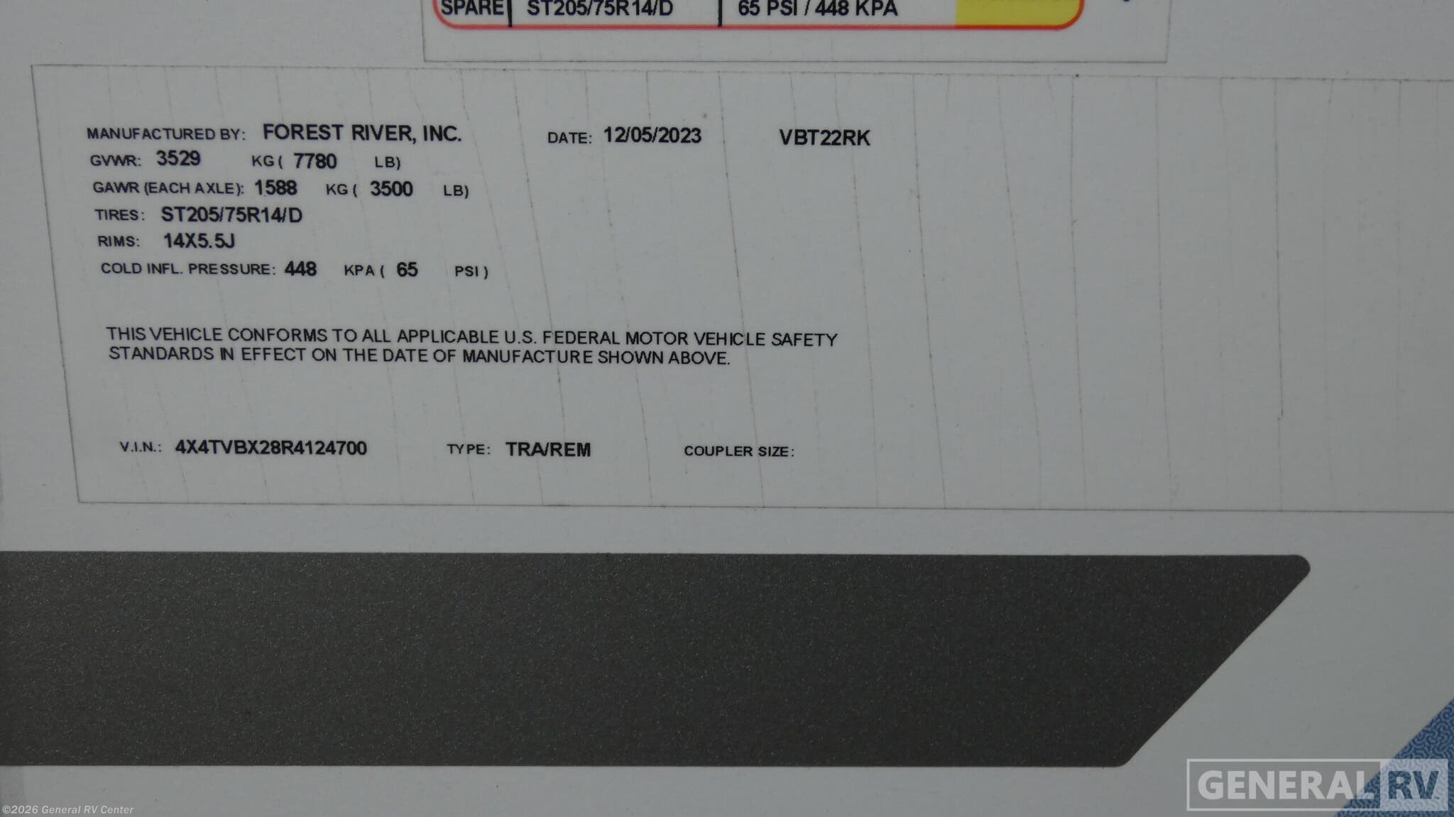 - VIN4X4TVBX28R4124700