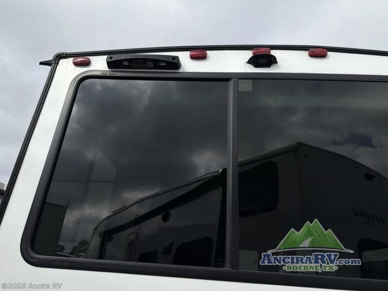 Your family of four or will enjoy this Wildwood View bunk model featuring 105 square feet of window space for unbelievable views of your surroundings. The Versa Slide features a refrigerator, pantry, and entertainment center with a door leading to a bunk space including a 30" x 70" flip-up bunk with a mattress pad below, storage cubbies for your things, and a desk with bar stool for any office work that you may need to do while you travel. All is neatly tucked away within the slide behind an entertainment wall with fireplace opposite the sectional sofa which is great for relaxing and entertaining family and friends indoors. The rear kitchen area offers 18 linear feet of countertop space with four bar stools, plus a three burner range and double sink. Your refrigerator and pantry will hold all of your perishables and dry goods, and those are nearby within the Versa slide. Up front, a private bedroom with Versa-Tilt custom king bed which provides 14-1/2" of additional walking around space, plus you will find a wardrobe that has been prepped for a washer and dryer if you choose to add, as well as dual nightstands beneath wardrobes on either side of the bed. A large pass-through storage compartment offers plenty of storage for your outdoor gear, and if you enjoy outdoor cooking, you might want to add the outside kitchen option as well.