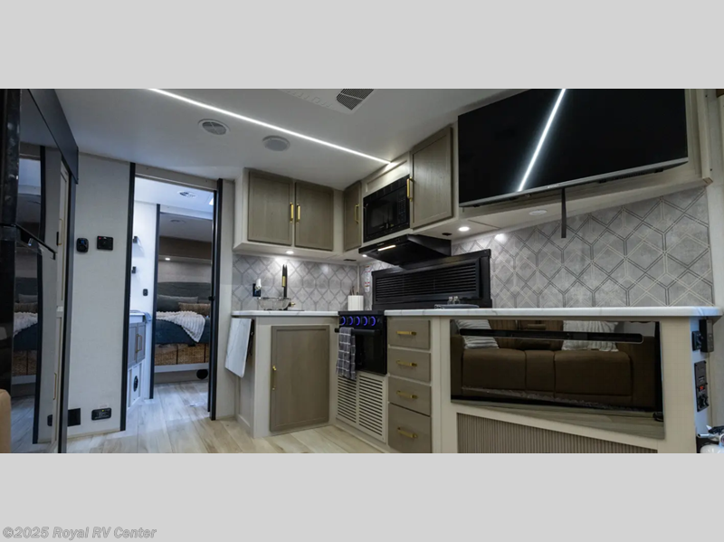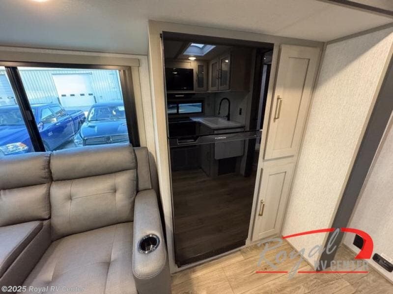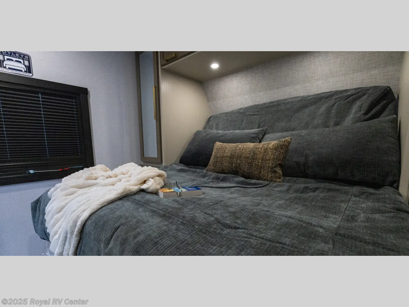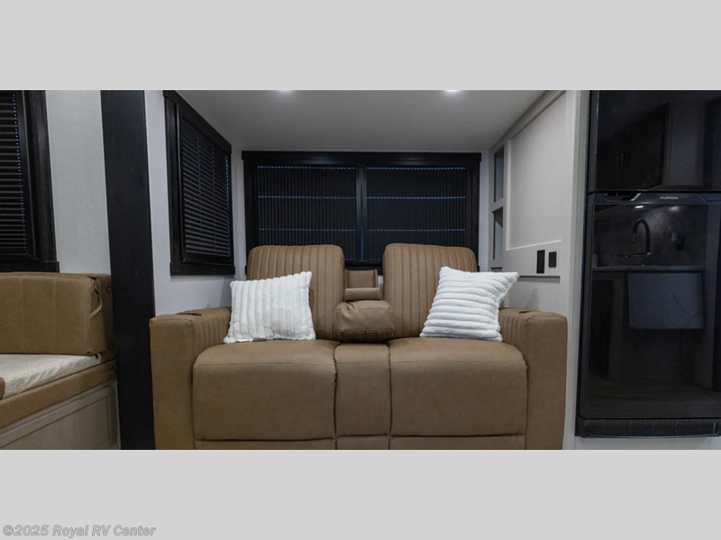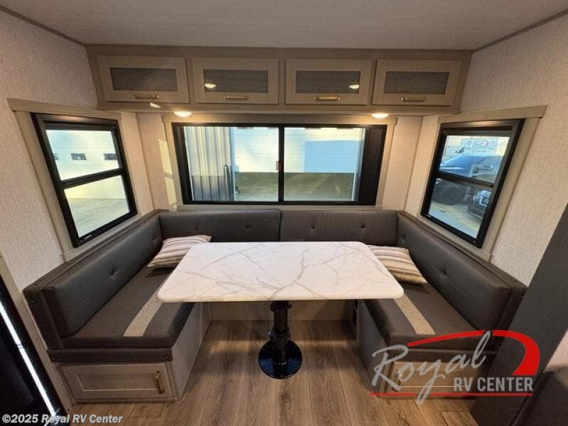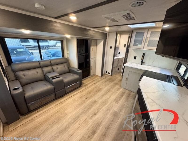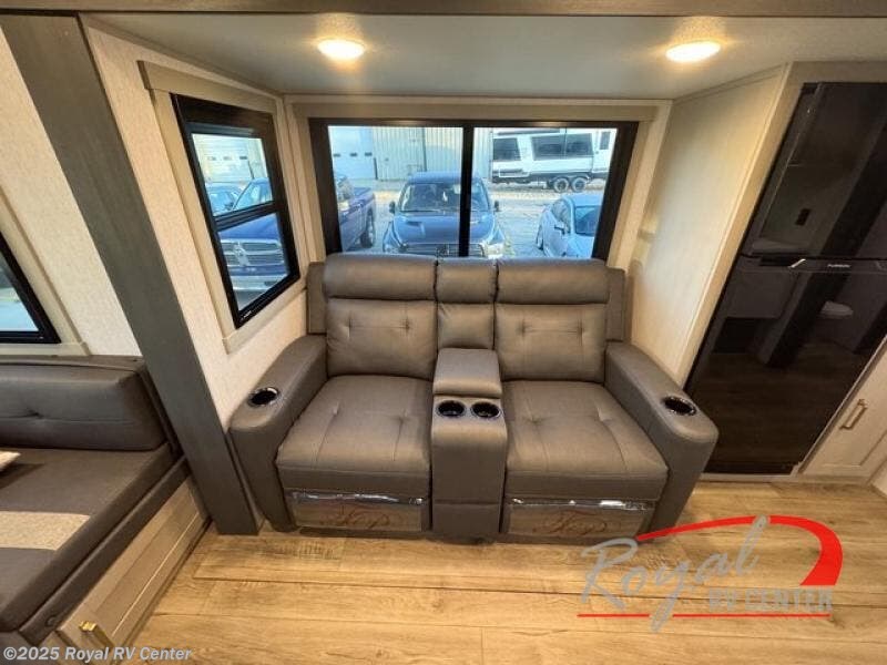 If you've been looking to upgrade your RV, the time is now and the this travel trailer is the one! You will love being able to cook indoors on the three burner cooktop or outdoors on the exterior griddle, plus there is a 19' awning with LED lights for an inviting space. Inside, you can dine around the U-shaped dinette, and this area can become sleeping space for one to two guests. Kick up your feet on the theater seating across from the 40" LED TV and fireplace, then clean up in the walk-through bath before bed. Speaking of bed, you'll love the walk-around queen bed with Versa-Tilt in the master bedroom, and you'll find the second entry door here as well for convenience!