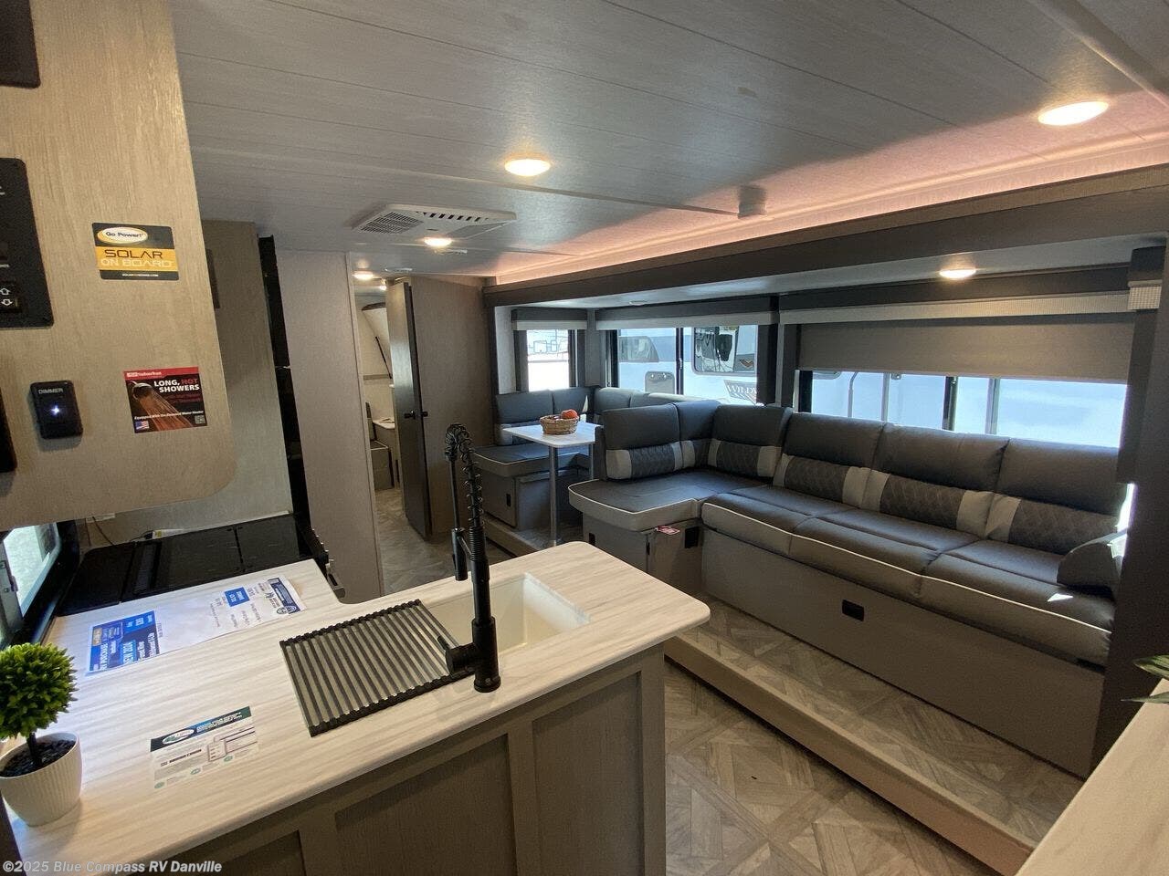 If you like to travel with a large crew, choose this Wildwood X-Lite travel trailer! This trailer has two private sleeping spaces with a private bedroom up front and a private bunkhouse in the back. Not only does the bunkhouse have three bunk beds, but it also has a closet for storage and a jiffy sofa for lounging. In the main living area, there is a large slide that holds the U-shaped dinette and sofa. These pieces of furniture are a part of the Versa Lounge, and you can customize them to function as you need them to. The panoramic windows surround the dinette and sofa so that you can take in the scenic views while you relax. You even have an outdoor camp kitchen to make it more convenient.