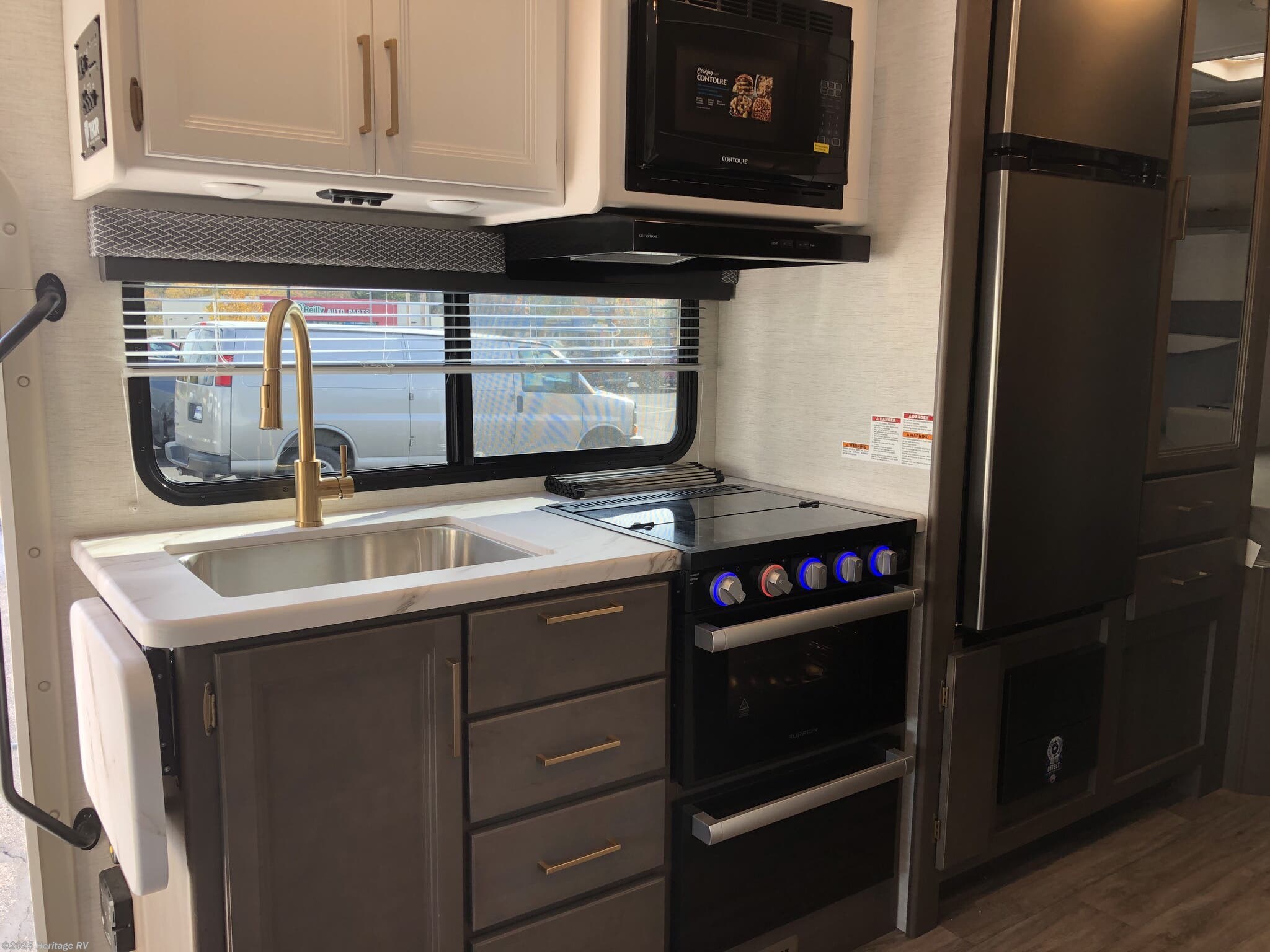 - Floorplan: 25V (Bunk Over Cab, Mid Bath, Mid Kitchen, Outdoor Entertainment, Rear Bedroom)