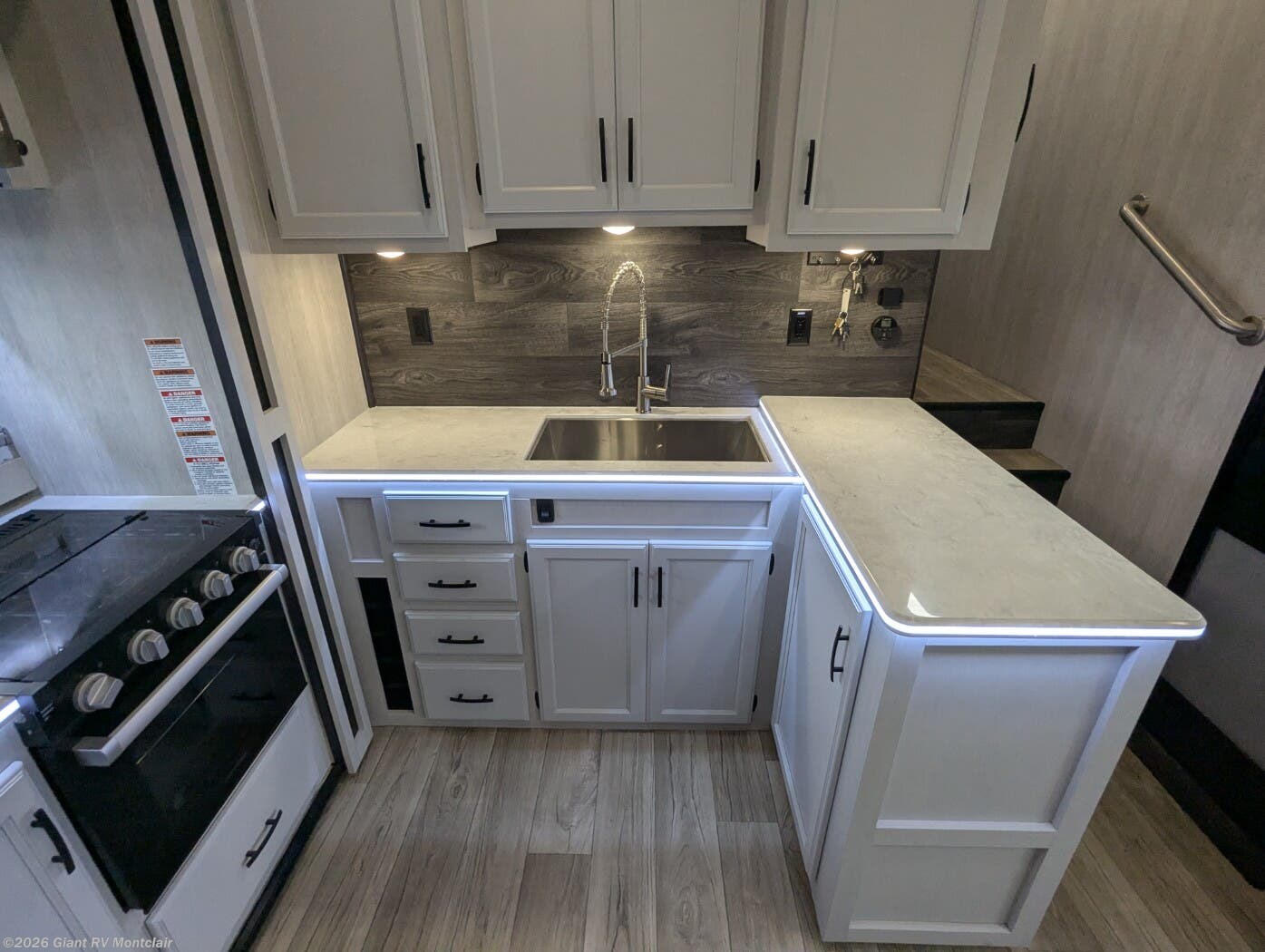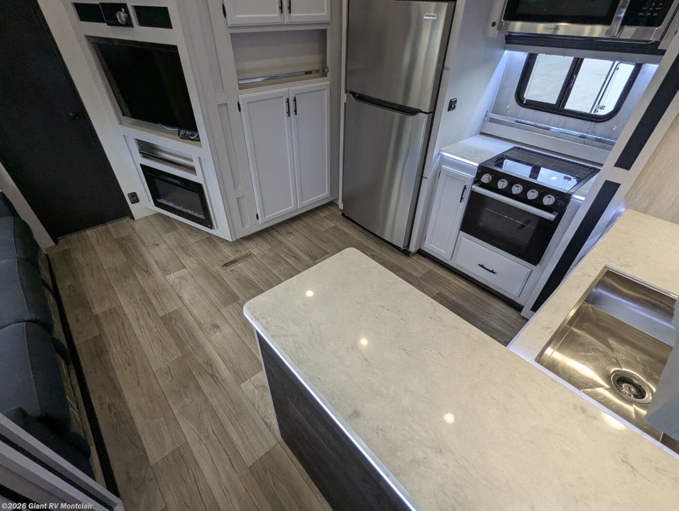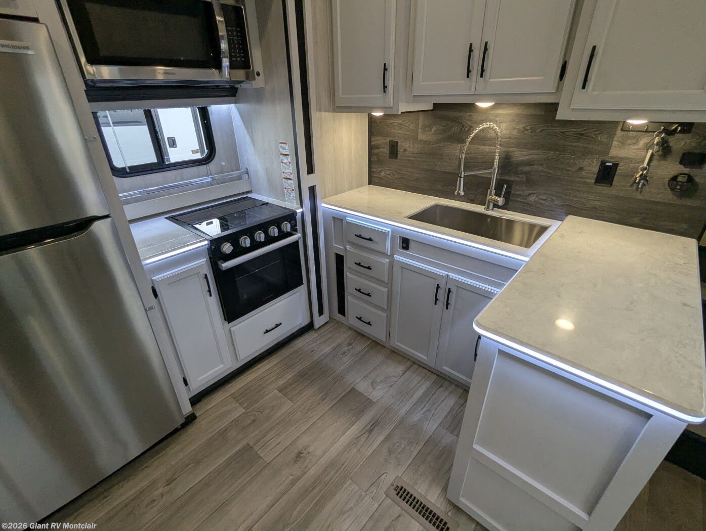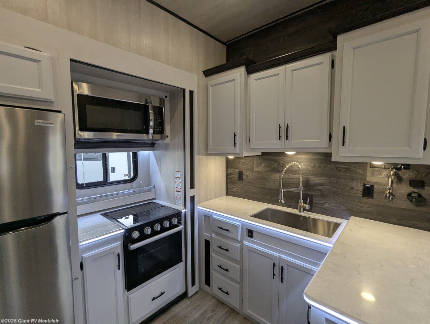 • Comfort & Convenience – Dual ducted A/C, electric awning with LED lighting, exterior pass-through storage, solar prep, generator prep, heated/enclosed underbelly, and high-capacity holding tanks.