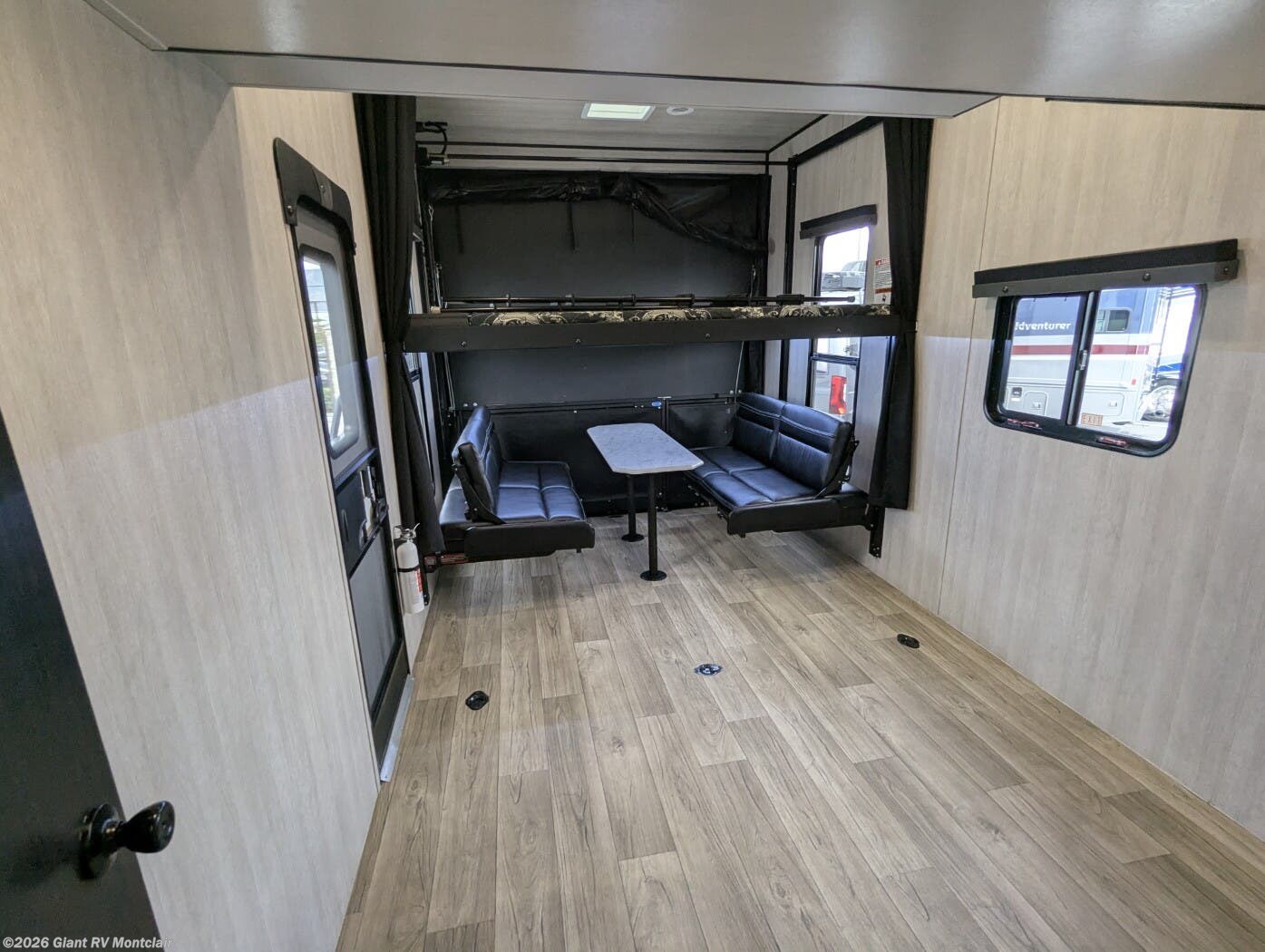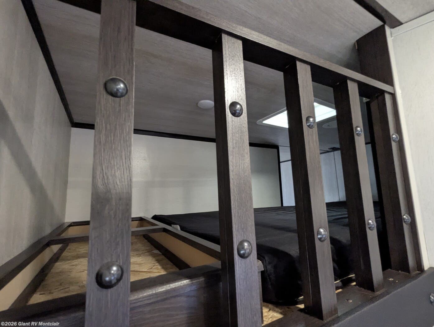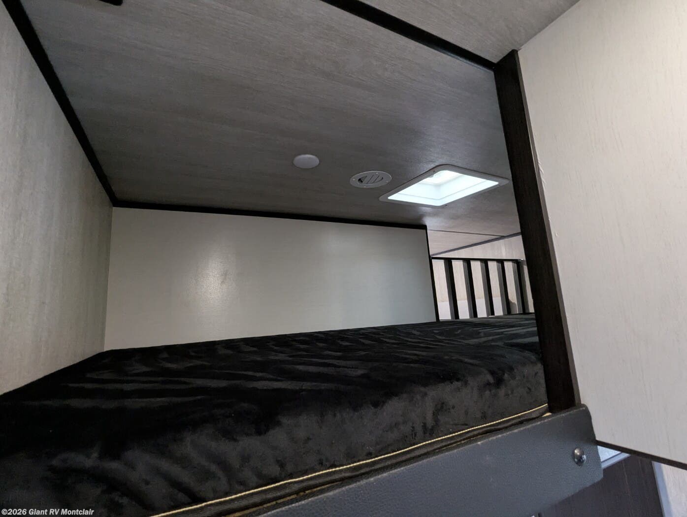 • Large Garage & Loading Ease – Oversized cargo area with heavy-duty tie-downs, spring-assist ramp door, ducted A/C in garage, and loft sleeping above; ideal for ATVs, UTVs, motorcycles, or gear.