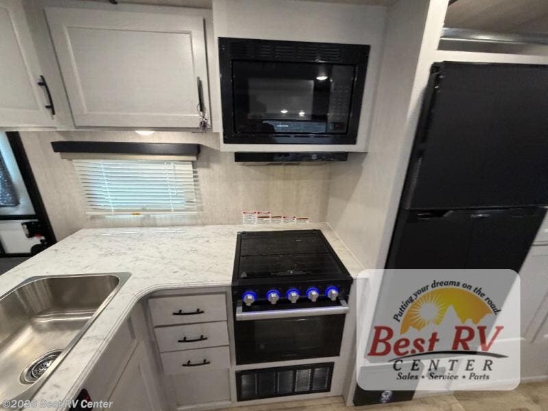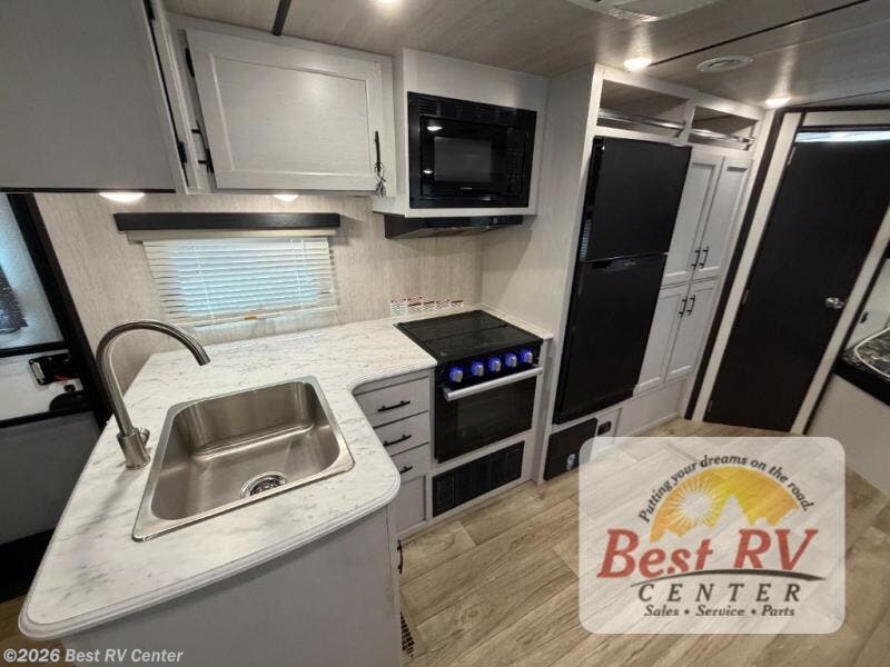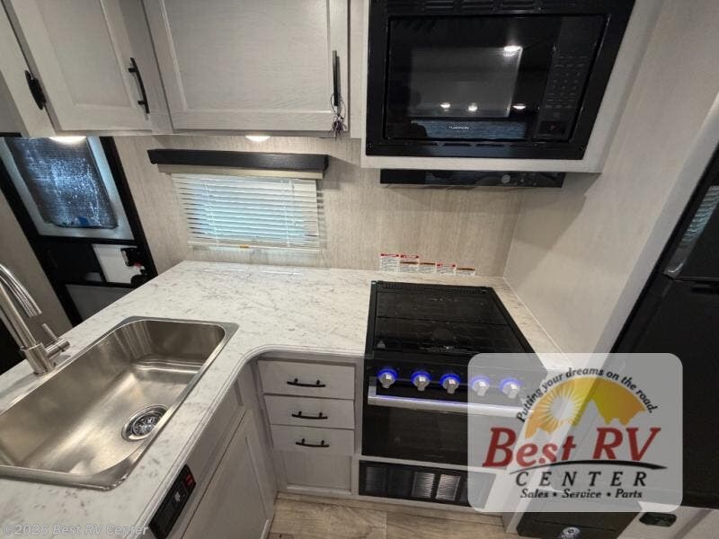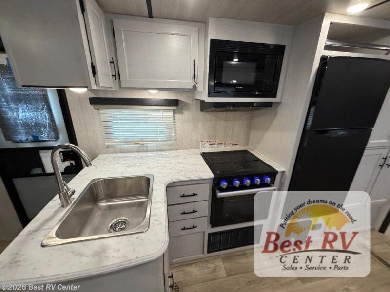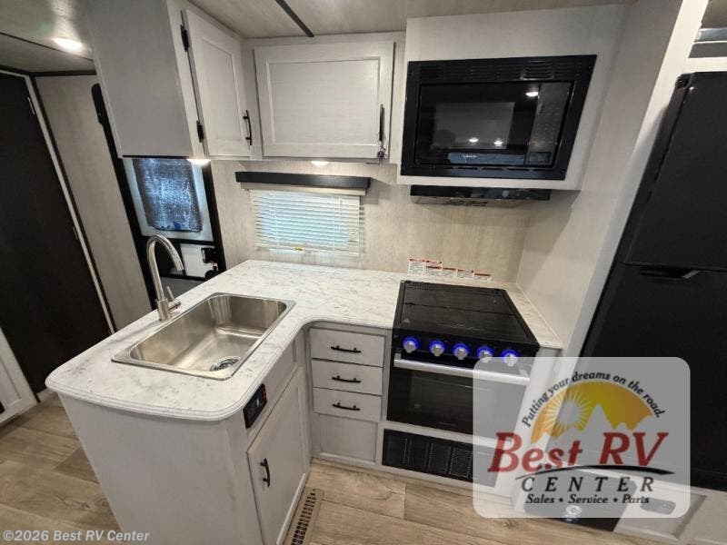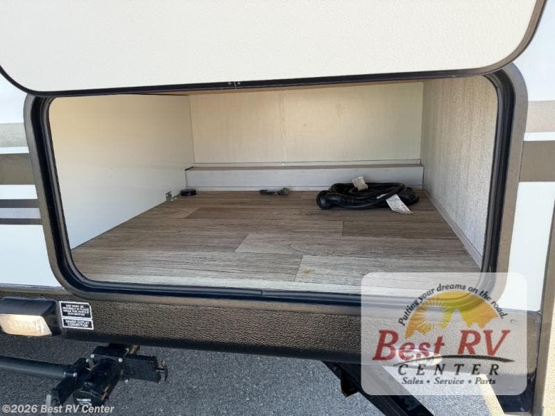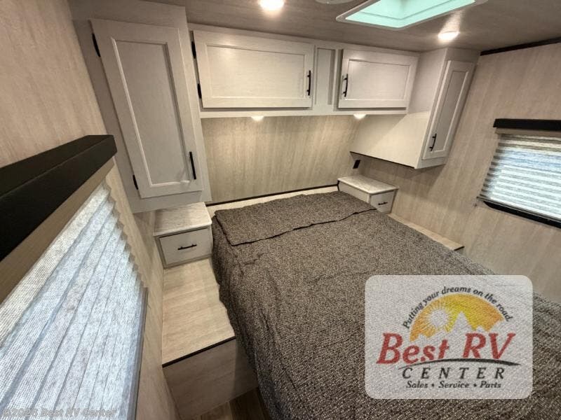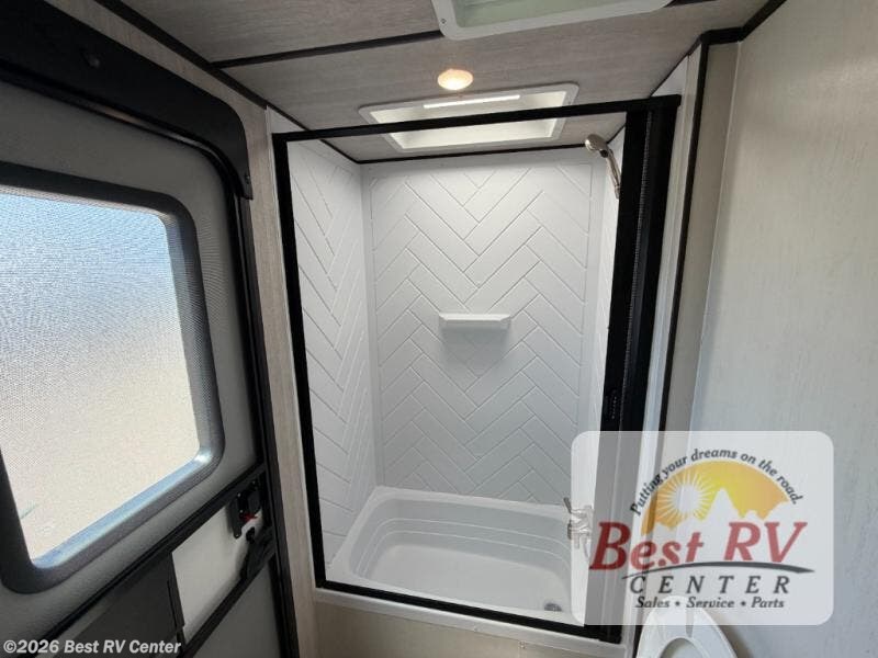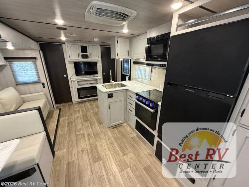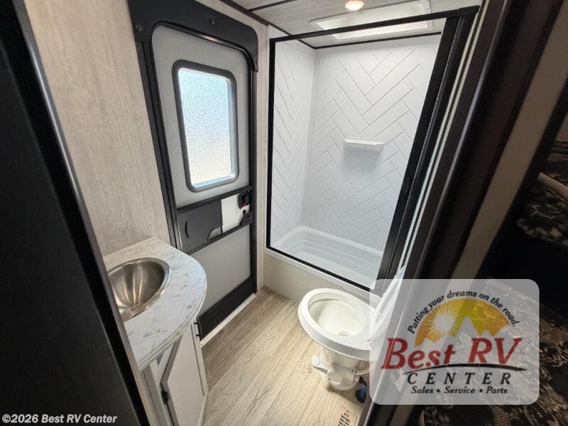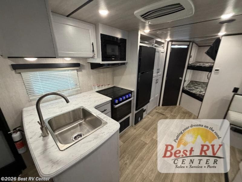 Each camping trip in this travel trailer will be a trip well spent! The double-size bunks in the back will be a big bonus with the little ones and you'll appreciate a front private bedroom with a queen bed just like at home. Within the large slide out you'll find a U-shaped dinette and sofa to dine, relax, and sleep even more guests, and everyone will love the 32" TV for movie night. This model includes plenty of storage space, including an exterior pass-through, overhead compartments, and a pantry/wardrobe. The full bath with its own exterior entry door is another convenient feature since it lets you use the restroom quickly without having to bring dirt throughout the trailer.
