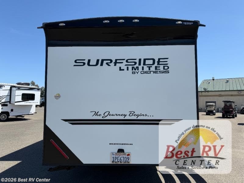 With any Surfside Limited travel trailer or fifth wheel by Genesis Supreme you will find fiberglass laminated aluminum-framed sidewalls and a front wrap with diamond plate for a sleek look that is also durable so you can enjoy your RV for years to come. There are a few forced options you are sure to appreciate, like the front power jack for easy set-up, the 190W solar panel for off-grid camping, plus the Exterior Premier Package that includes a power awning with an LED strip, stabilizer jacks, a 6 gallon gas water heater and more! Head inside to find tinted windows, screwed together cabinet frames, metal ball bearing drawer guides, 12V USB chargers, and many more comforts and conveniences!