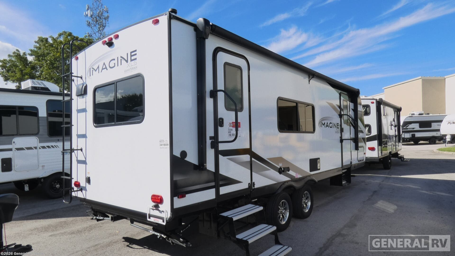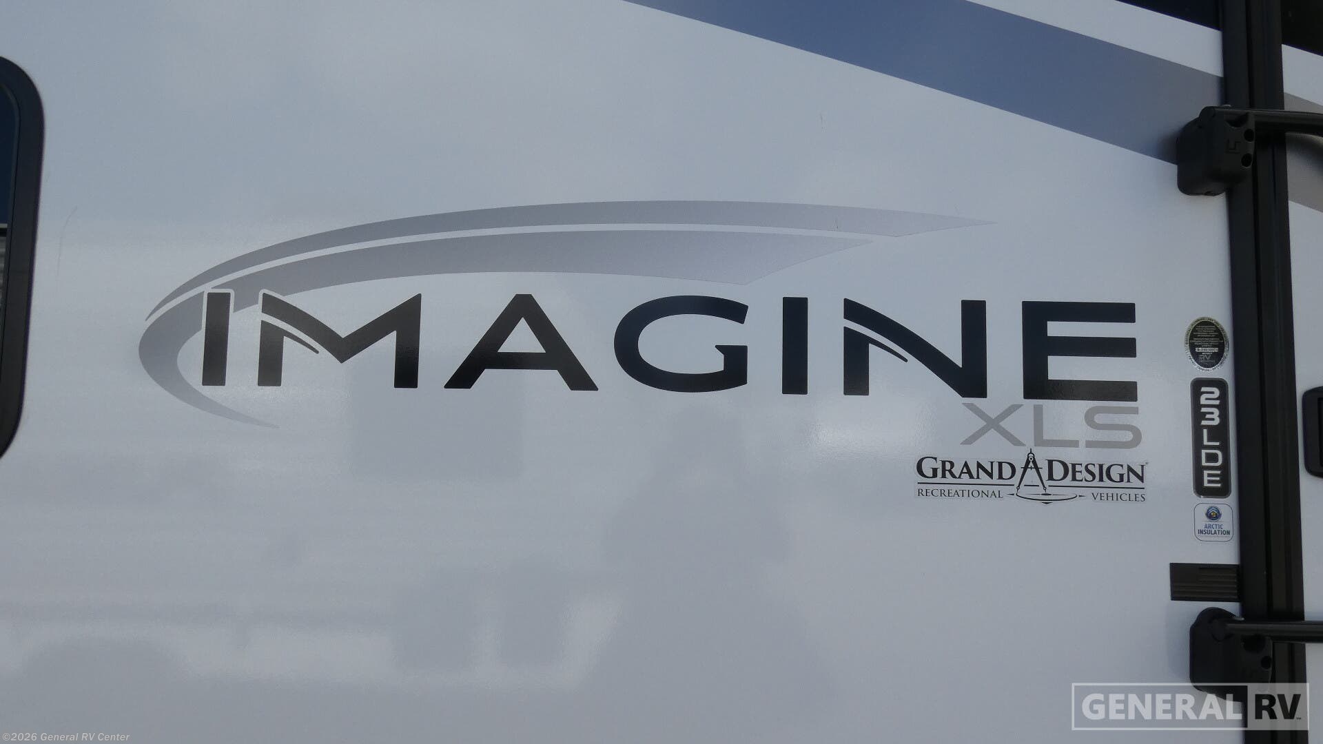 Step into the world of adventure with the 2024 Grand Design Imagine XLS 23LDE. This travel trailer is designed to offer you a perfect blend of comfort and functionality. At just over 28 feet in length, it provides a spacious and inviting interior that makes it an ideal choice for families or couples seeking to explore the open road. The rear kitchen layout is both practical and stylish, featuring a mid-size refrigerator that runs on electric or propane, and a three-burner cooktop, ensuring you have everything you need to whip up your favorite meals. The theater seating and booth dinette in the center living area offer cozy spots to relax and unwind after a day of adventure. The front bedroom houses a comfortable queen bed, ensuring a restful night's sleep. With a convertible bed option, this RV comfortably sleeps up to four people. The center bath is thoughtfully designed with a shower complemented by a plastic and glass enclosure. The 20-foot powered retractable awning extends your living space to the outdoors, perfect for enjoying a morning coffee or an evening under the stars. With ample storage, including an unobstructed pass-thru and overhead cabinets, you'll have no trouble packing all your essentials. Ready to hit the road? Visit your nearest General RV dealership to learn more about this fantastic model and start your journey today!