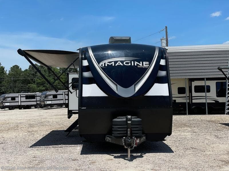 Just imagine leaving the world behind and secluding yourself away with your favorite people in your Grand Design Imagine travel trailer! The Imagine has been designed to enjoy extended season camping and includes a high-capacity furnace, a heated and enclosed underbelly with suspended tanks, a designated heat duct to the subfloor, and a high-density roof insulation with attic vent. You'll have maximum head room on the interior with 81" radius ceilings, and large panoramic windows to let in natural lighting. The exclusive drop-frame pass-through storage compartment is going to allow you to bring along lots of equipment, and the universal docking station is an all-in-one location for utilities and hook-ups. You'll also have industry-leading tank capacities so that you can fill and empty your tanks less often.
