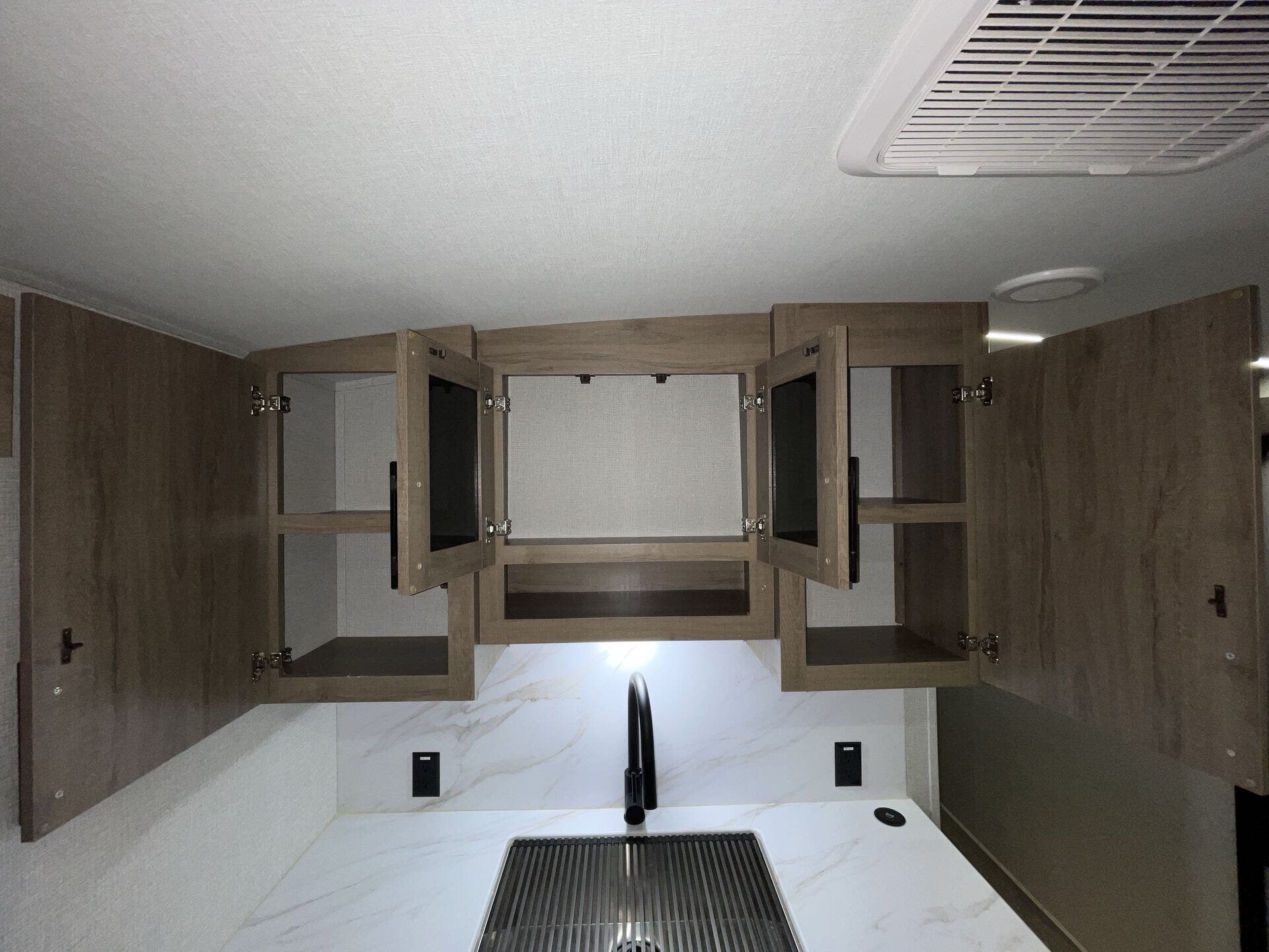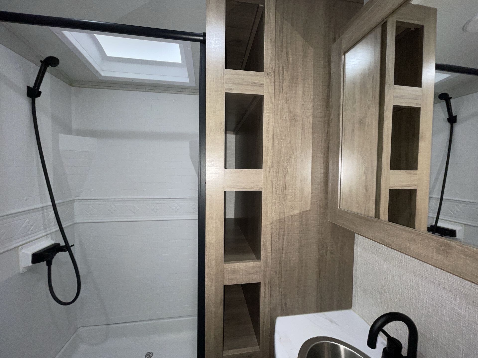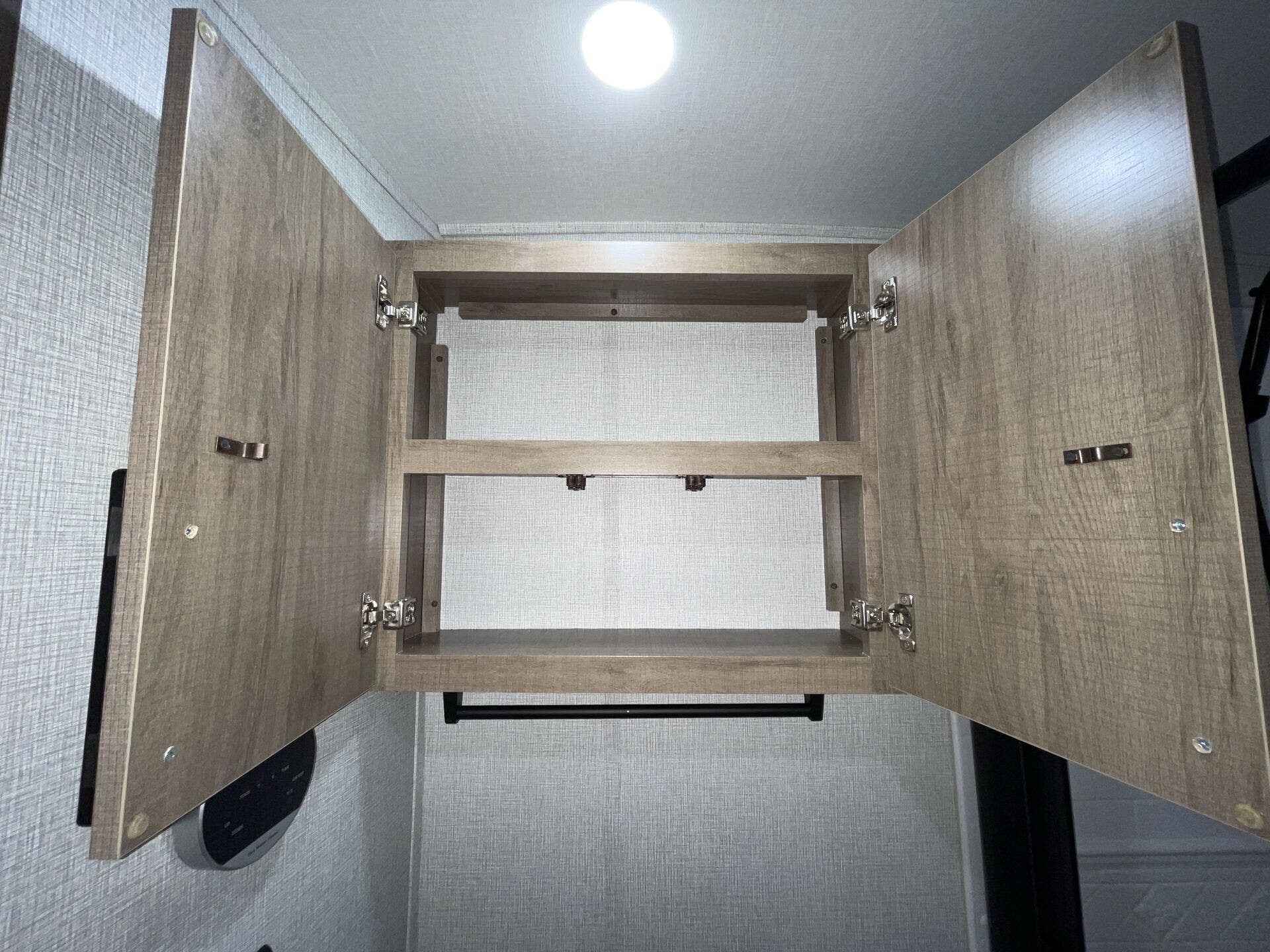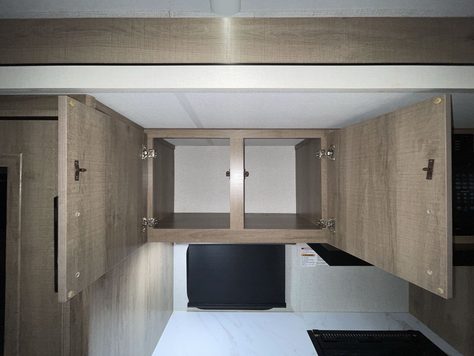 Day/Night Shades, Kitchen Sink, Medicine Cabinet, Overhead Cabinetry, Pantry, Queen Bed, Roof Vents, Shower, Theater Seating, Toilet, Wardrobe(s)