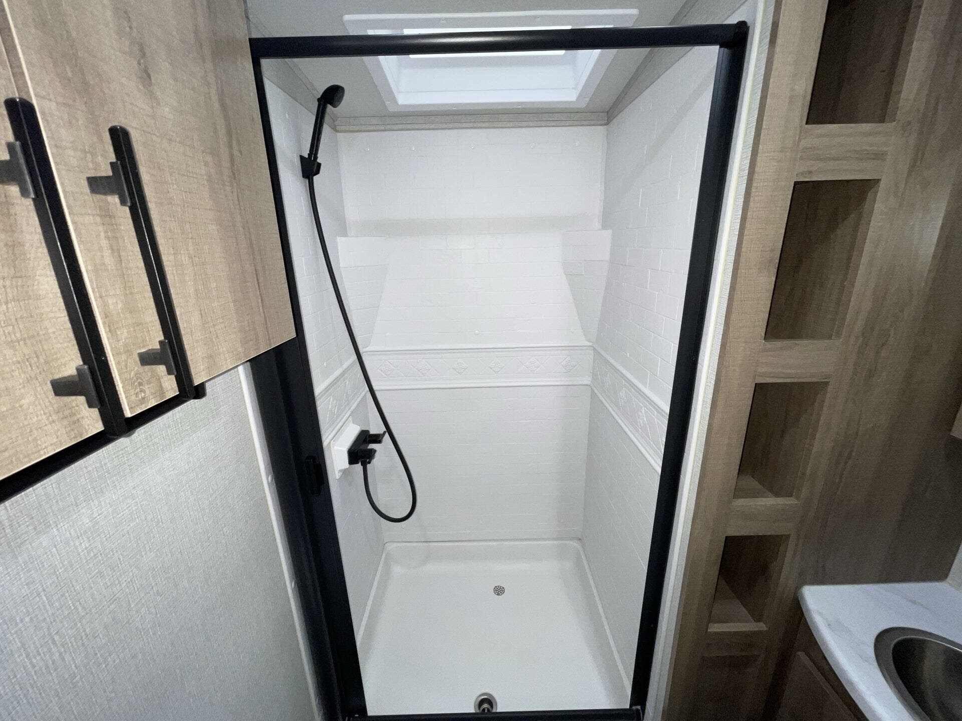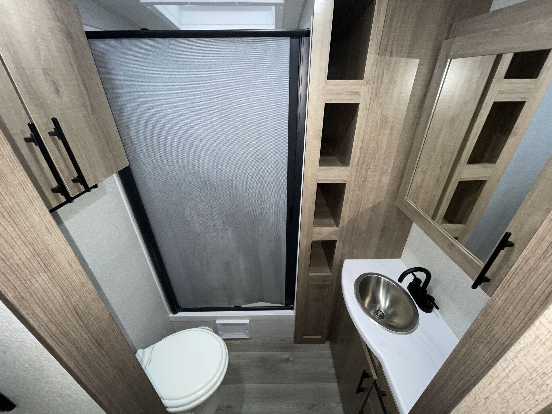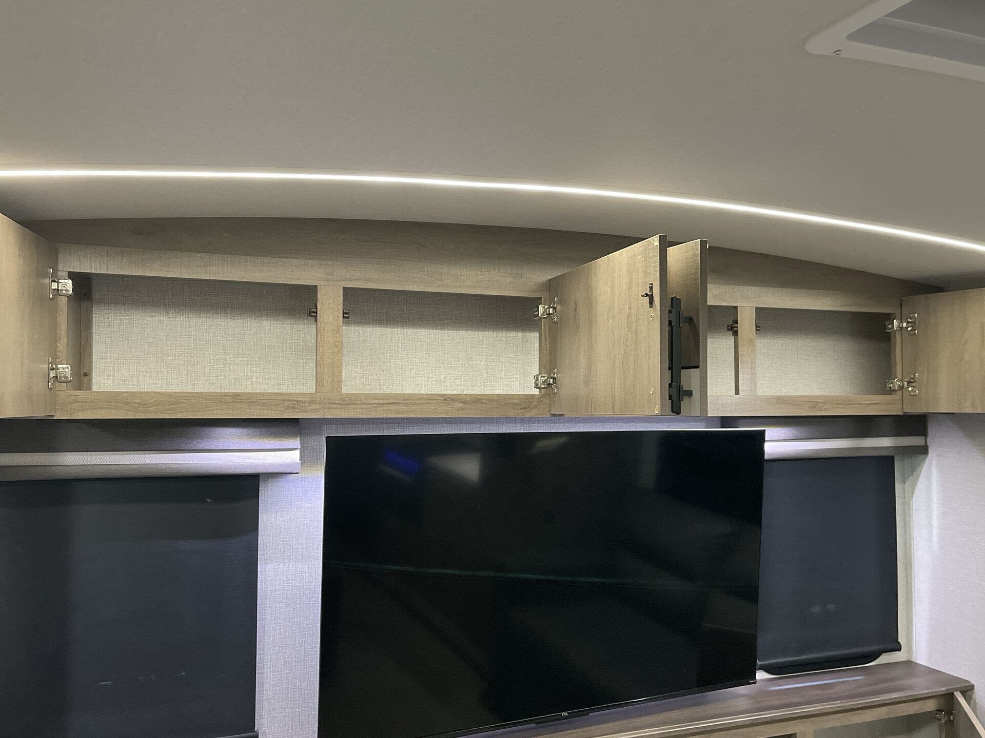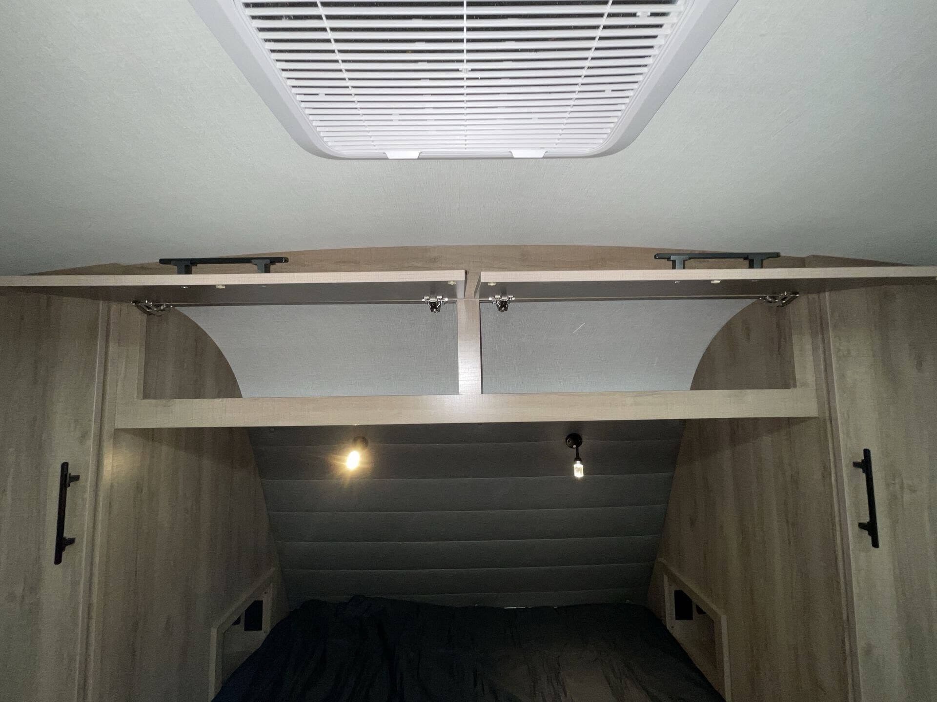 Day/Night Shades, Kitchen Sink, Medicine Cabinet, Overhead Cabinetry, Pantry, Queen Bed, Roof Vents, Shower, Theater Seating, Toilet, Wardrobe(s)