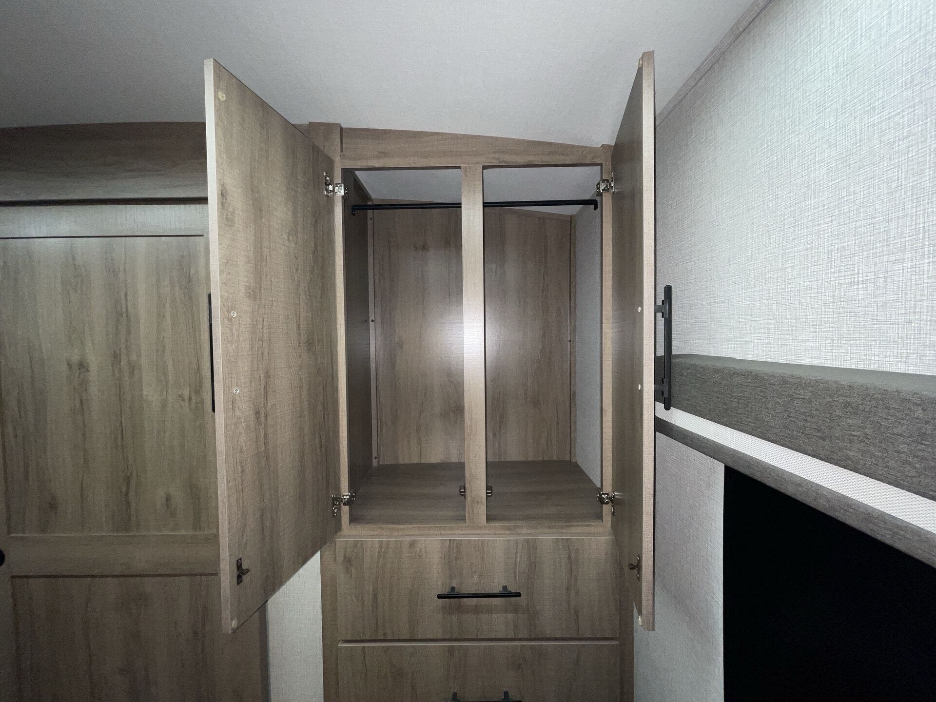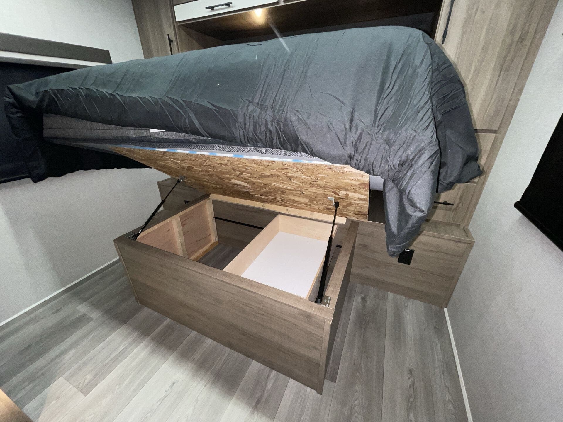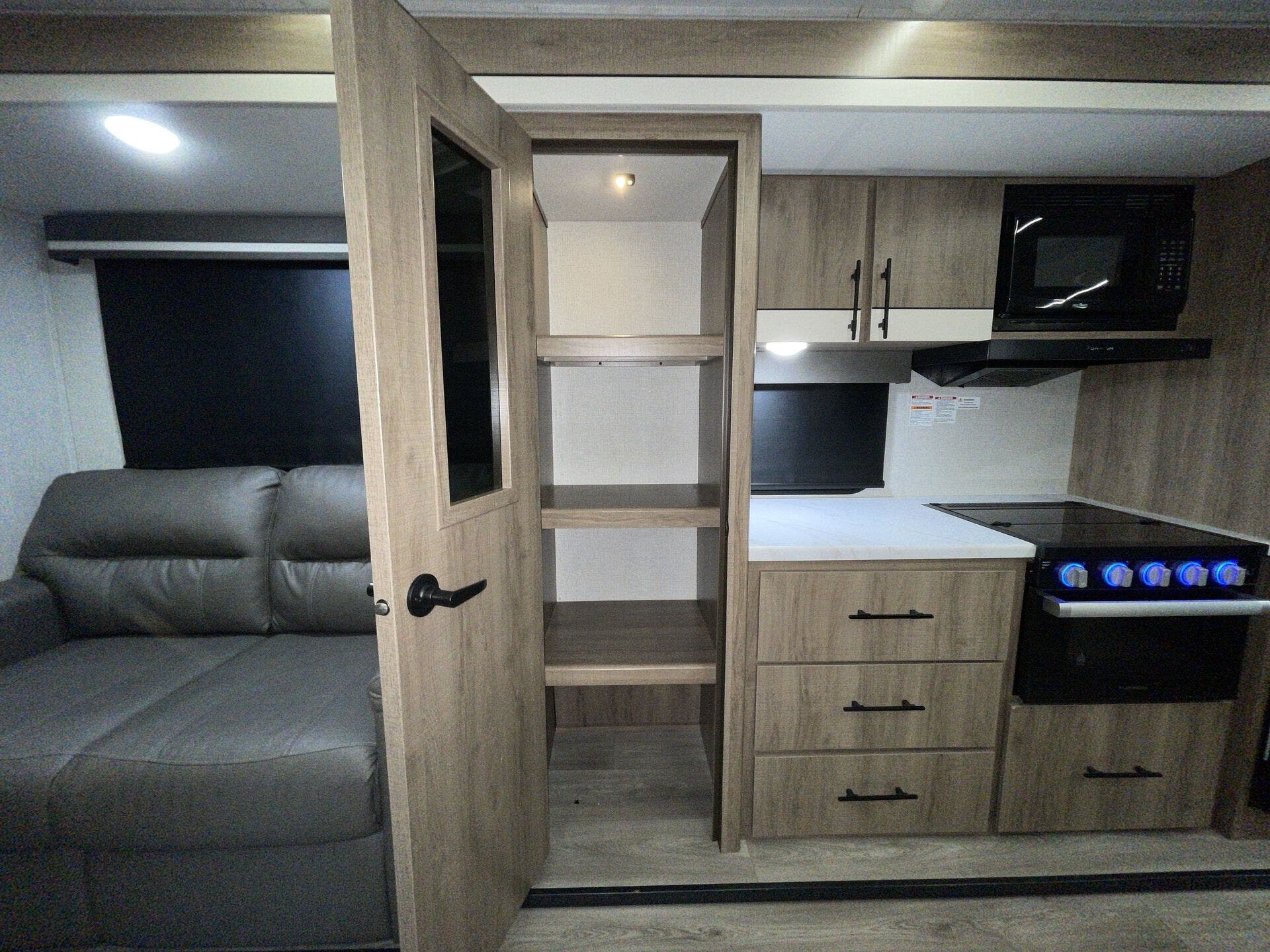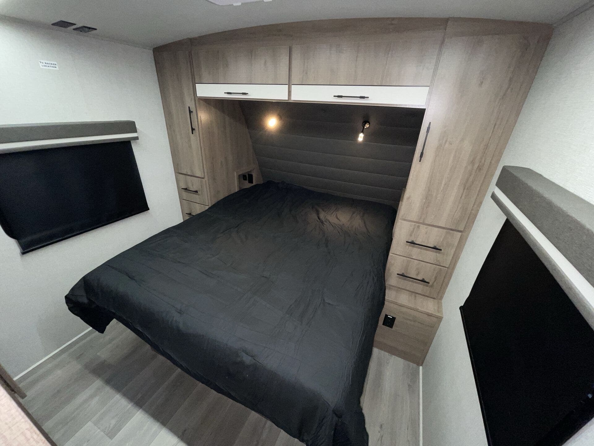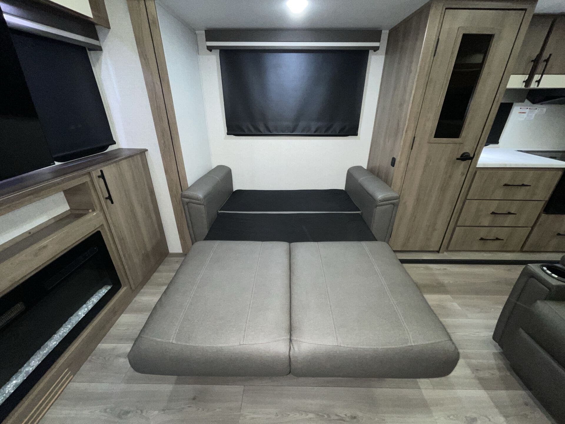At the front, you’ve got privacy in the bedroom with a comfortable queen bed and storage galore. The bath’s good-sized, and the entire rig is built for comfort: big water tanks, strong insulation, high-output furnace and AC, plus that tankless hot water heater so you never run out. Whether for weekend trips or longer stays, this 3100RD makes “home away from home” feel easy.