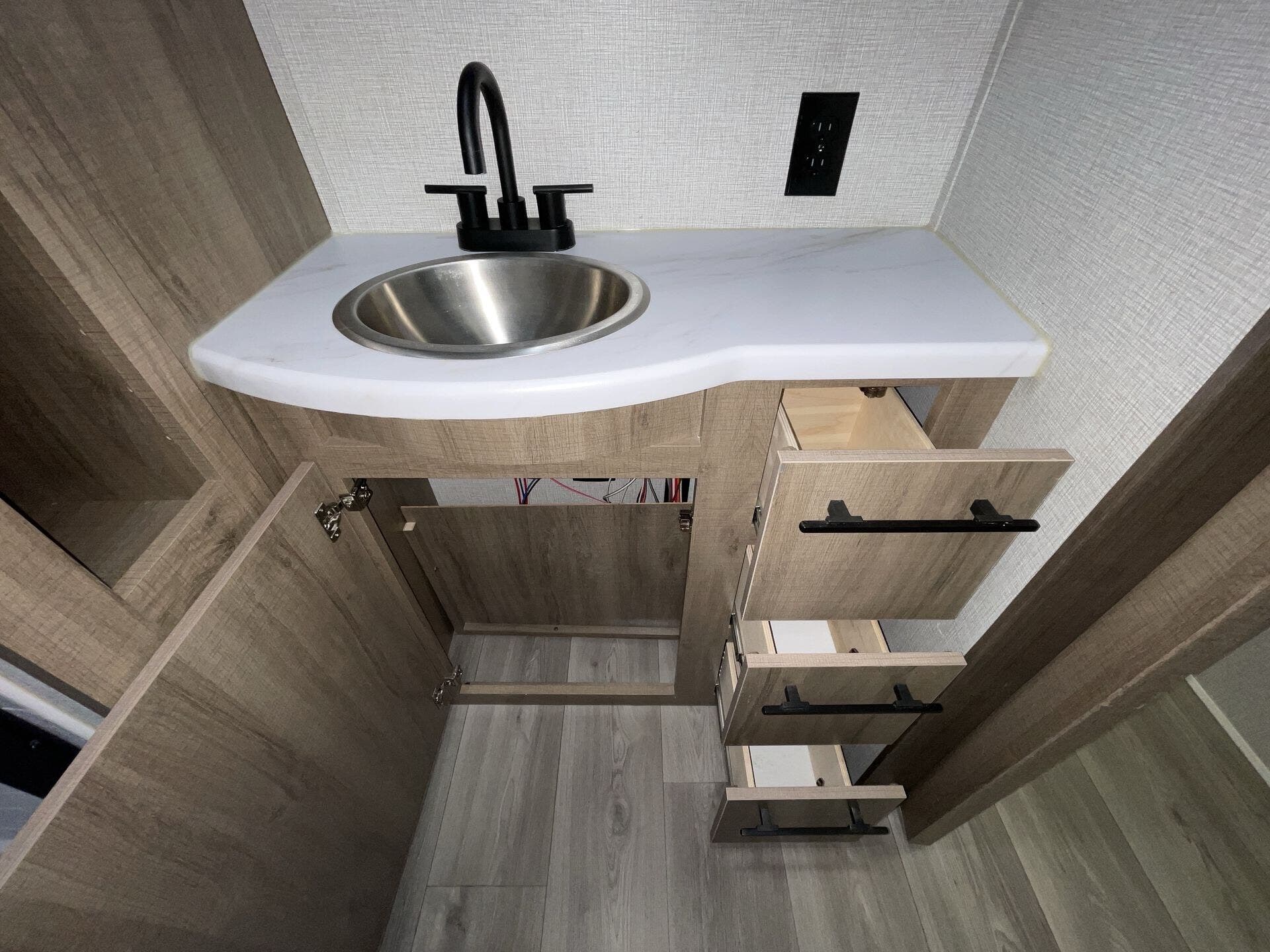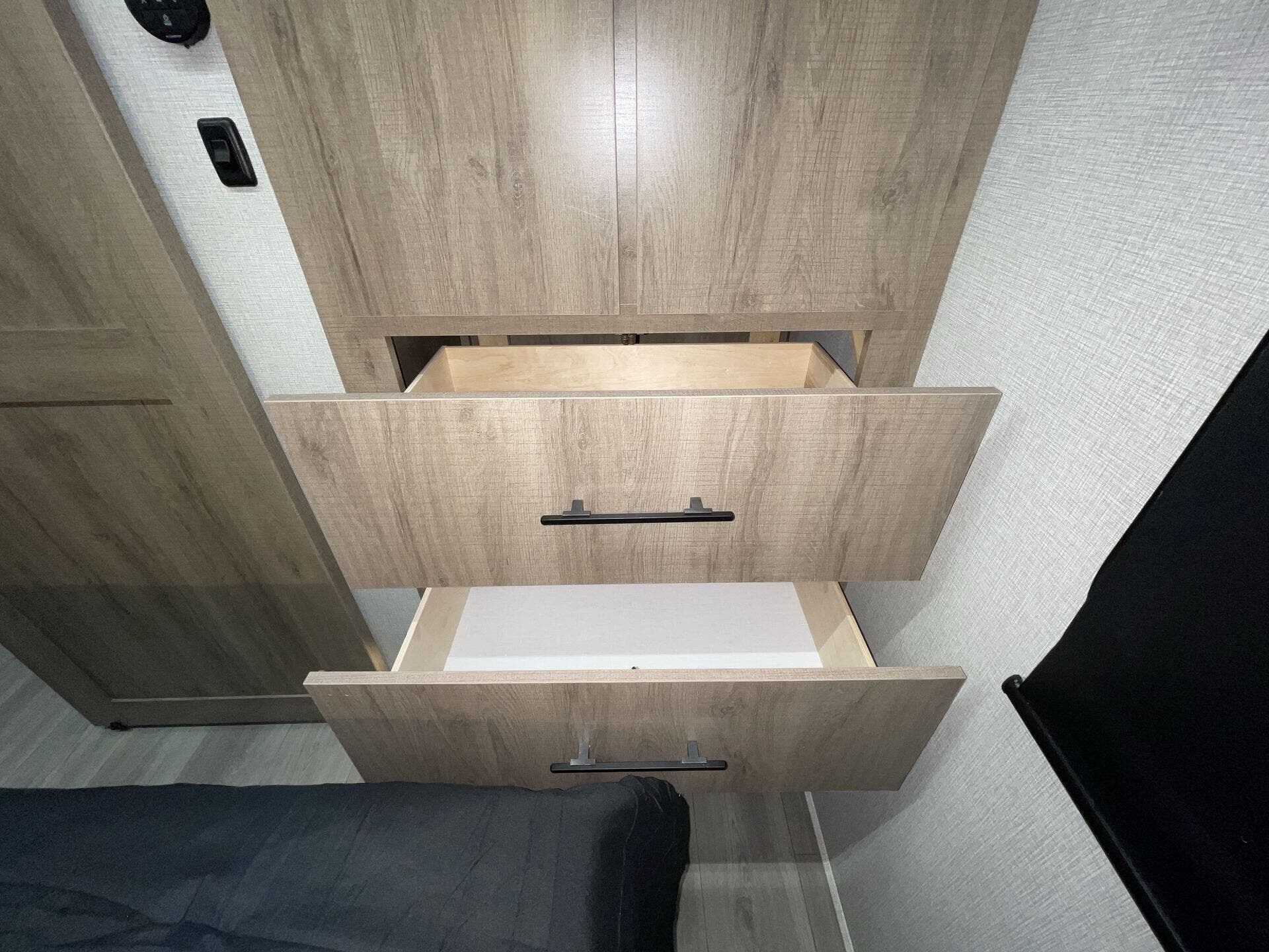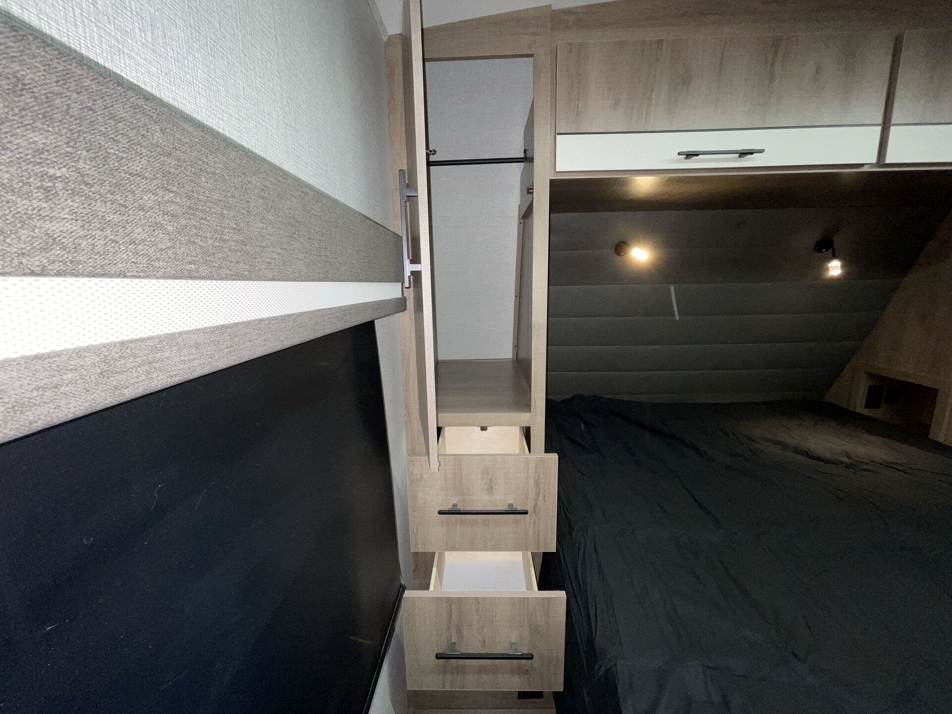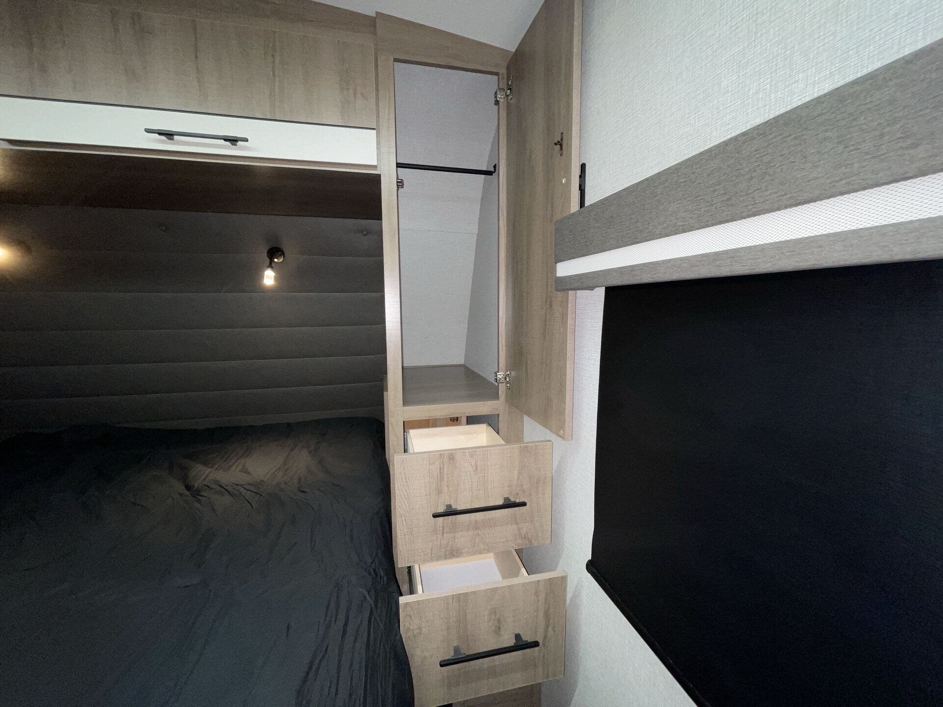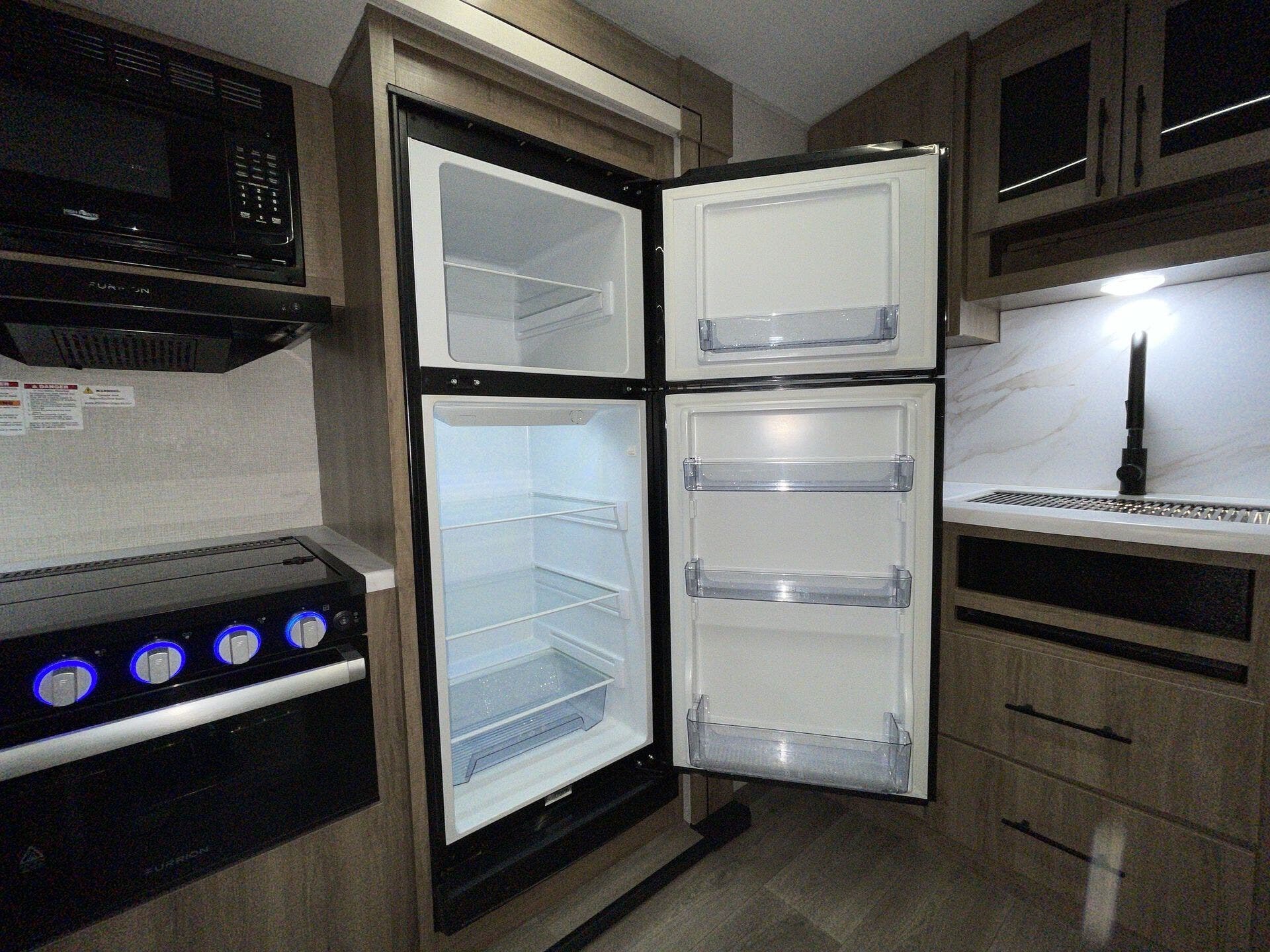 At the front, you’ve got privacy in the bedroom with a comfortable queen bed and storage galore. The bath’s good-sized, and the entire rig is built for comfort: big water tanks, strong insulation, high-output furnace and AC, plus that tankless hot water heater so you never run out. Whether for weekend trips or longer stays, this 3100RD makes “home away from home” feel easy.