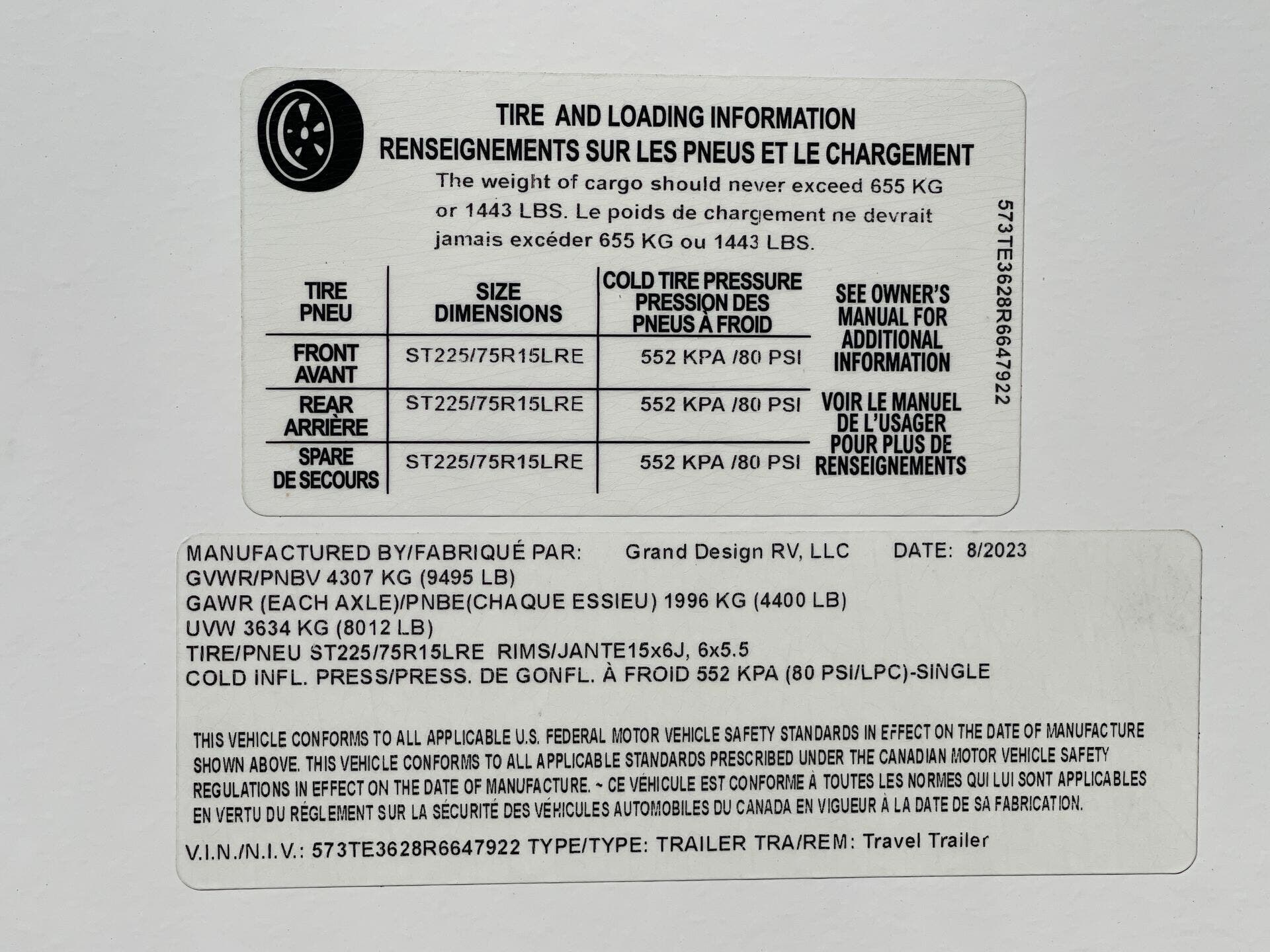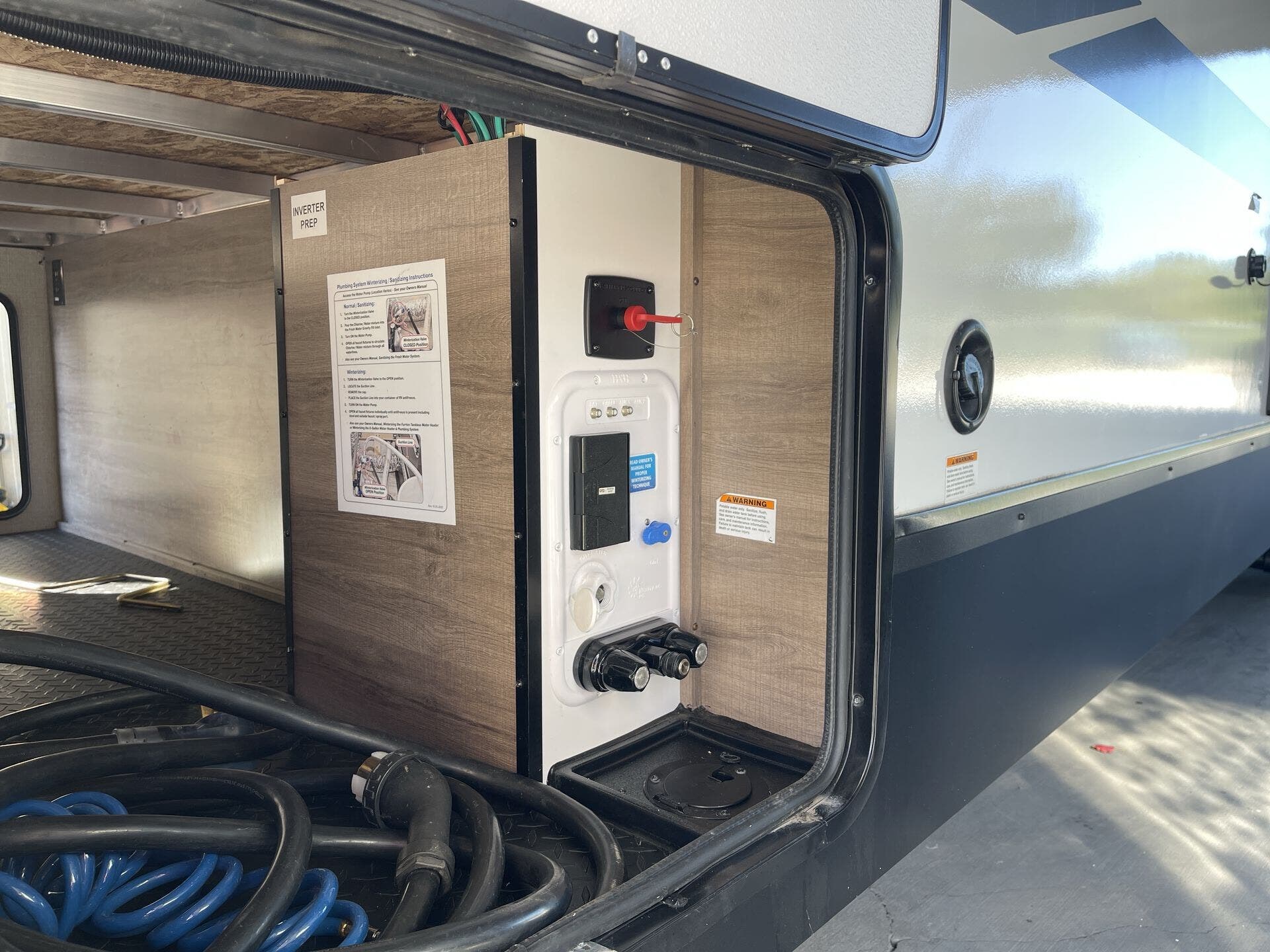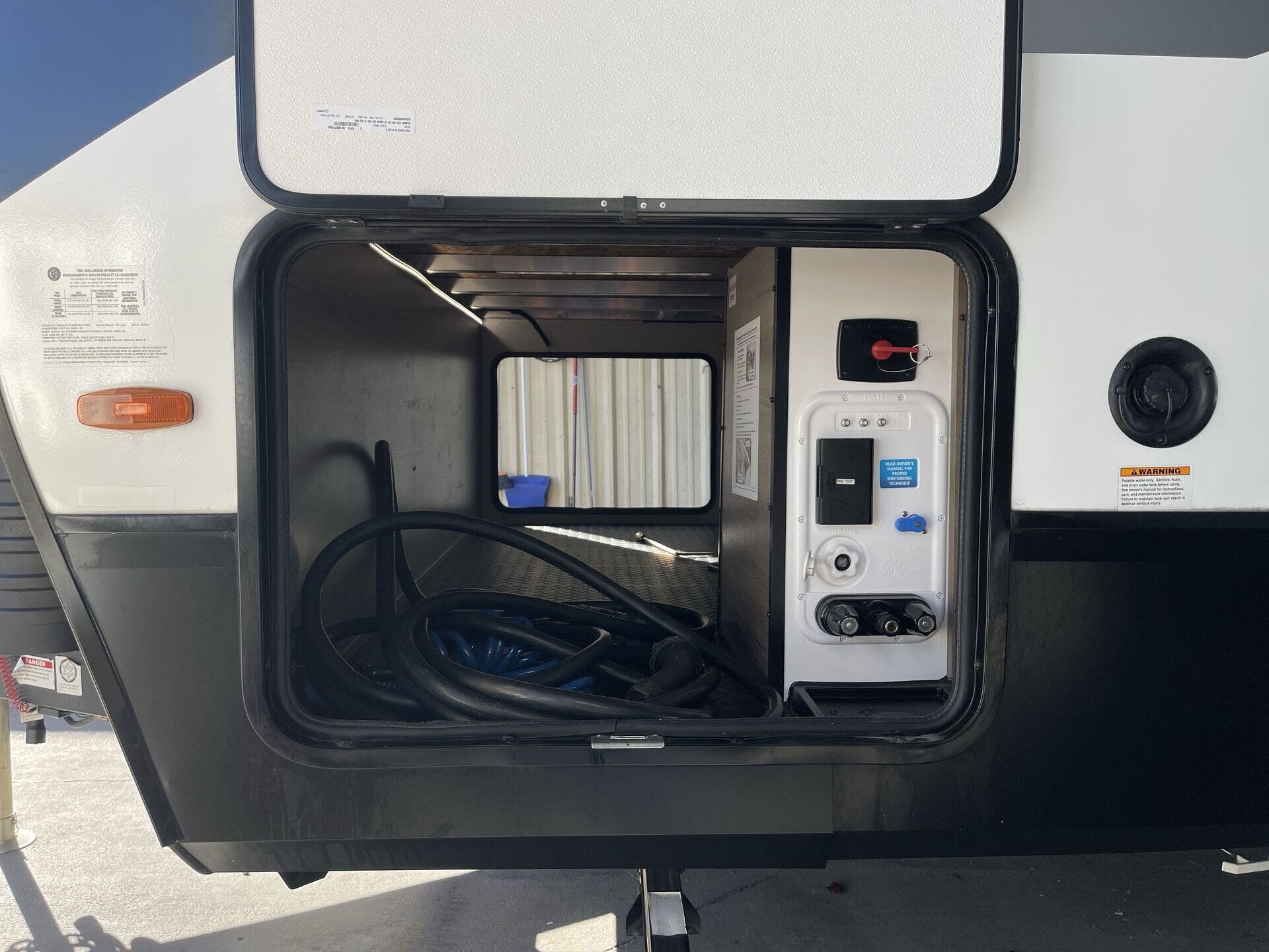Awning, Black Tank Flush, Detachable Power Cord, Enclosed Underbelly, Hitch, Leveling Jacks, Pass Thru Storage, Power Awning, Screen Door, Slideout, Spare Tire Kit -