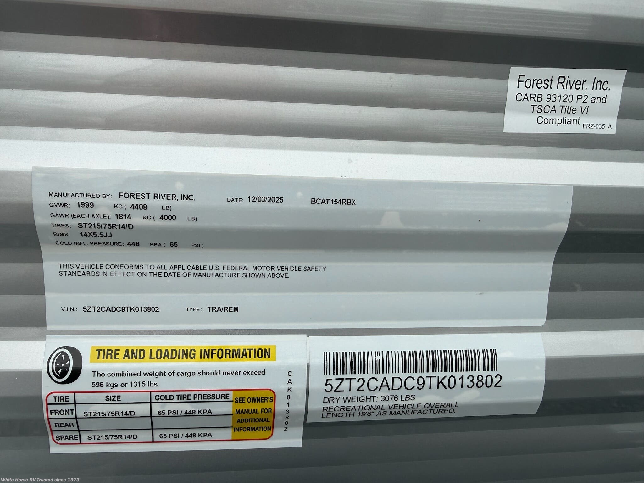Options and packages listed reflect manufacturer-installed equipment. Package contents and some specifications may vary by unit and should be confirmed with our team. Advertised pricing does not include our RV Essentials Package ($299), documentation fee, sales tax, title, or registration.
