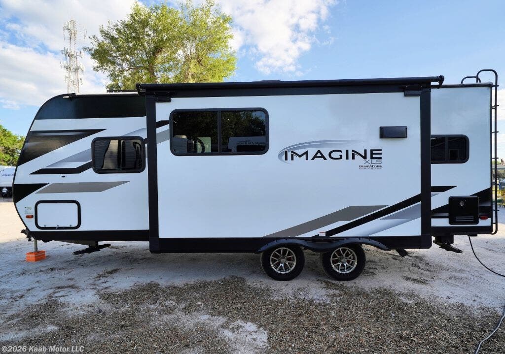 2024 Grand Design Imagine XLS 22MLE - $31,950 Discover adventure in this pre-owned 2024 Grand Design Imagine XLS 22MLE travel trailer. Finished in a sleek black exterior, this versatile trailer offers a comfortable and stylish way to explore. Its thoughtful design ensures you have everything you need for memorable road trips and weekend getaways. Inside, you'll find a well-appointed living space perfect for relaxing after a day of exploring. The Imagine XLS 22MLE is designed for ease of use and durability, making it an excellent choice for both seasoned RVers and those new to the travel trailer lifestyle. Come see this fantastic unit and start planning your next escape! Weights & Capacities: GVWR: 6,995 lbs Unloaded Vehicle Weight (UVW): 2425 lbs GAWR (each axel): 3500 Hitch Weight: 664 lbs Cargo Carrying Capacity: 1,819 lbs Fresh Water Capacity: 43 gal Grey Capacity: 45 gal Black Capacity: 37 gal Dimensions & Features: Length: 26' 1Exterior Height: 10' 10 Interior Height: 6' 6 (78) Awning: 18' Slides: 1 (Large main slide) Sleeps: 4 Axles: Dual 3500 lb axles Refrigerator: 12V 10 cu. ft. refrigerator. Construction: Heated and enclosed underbelly, fully walkable roof. Comfort: 15k BTU Ducted A/C, 25k BTU Furnace. Interior: Theater seating and a telescoping dinette. Exterior: Power tongue jack, electric awning with LEDs, backup camera prep, and a standard receiver hitch. Video: Location: 11528 S US Highway 41 Gibsonton, FL 33534 Contact us at: Main: 813-252-5510 Cell: 813-557-0263 Email: Website: