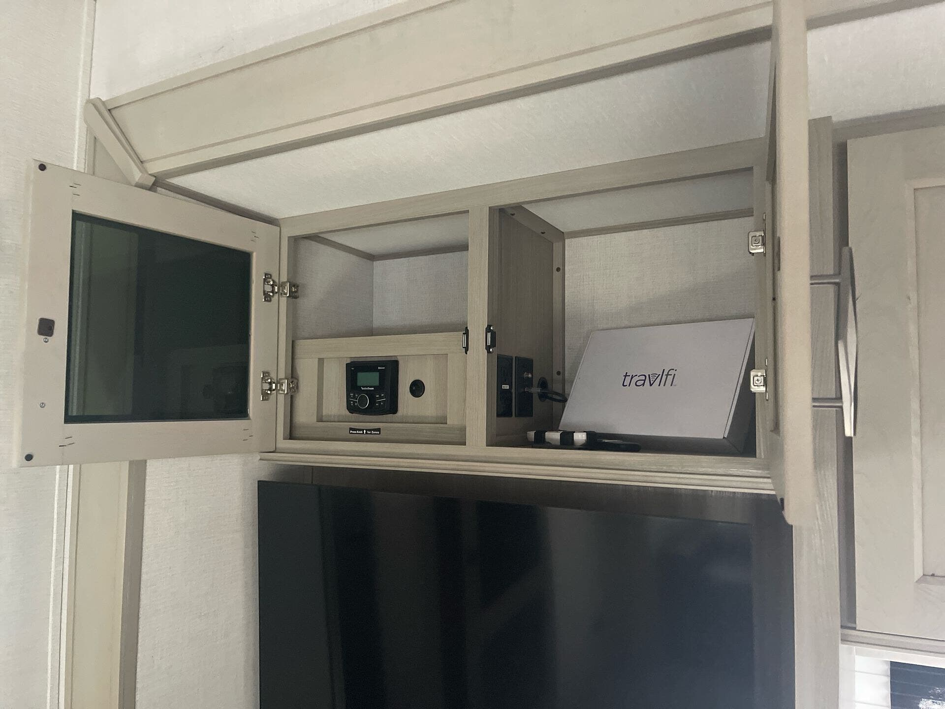 - Smart TV, exterior speakers, and ample storage for gear and supplies
