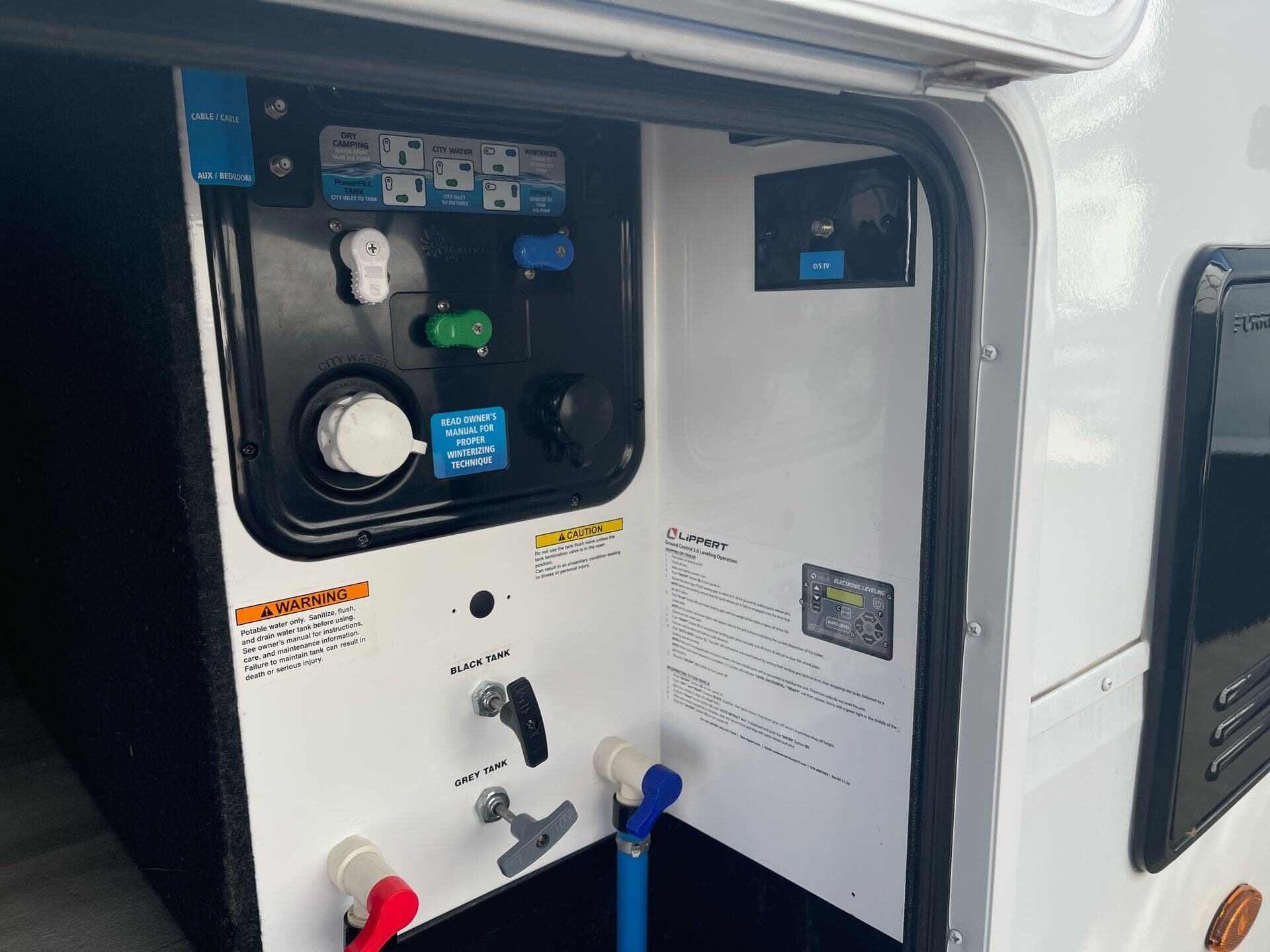 - Fresh Water: 81 gallons • Grey Water: 106 gallons • Black Water: 106 gallons
