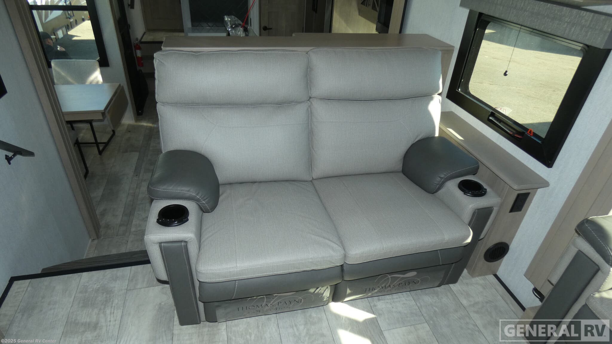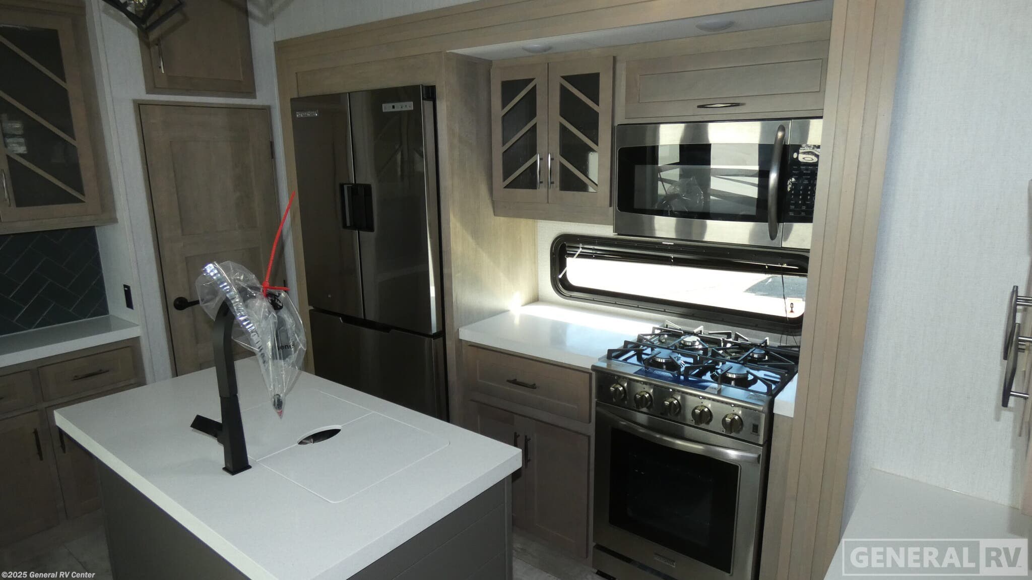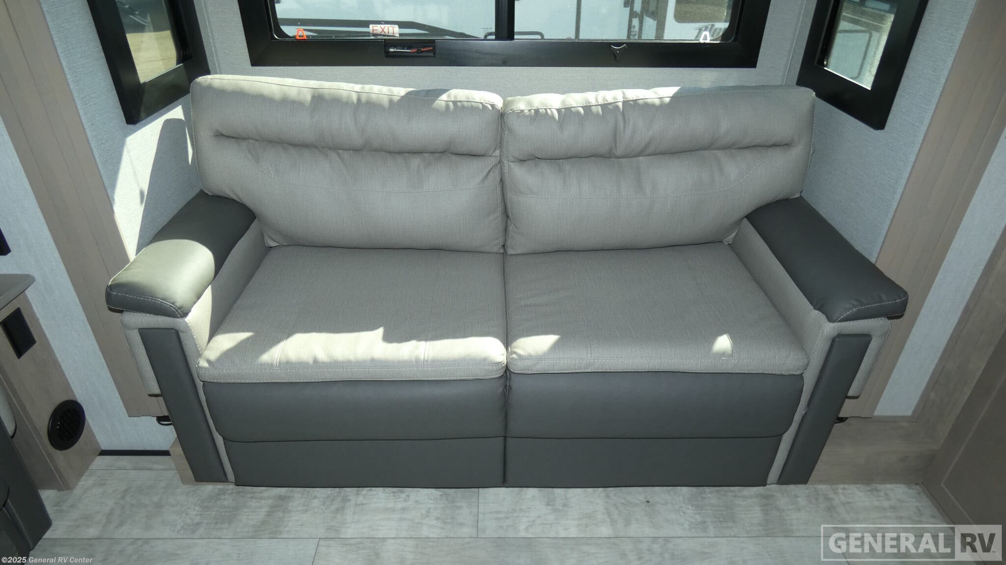 Step into the world of luxury and adventure with the 2024 Grand Design Momentum 376THS. This stunning fifth wheel is designed for those who crave both comfort and excitement on the road. With a spacious length of 42.75 feet and a height of 13.5 feet, this RV offers an expansive living space that feels just like home. The front living area is perfect for relaxation, featuring two tri-fold sofas and a telescoping TV for entertainment. The center kitchen is a culinary enthusiast's dream, equipped with a full-size refrigerator, four-burner cooktop, and convection cooking to make meal preparation a breeze. The Momentum 376THS also features a unique below-floor garage, providing ample storage for your gear and toys. Sleep soundly in the rear bedroom, which boasts a king bed option, or accommodate guests comfortably with convertible sleeping spaces. This model is packed with practical amenities, including a washer and dryer, a 12-gallon water heater, and a 75-amp electrical service. With an impressive cargo capacity of 4,100 pounds and three axles for stability, this RV is ready to take on any adventure you can dream up. Visit your nearest General RV dealership to explore this exceptional RV and start your journey today!