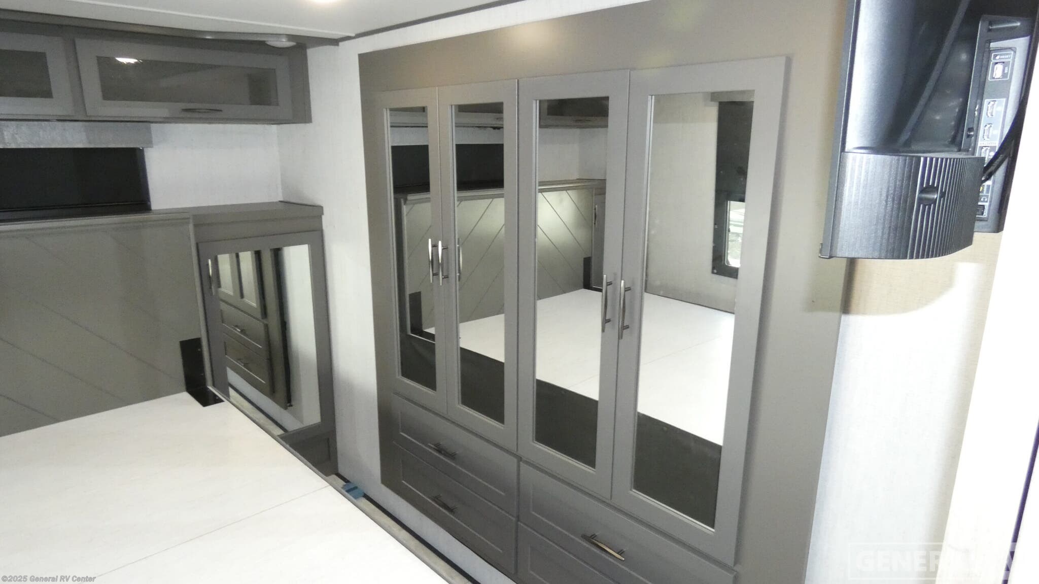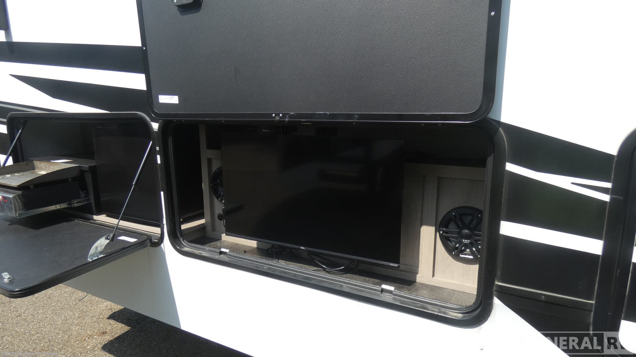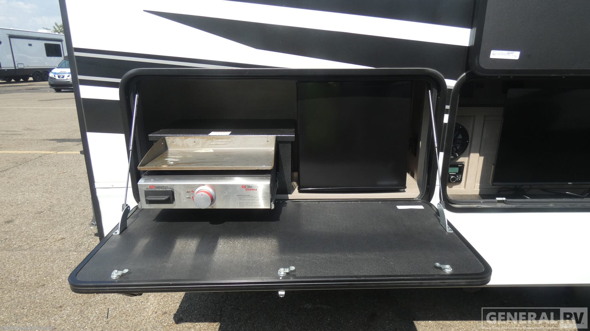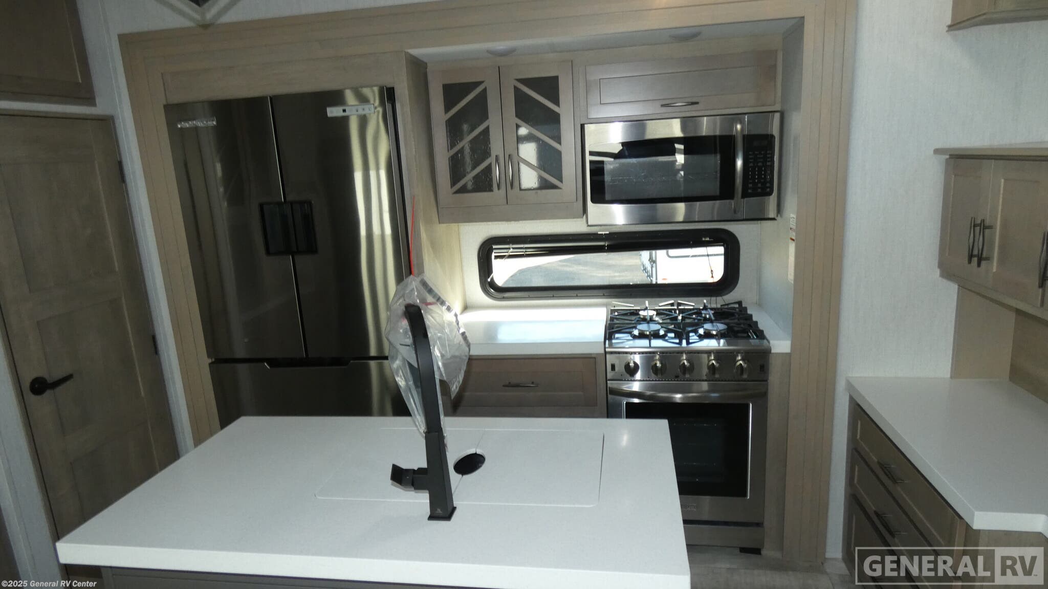 Step into the world of luxury and adventure with the 2024 Grand Design Momentum 376THS. This stunning fifth wheel is designed for those who crave both comfort and excitement on the road. With a spacious length of 42.75 feet and a height of 13.5 feet, this RV offers an expansive living space that feels just like home. The front living area is perfect for relaxation, featuring two tri-fold sofas and a telescoping TV for entertainment. The center kitchen is a culinary enthusiast's dream, equipped with a full-size refrigerator, four-burner cooktop, and convection cooking to make meal preparation a breeze. The Momentum 376THS also features a unique below-floor garage, providing ample storage for your gear and toys. Sleep soundly in the rear bedroom, which boasts a king bed option, or accommodate guests comfortably with convertible sleeping spaces. This model is packed with practical amenities, including a washer and dryer, a 12-gallon water heater, and a 75-amp electrical service. With an impressive cargo capacity of 4,100 pounds and three axles for stability, this RV is ready to take on any adventure you can dream up. Visit your nearest General RV dealership to explore this exceptional RV and start your journey today!