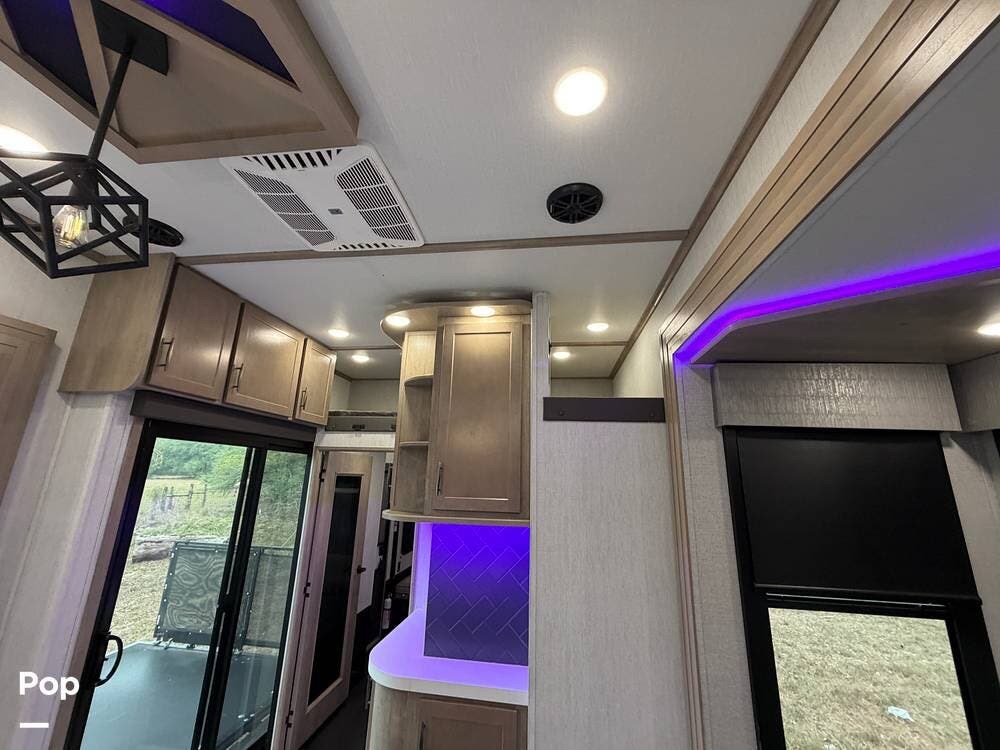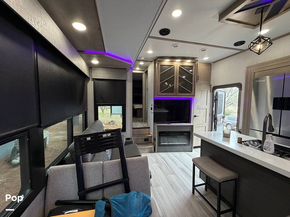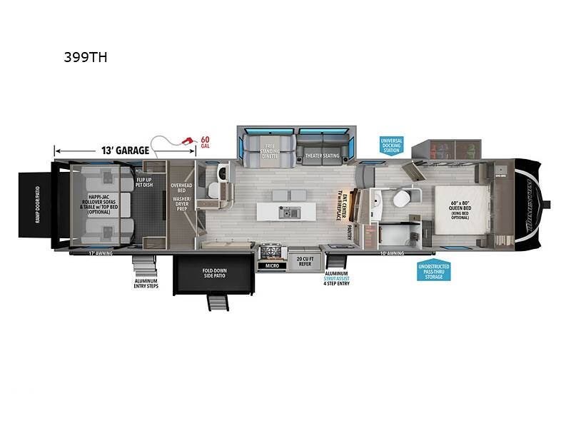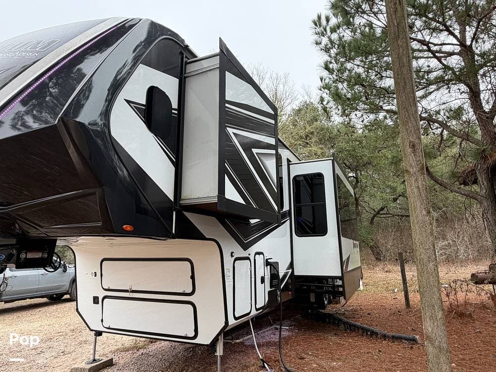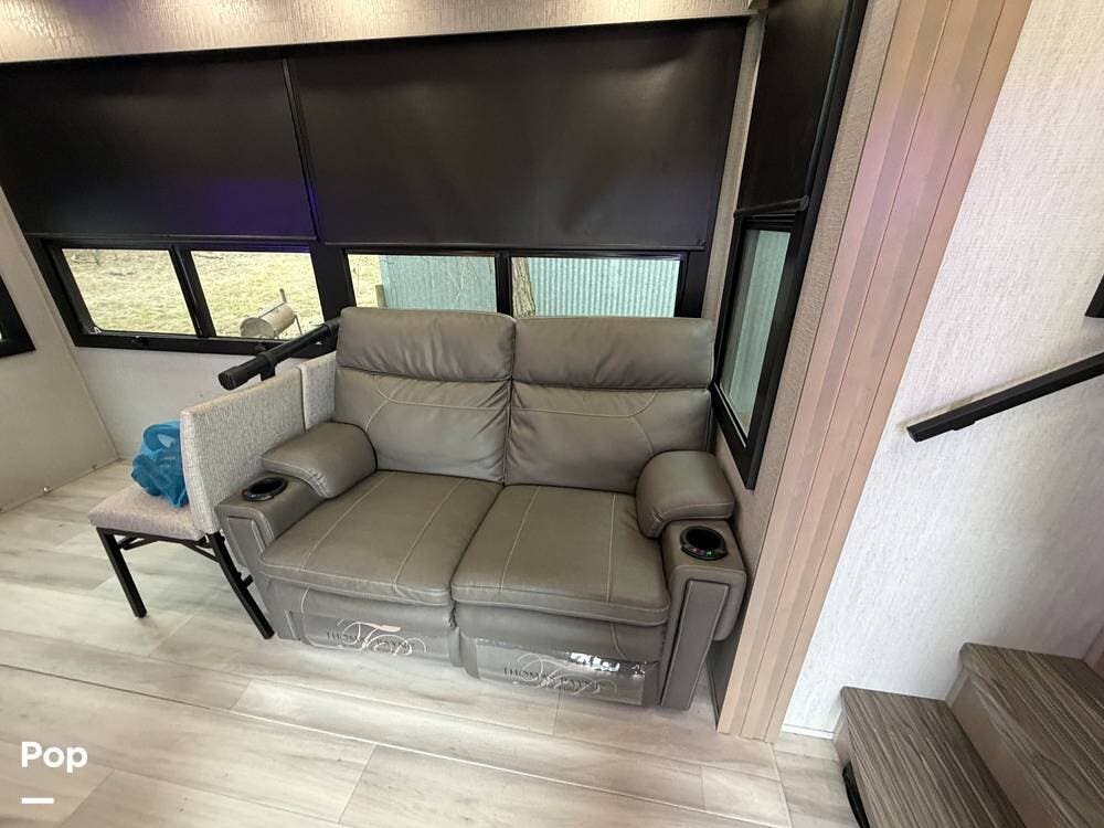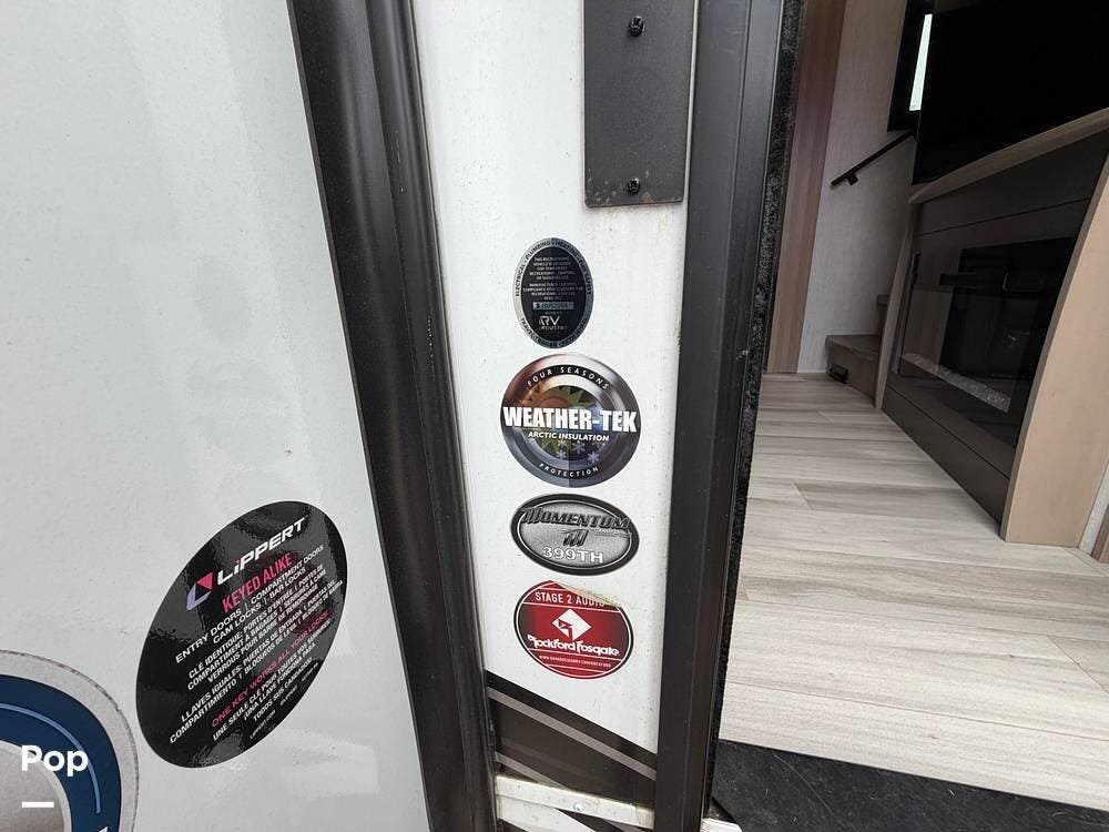 This 2024 Momentum 399TH is built with quality construction and four-season capability. The Momentum 399TH includes multiple power awnings, additional patio space, and a durable exterior designed for year-round travel and outdoor living.