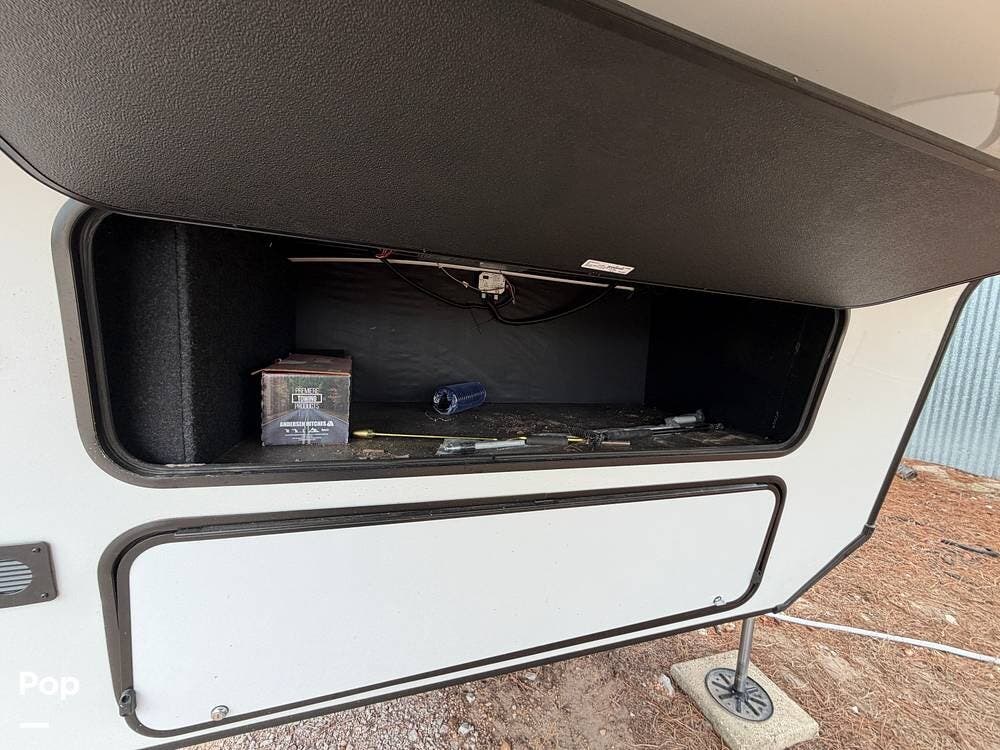 The rear garage is designed for versatility, featuring heavy-duty tie-downs and the ability to convert into additional living or sleeping space. A major highlight is the side patio, which expands your living area outdoors and provides a perfect spot to relax, entertain, or enjoy the view at camp.