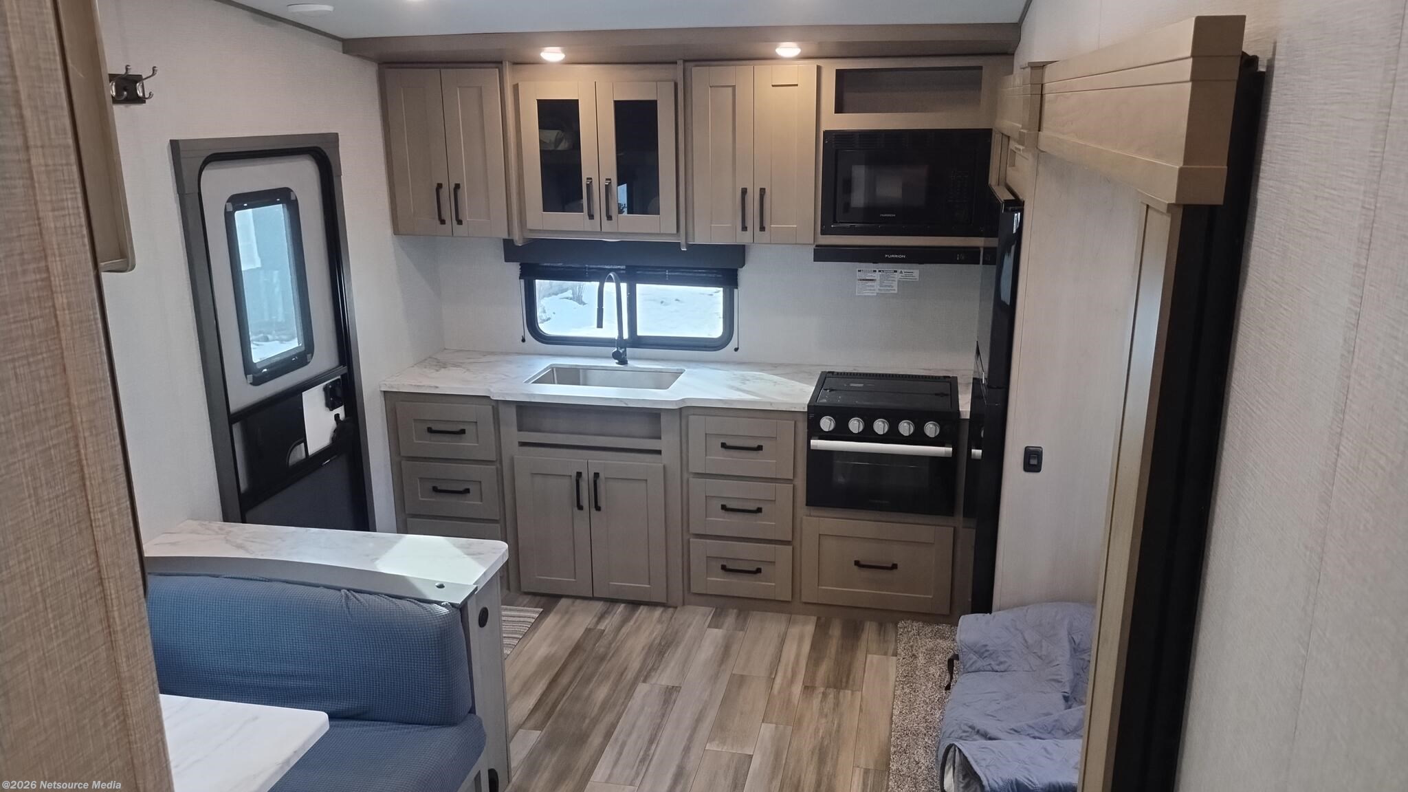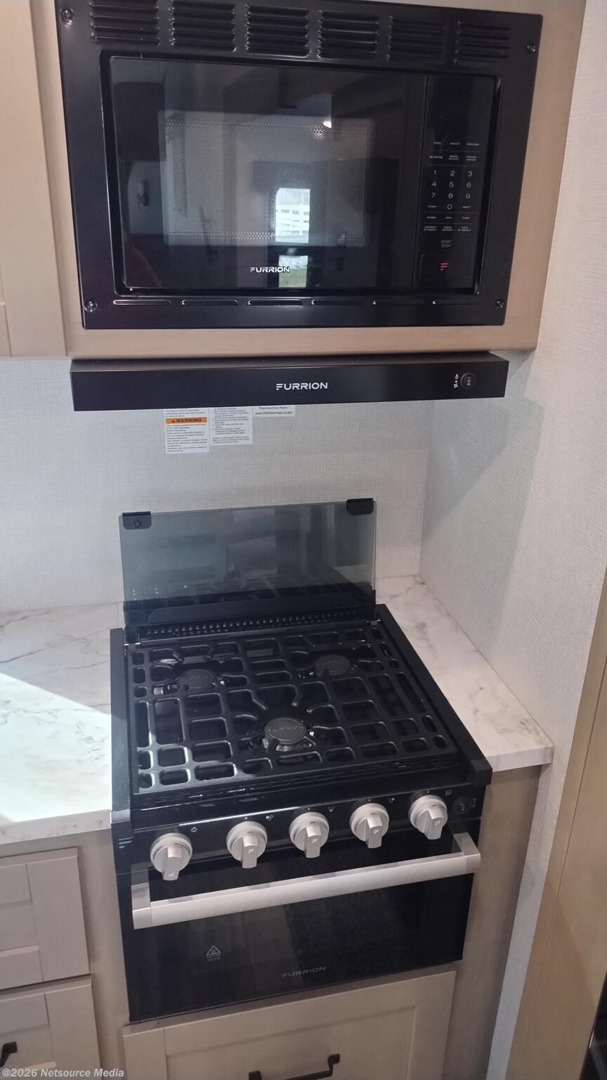 Enclosed Water Tank, Furnace, Microwave, Refrigerator (12V), Stove, Stove Cover, Stove Top Burner, Tankless Demand Gas Water Heater -