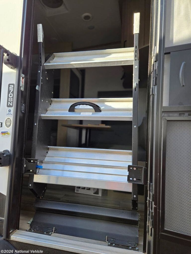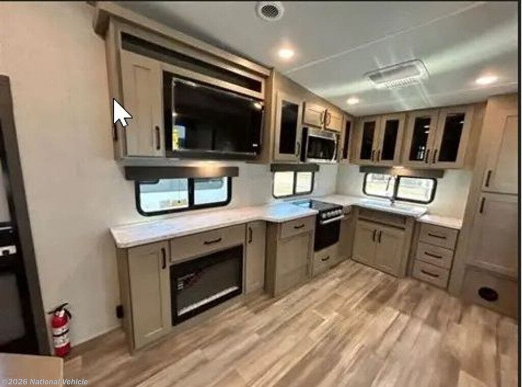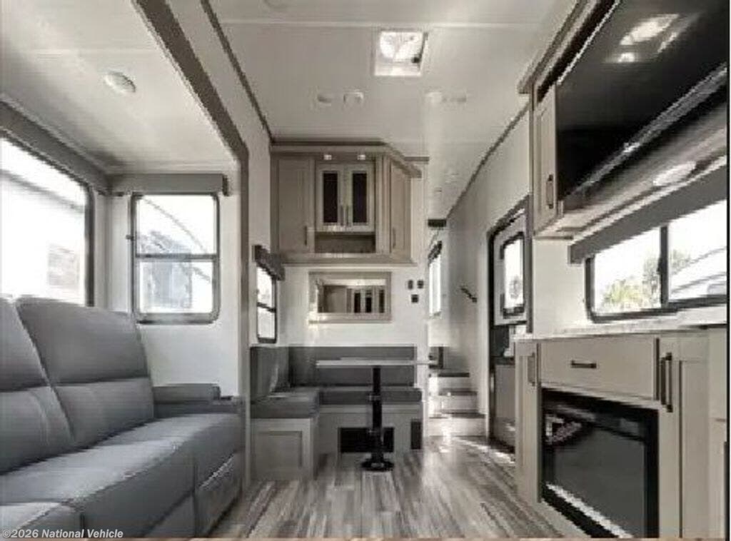 Perfect for couples or small families, the 270BN offers a bright, open-concept living space enhanced by large panoramic windows, modern d?cor, and high-quality residential finishes. The rear kitchen layout provides exceptional countertop space, abundant cabinetry, stainless-steel appliances, and a deep farmhouse sink ? making it as functional as it is stylish. The adjacent living area features theater seating, a dinette, and an entertainment center with a fireplace for cozy evenings indoors.