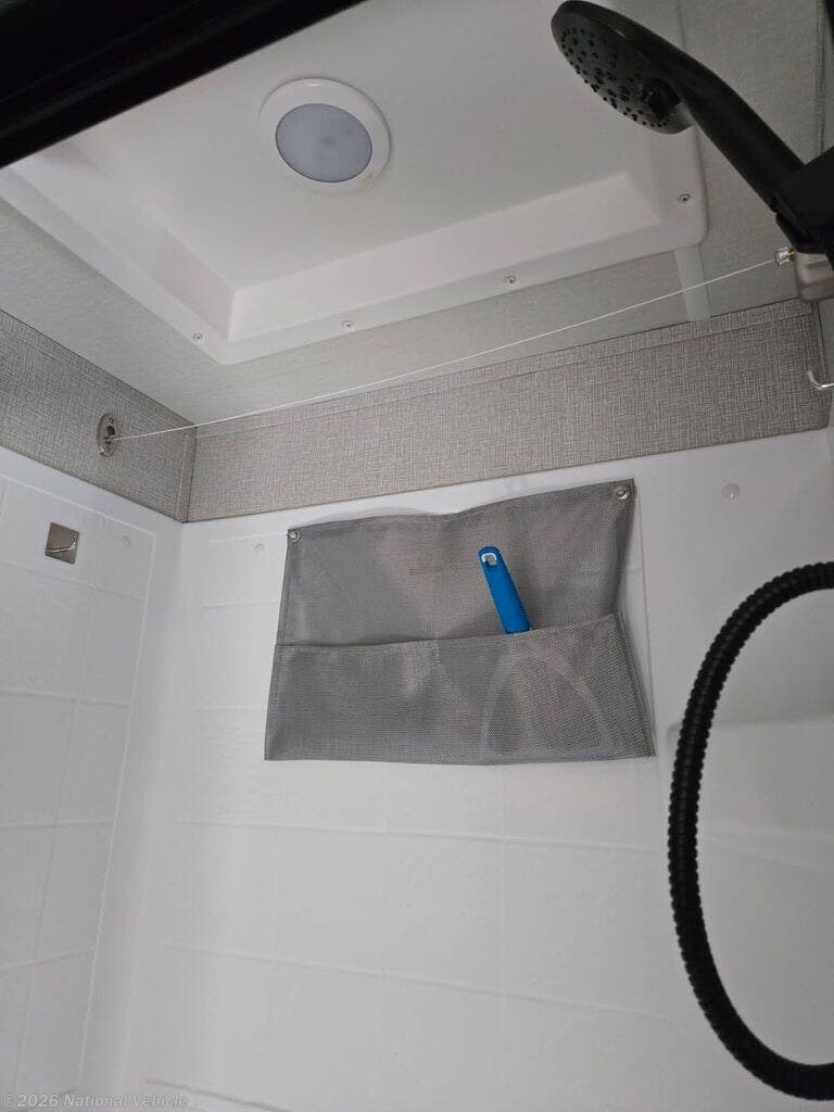 Up front, the private master suite offers a restful retreat with a full-size wardrobe, overhead storage, and a walk-around queen bed. The spacious bathroom includes a large shower with skylight, plenty of linen storage, and premium fixtures, ensuring comfort and convenience on every trip.