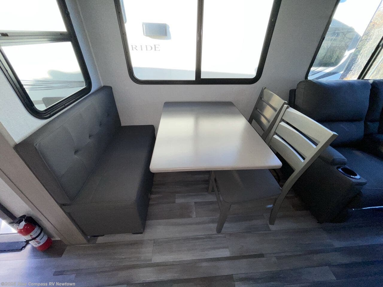 With any Reflection 150 Series fifth wheel by Grand Design, there is more available payload capacity and a broader range of half-ton trucks capable of towing this fifth wheel, and no slider hitch is needed thanks to the 90-degree turning radius which makes them short bed friendly and easier to tow. The mandatory Ultimate Power package provides a "One-Touch" automatic leveling system and a detachable power cord with LED light for easy setup, plus motion sensor pass-through lighting and entry lighting, and the Tire Linc TPMS will help you stay safe on the road. The interior offers residential luxury from the cabinetry and premium congoleum flooring, plus the booth dinette to the residential-style window treatment. Make your refined decision today!