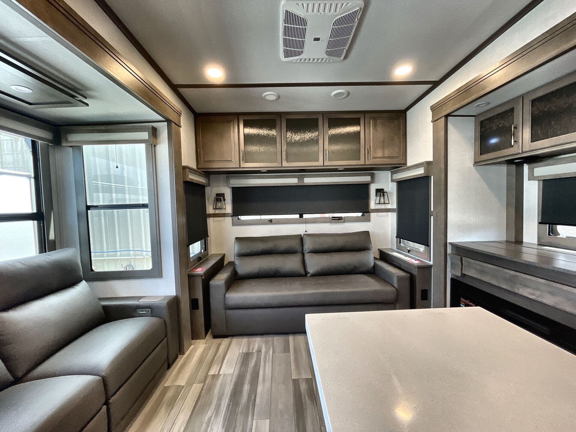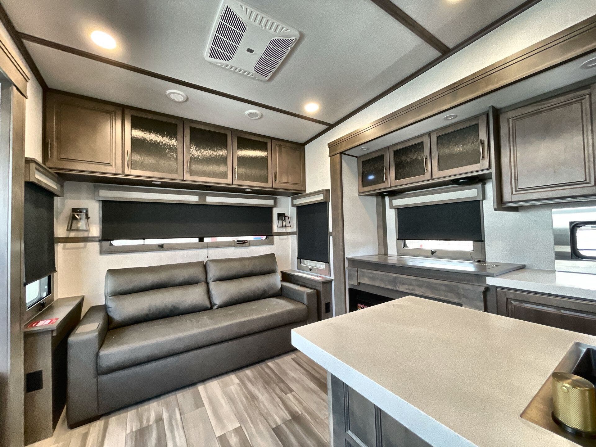 Dinette, Hide-A-Bed, Pantry, Pet Friendly, Queen Bed, Shower, Solid Surface Countertops, Theater Seating, Toilet, Washer/Dryer Prep