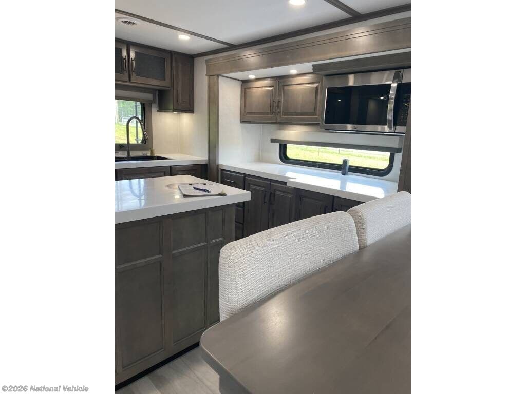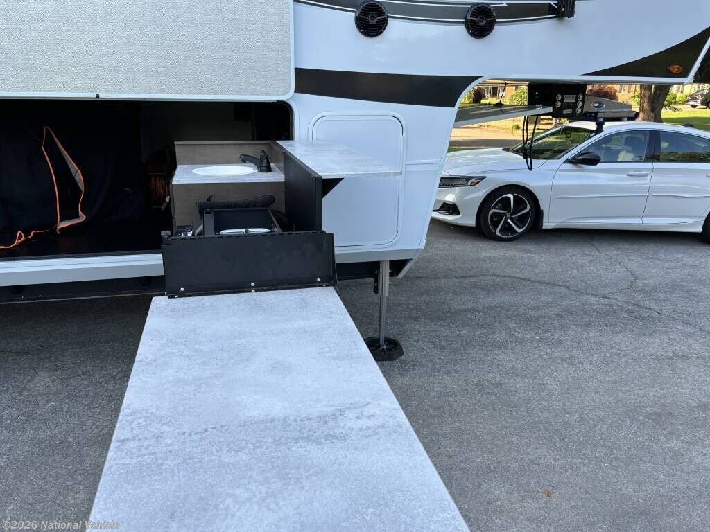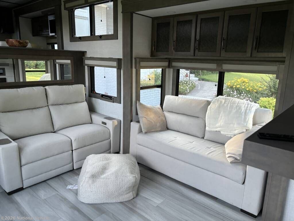If you?re searching for a fifth wheel that delivers true residential comfort on the road, the 2024 Grand Design Solitude 390RK is the perfect choice. Known for its superior craftsmanship and elegant design, this gently used luxury RV (only 13,000 miles) has been meticulously maintained with no issues during its approximate year of usage. With a transferable warranty and numerous upgrades, this Solitude is move-in ready for your next adventure.