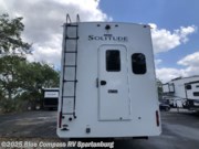 For an affordable luxury extended stay for your family, this Solitude is it! Two private bedrooms plus an overhead Sky Suite loft above the rear bedroom which also has it's own private rear entry/exit door is just the beginning of what is in store for your camping convenience. You will love the spacious feel that the Solitude provides with taller ceilings, larger scenic windows, and an interior width of 8' 5", not to mention FIVE slides in this unit alone. You may not even want to go home once you get a look inside. The upscale kitchen features an island with dishwasher prep, a large single bowl sink, a 12V 20 cu. ft. refrigerator for your perishables, and a 24" residential oven, not to mention you will also enjoy a microwave, pantry, and hutch for your dishes, plus a free standing dinette! You can easily take along extra family and friends with the second private bedroom featuring it's own private bath and entry which is great for another couple, and there is even loft space above this rear private bedroom for added storage or sleeping for children. Both bathrooms feature a shower with a skylight, vanity and sink, plus a toilet. And, you will find ample storage for clothing and belongings throughout with nice size closets, overhead cabinets, plus loads of outside storage. Speaking of outside, this unit features a spray port for rinsing off before heading inside, two awnings, a USB charging outlet, and four step aluminum shock assist entry steps at both entrances.