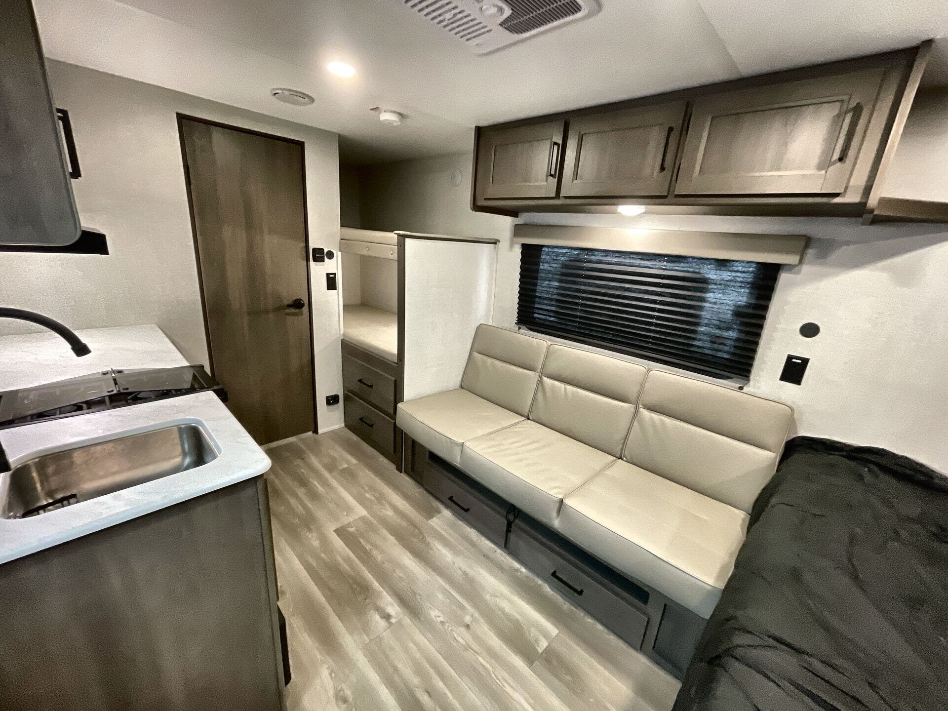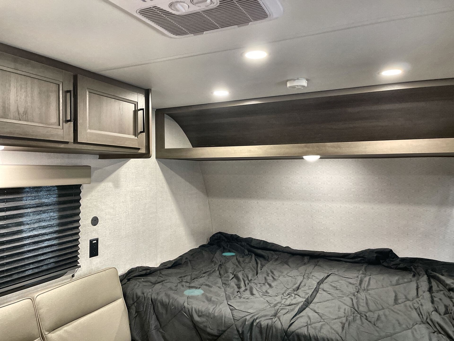 - Beds: Front Queen Bed, Queen Mattress, Bunk Beds