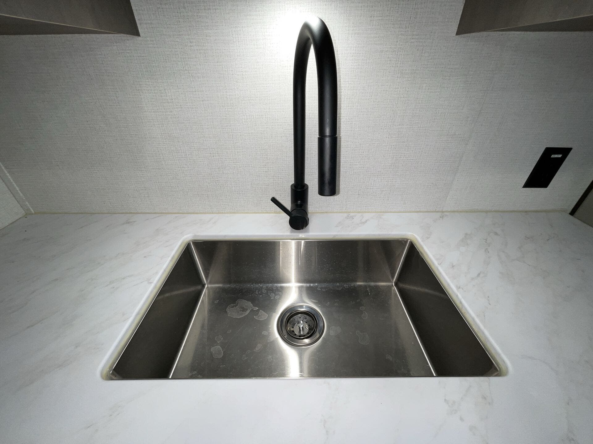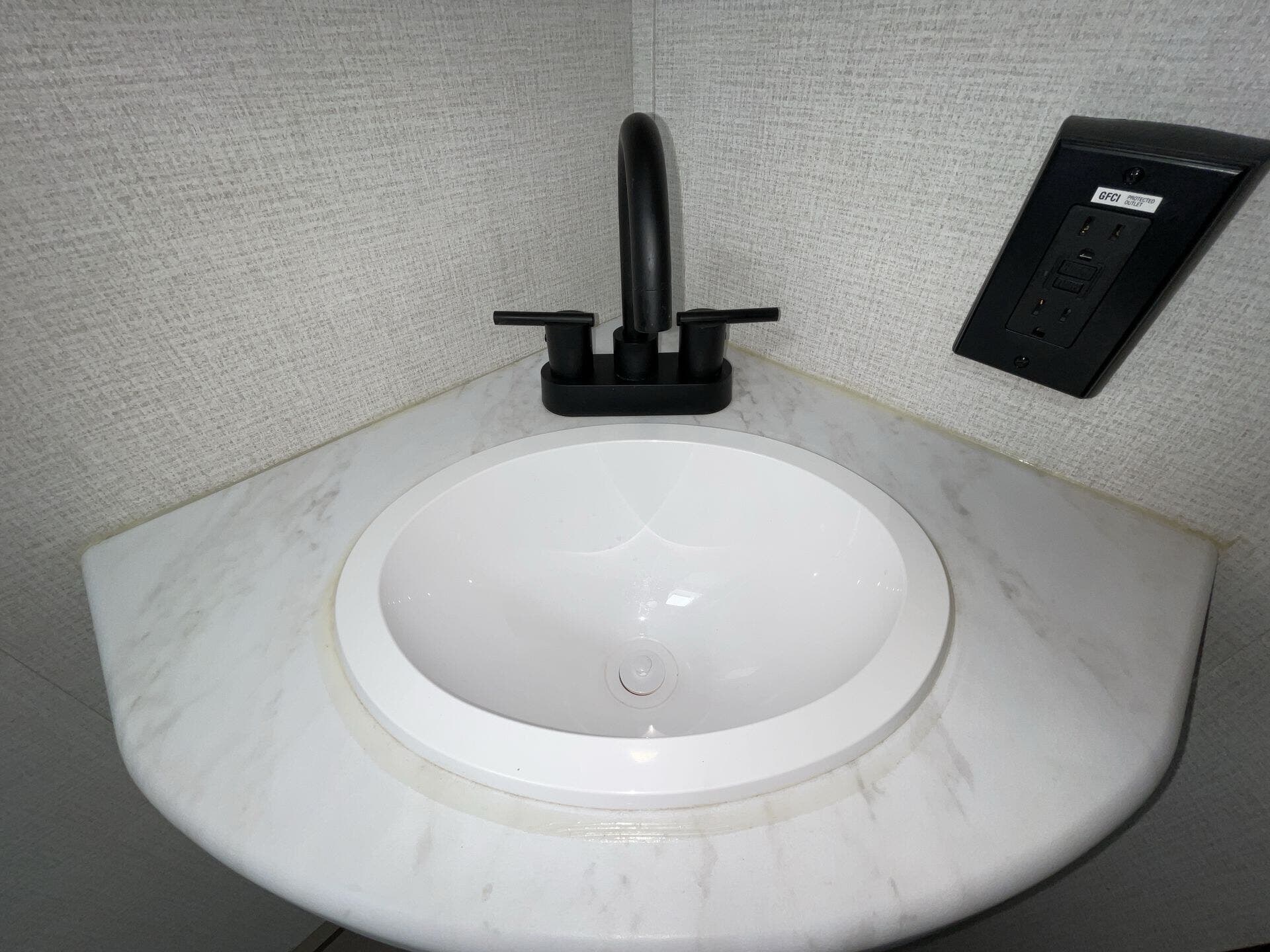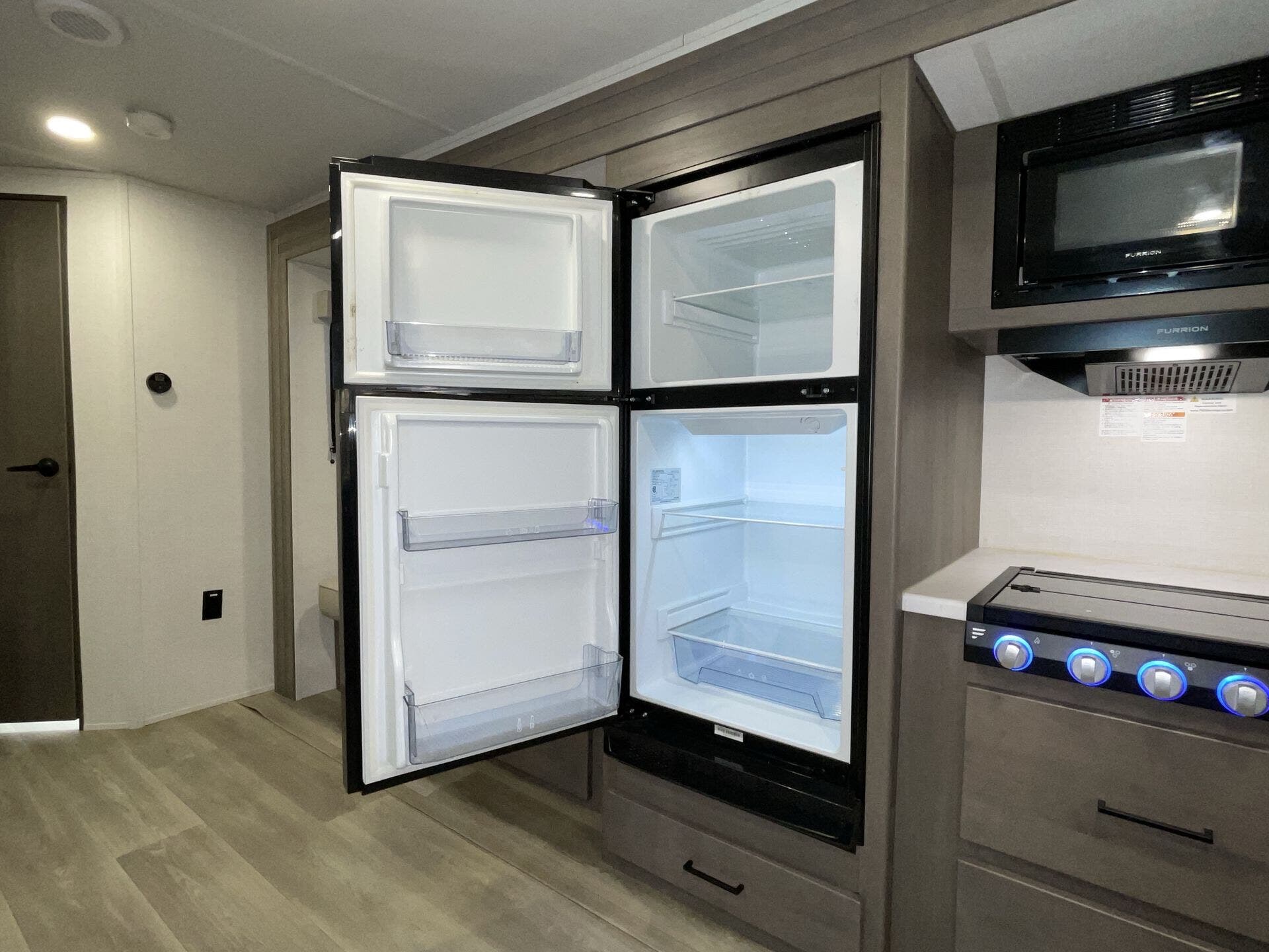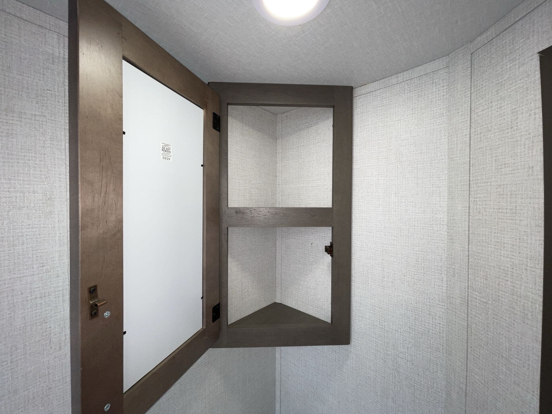 The kitchen is fully equipped for life on the road, while the addition of an outdoor kitchen makes it even easier to cook and enjoy meals outside. The full bathroom with walk-in shower adds convenience and eliminates the need for campground facilities.