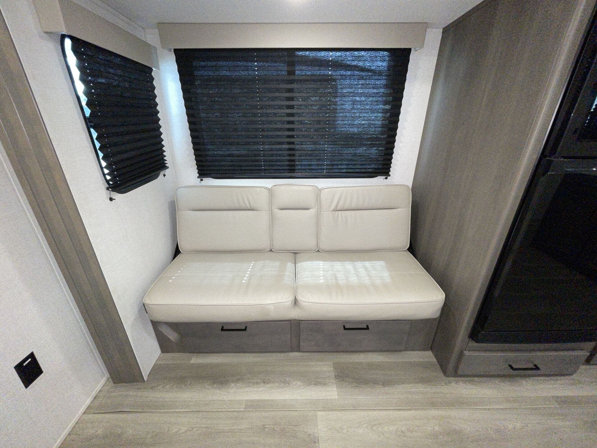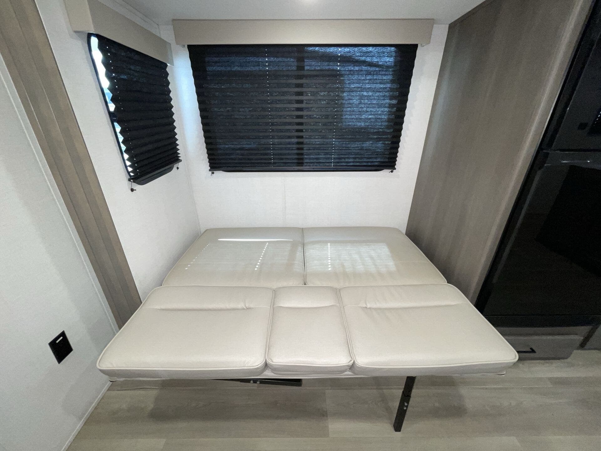 - Booth dinette + rollover sofa for dining and extra sleeping