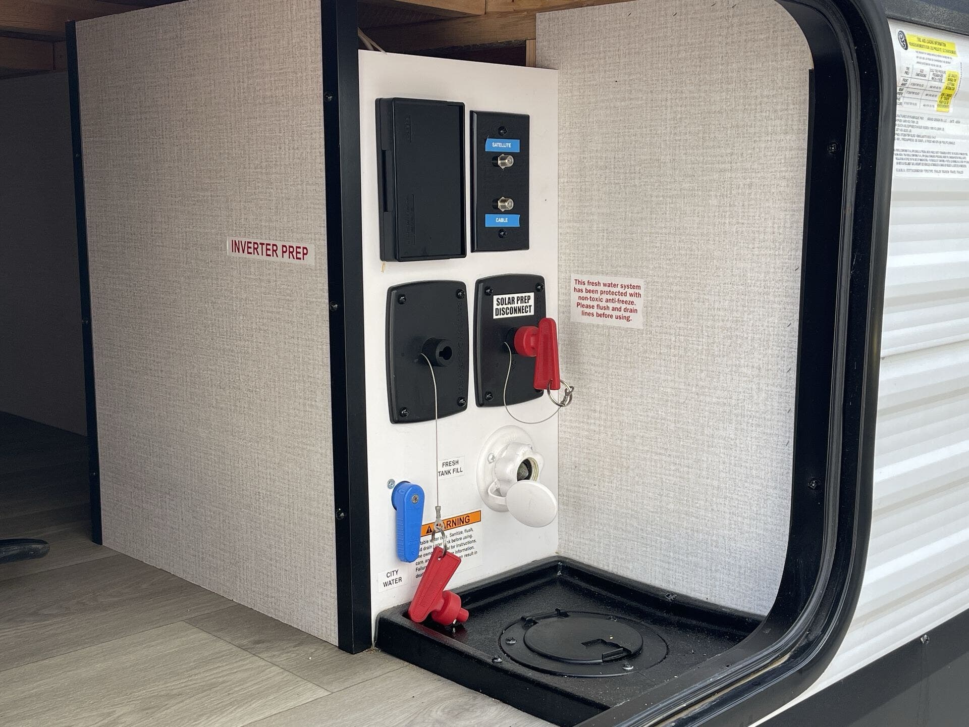 Black Tank Flush, Detachable Power Cord, Enclosed Underbelly, Exterior Speakers, Outside Kitchen, Pass Thru Storage, Power Awning, Roof Vent, Screen Door, Slideout, Spare Tire Kit, Stabilizer Jacks -