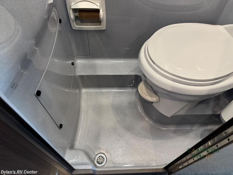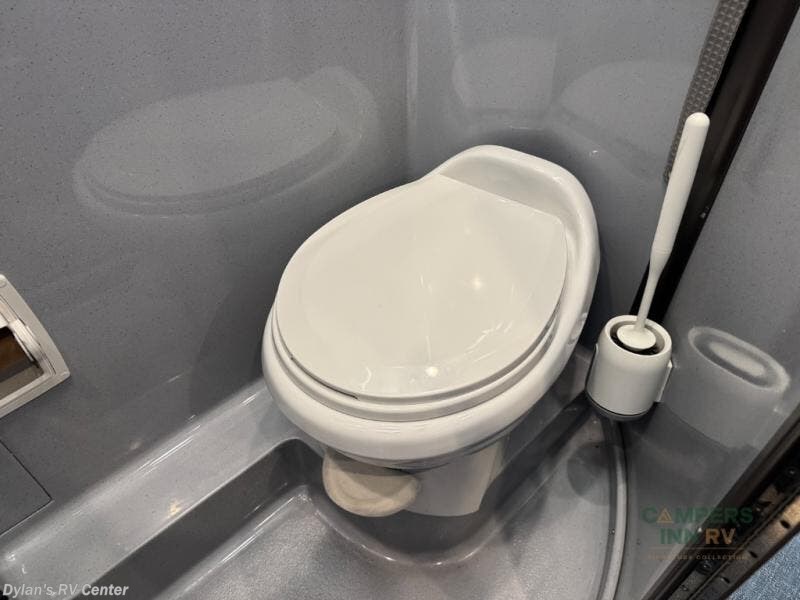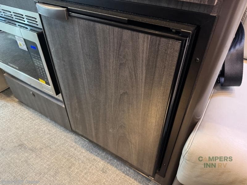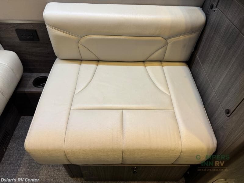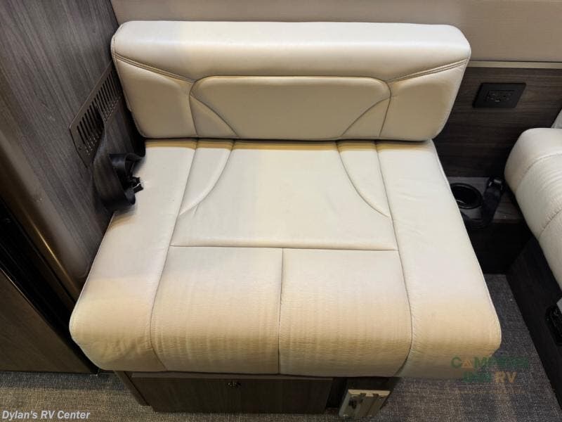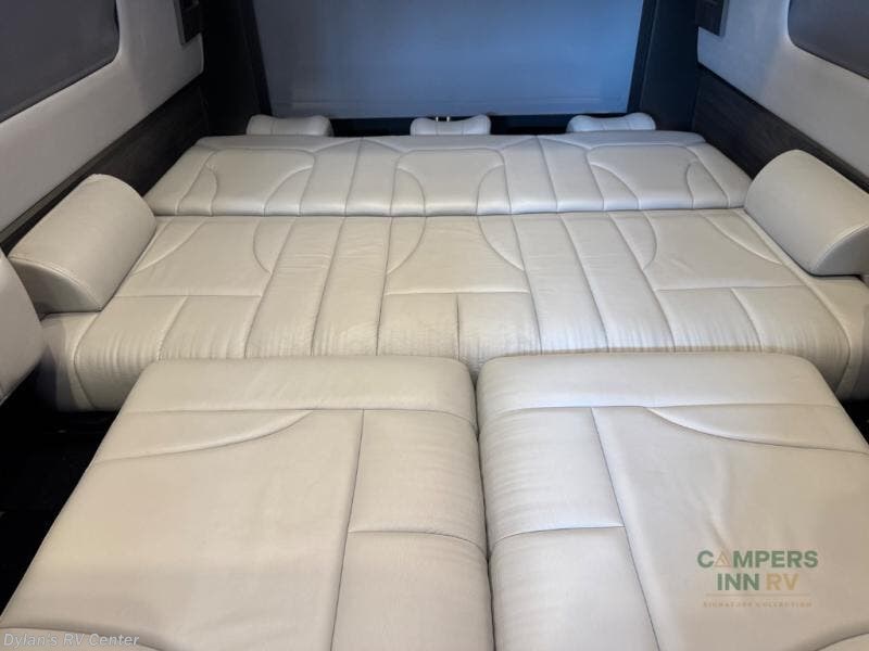 The lounge layout is designed to bring people together. Two front captain’s chairs, additional mid-coach seating, and rear lounge seating make this motorhome perfect for road trips, tailgating, festivals, or sporting events. When the day winds down, the power sofa bed provides a comfortable place to rest, while the private wet bath ensures convenience and privacy wherever you are parked.