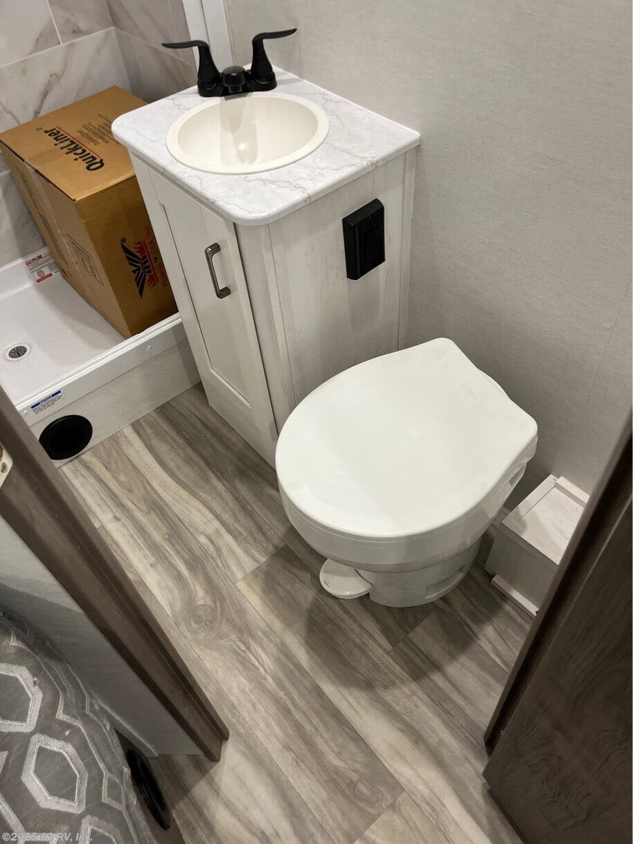 Stay comfortable in any weather with a robust air conditioning unit and a furnace for chilly nights. With safety essentials like a CO detector, smoke detector, and fire extinguisher, you can travel with peace of mind. The RV also includes a water heater and generous water capacity, boasting 44 gallons of fresh water, ensuring you have what you need on long trips.