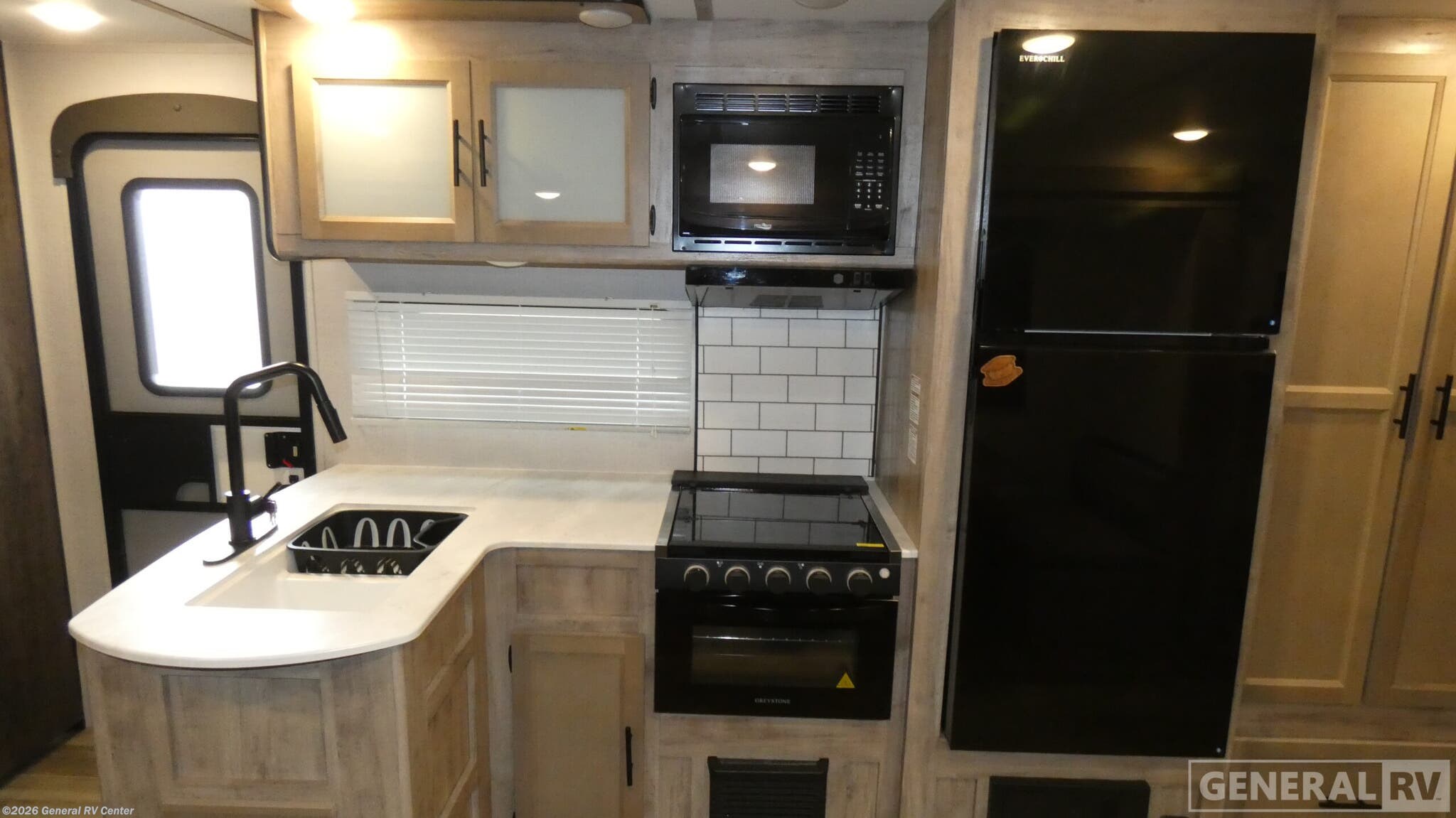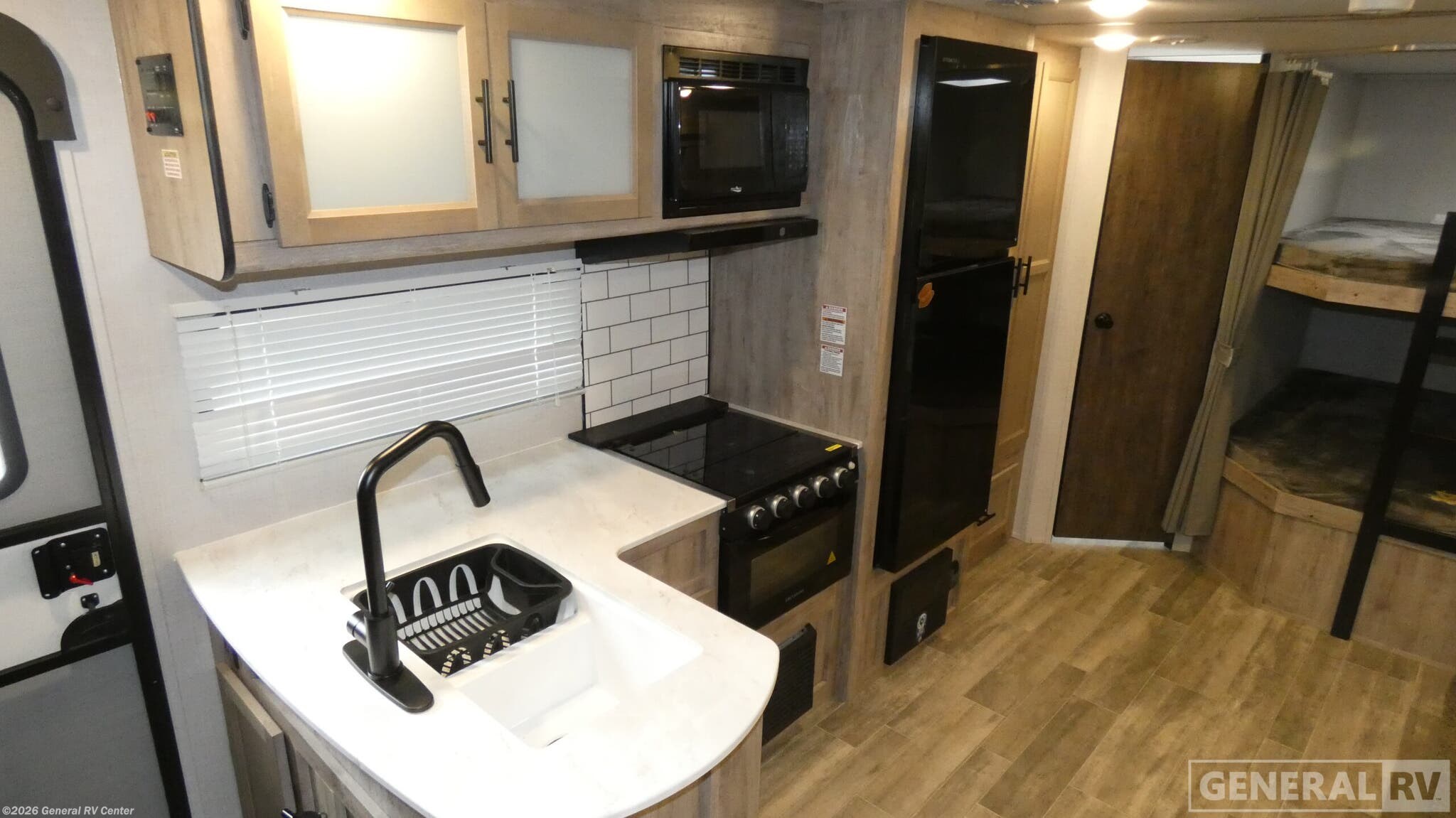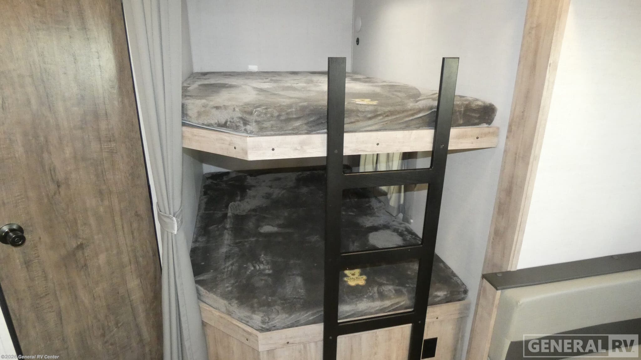 A trip to the lake or your favorite state park just got better in this comfortable travel trailer. Whether you're relaxing on the sofa or booth dinette, cooking in the spacious kitchen, or sitting outside under the electric awning with LED lights, you will enjoy every minute you camp. You and your spouse will have a private bedroom up front with a queen bed and dual wardrobes, and there are double-size bunks for the kids or your friends! The Ameri-Lite Ultra Lite travel trailers by Gulf Stream are the perfect RV for families wanting to start their camping lifestyle, but not break the bank. These lightweight units are built with a diamond plate lower front, a one-piece synthetic vinyl roof, and a uni-body construction with steel hurricane straps tying the walls to the floor for added durability. The front power hitch jack and four stabilizer jacks will make set-up hassle-free once you arrive at the campground, and you can put out the electric awning to rest in the shade when you're done. Each model includes convenient amenities, like the 13,500 BTU A/C, the tankless water heater, a central control panel, and multiple USB ports for your tablet, phone, and camera! The inside is designed to make you feel at home with radiant LED lighting, designer kitchen backsplash, pleated privacy shades, craft-made cabinetry, plus many more features. Start your RV lifestyle with an affordable, lightweight Ameri-Lite Ultra Lite travel trailer today!