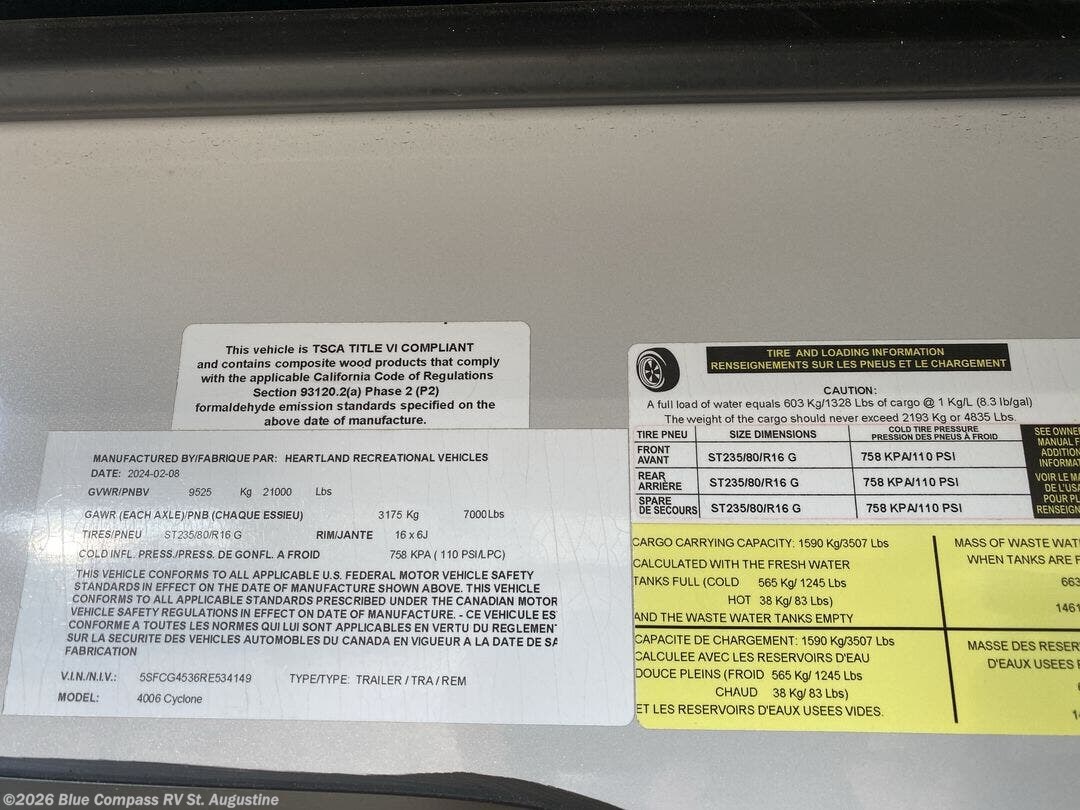 Request More Info on this 2024 Heartland Cyclone 4006 Offered for sale by Blue Compass RV St. Augustine