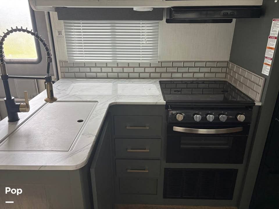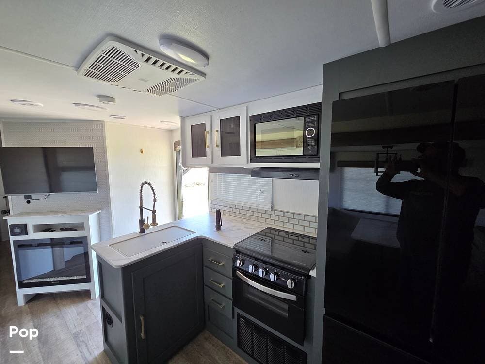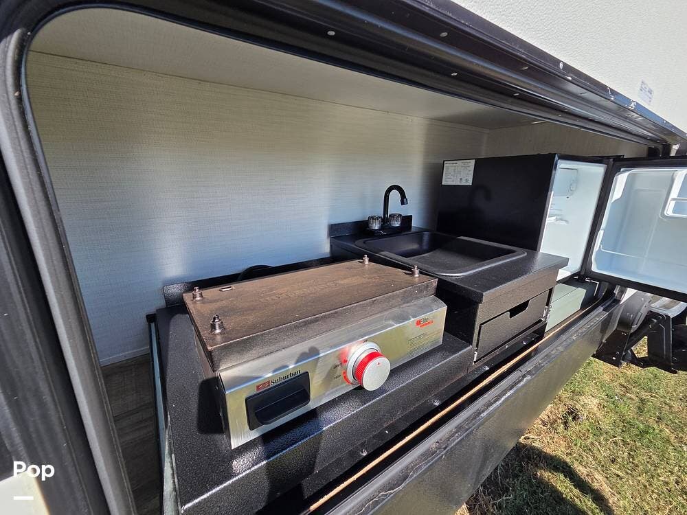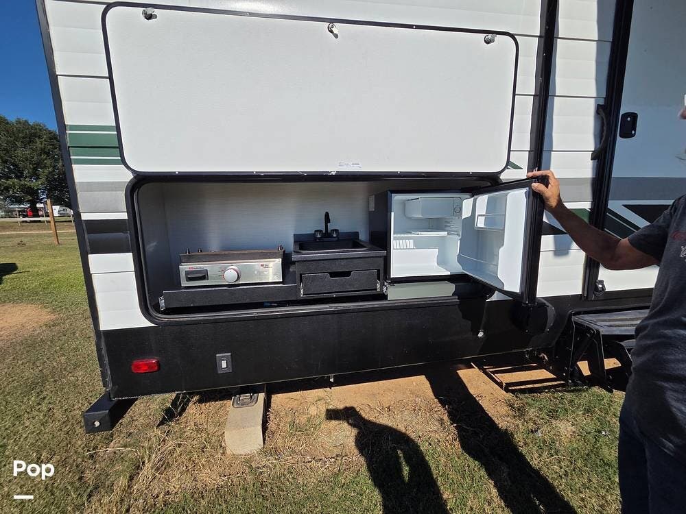 This Travel Trailer is easy to set up as your home away from home, ideal for camping with an outdoor kitchen or just as traveling accommodations.