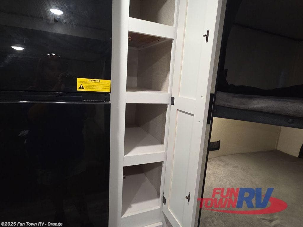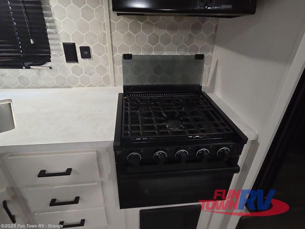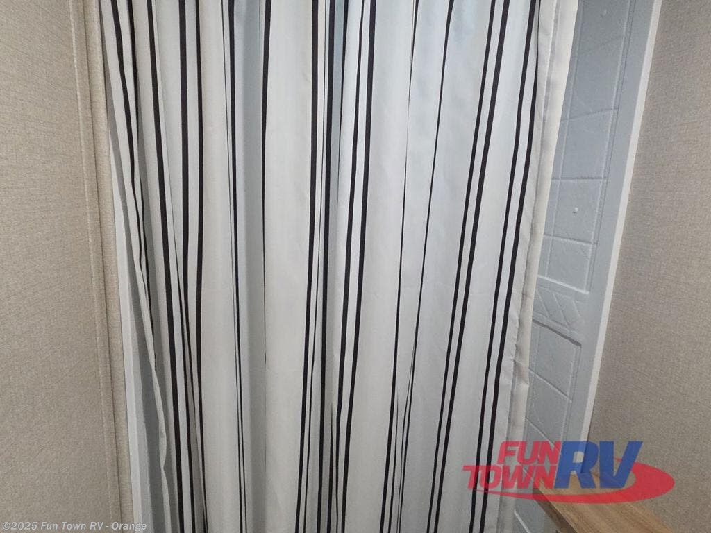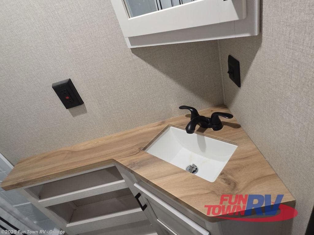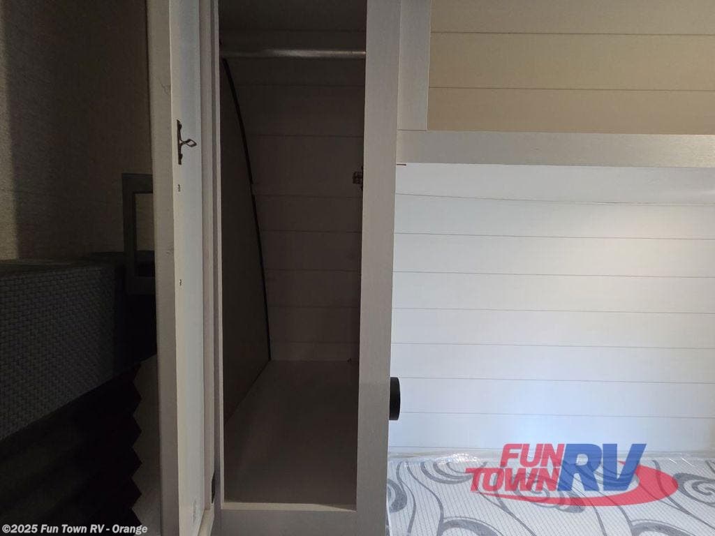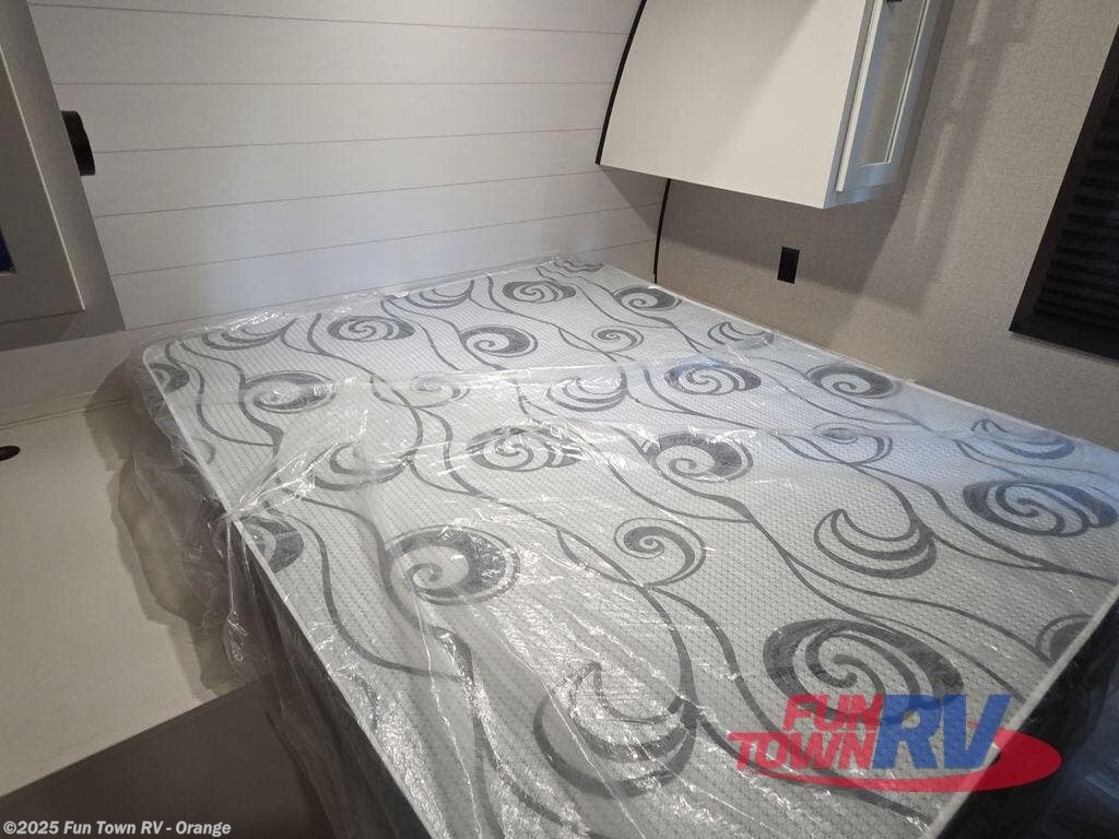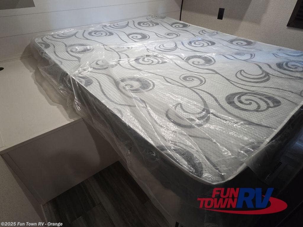 You're going to love every minute spent in this spacious travel trailer. The booth dinette and jack-knife sofa within the large slide out will be perfect for meal times, relaxing, and additional sleeping space. Add the optional Smart TV to the entertainment center and you're set up for movie night! This model includes an outside kitchen with a griddle and a refrigerator for cold drinks, plus indoor appliances if the rain has ruined your plans for the day. You will enjoy your own bedroom up front with space-saving sliding doors and two wardrobes for your clothes.