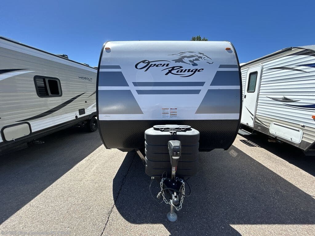 The affordable Open Range Conventional travel trailers by Highland Ridge are ready to meet your camping needs! You will appreciate the durable Magnum Roof system, plus each model is constructed with black front diamond plate protection, 5/8" main floor decking, and self-adjusting electric brakes with E-Z Lube axles for smooth towing. The 81" interior height means you won't feel cramped when relaxing with friends and family, and the residential vinyl flooring throughout is easy to clean, which will be perfect if you're camping with little ones or pets. These models also include an AM/FM/Bluetooth radio with indoor/outdoor speakers, a digital TV antenna that will go perfectly with the optional Smart TV, plus a 13,500 BTU roof mounted A/C to keep you cool on those hot summer months.