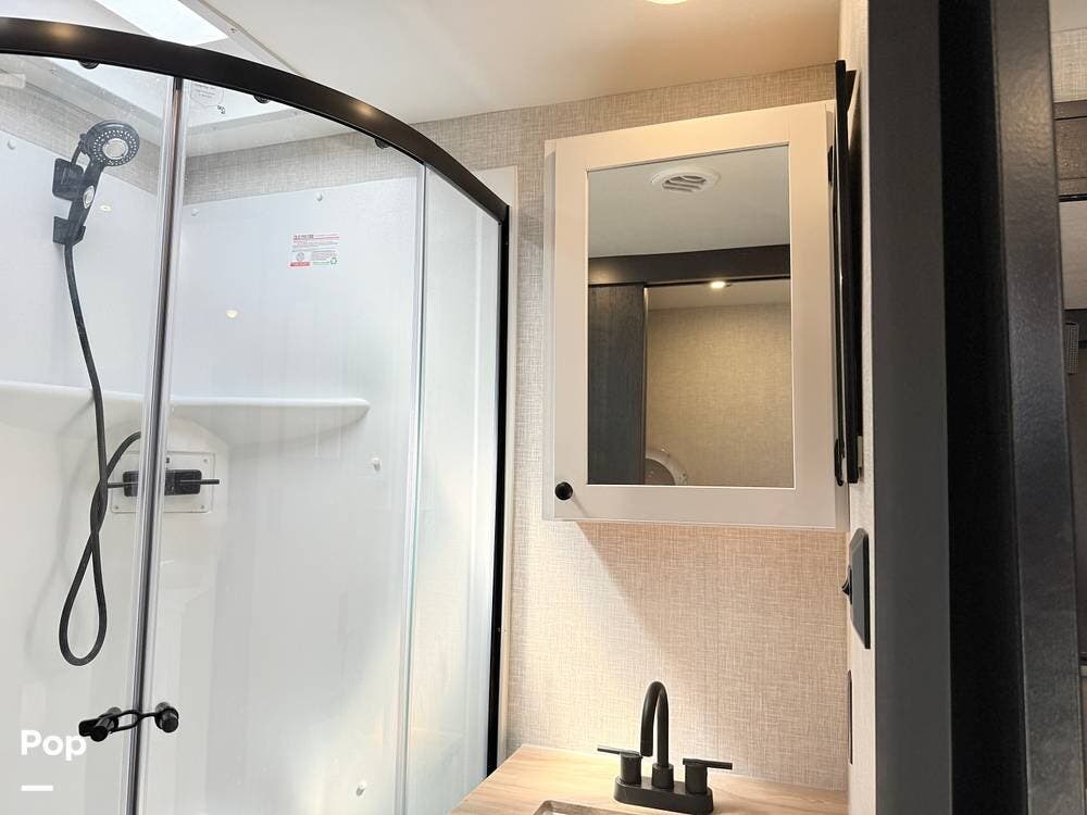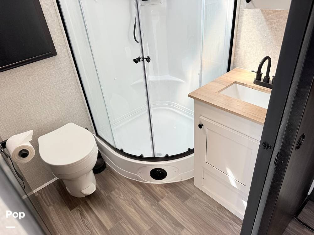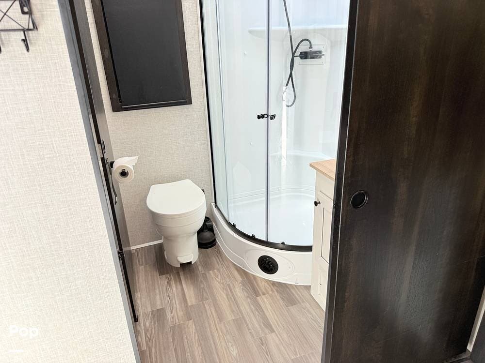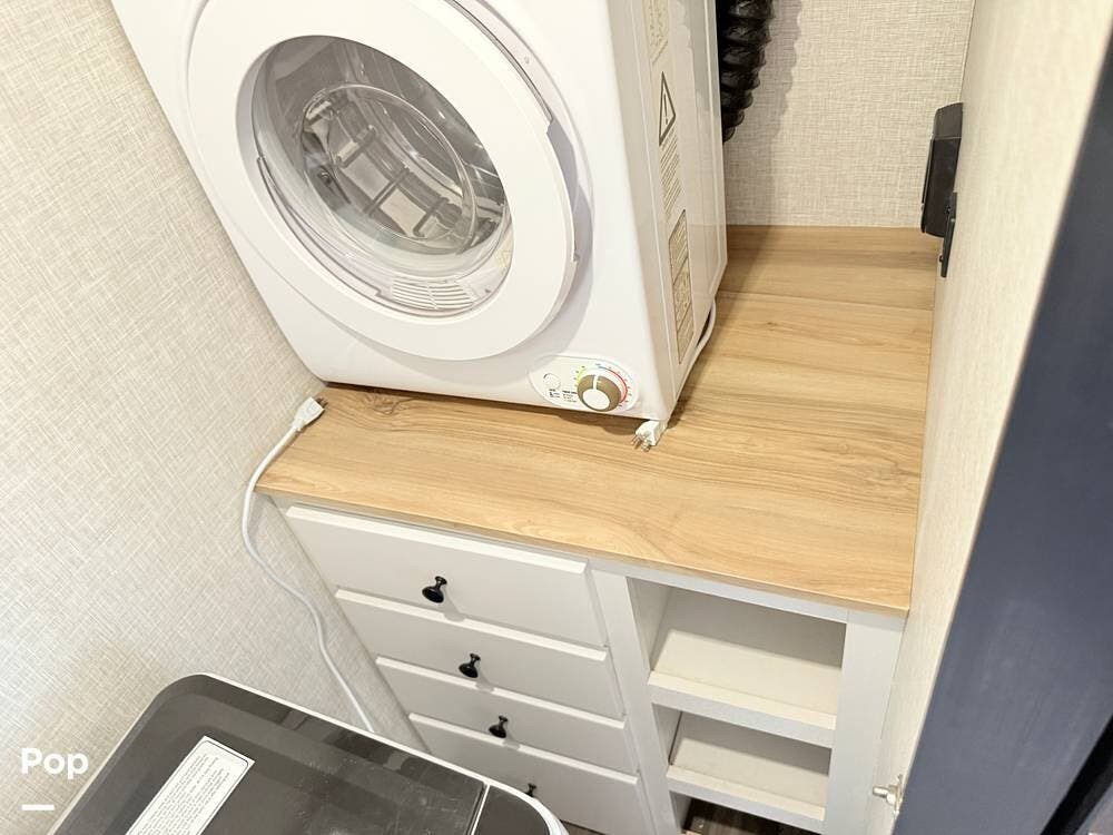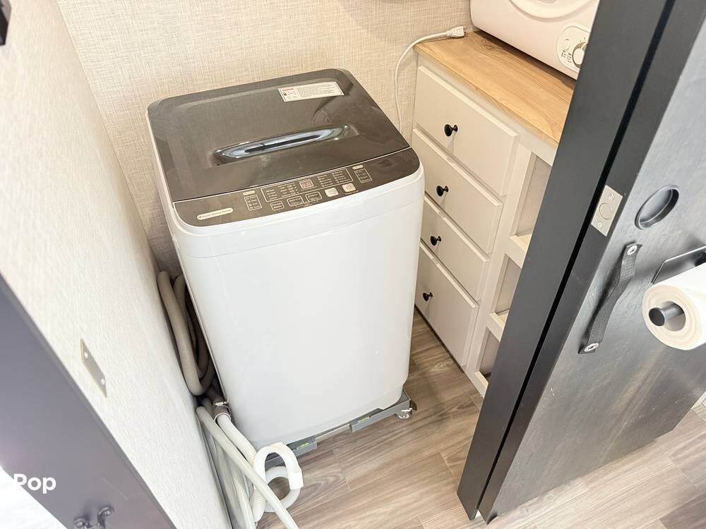 At the rear of the trailer is a large full-bath with an expansive walk in closet - also includes portable washer and dryer!