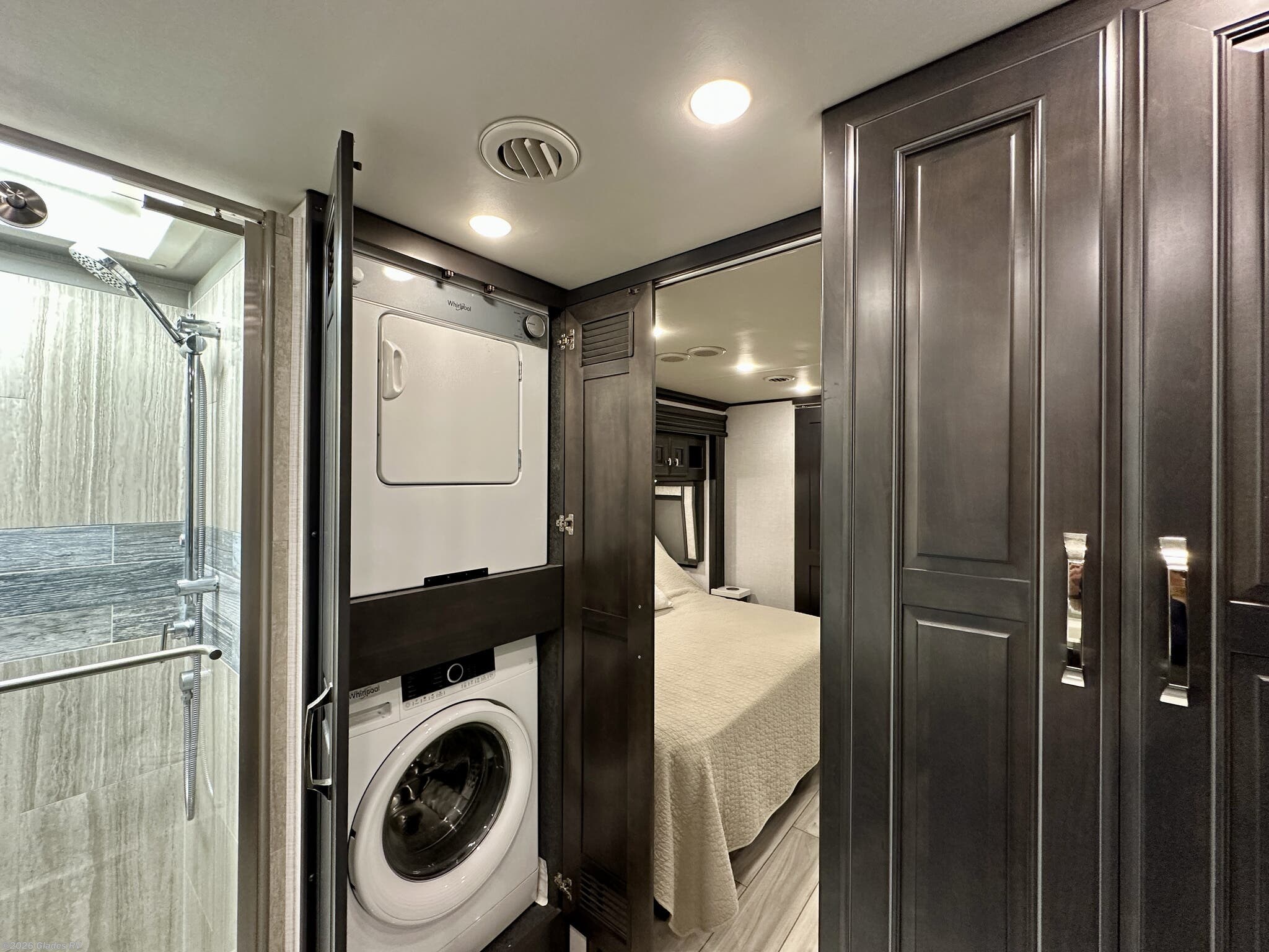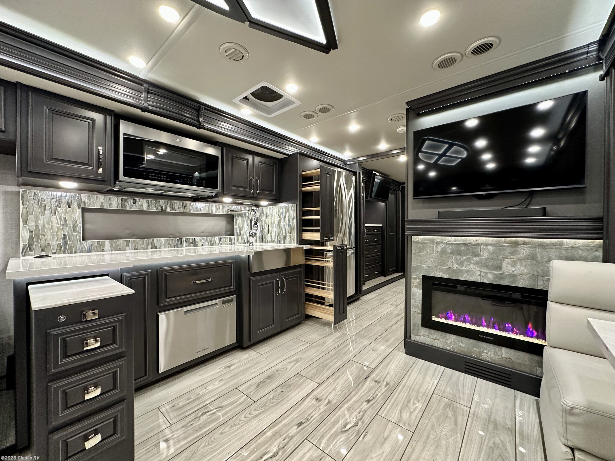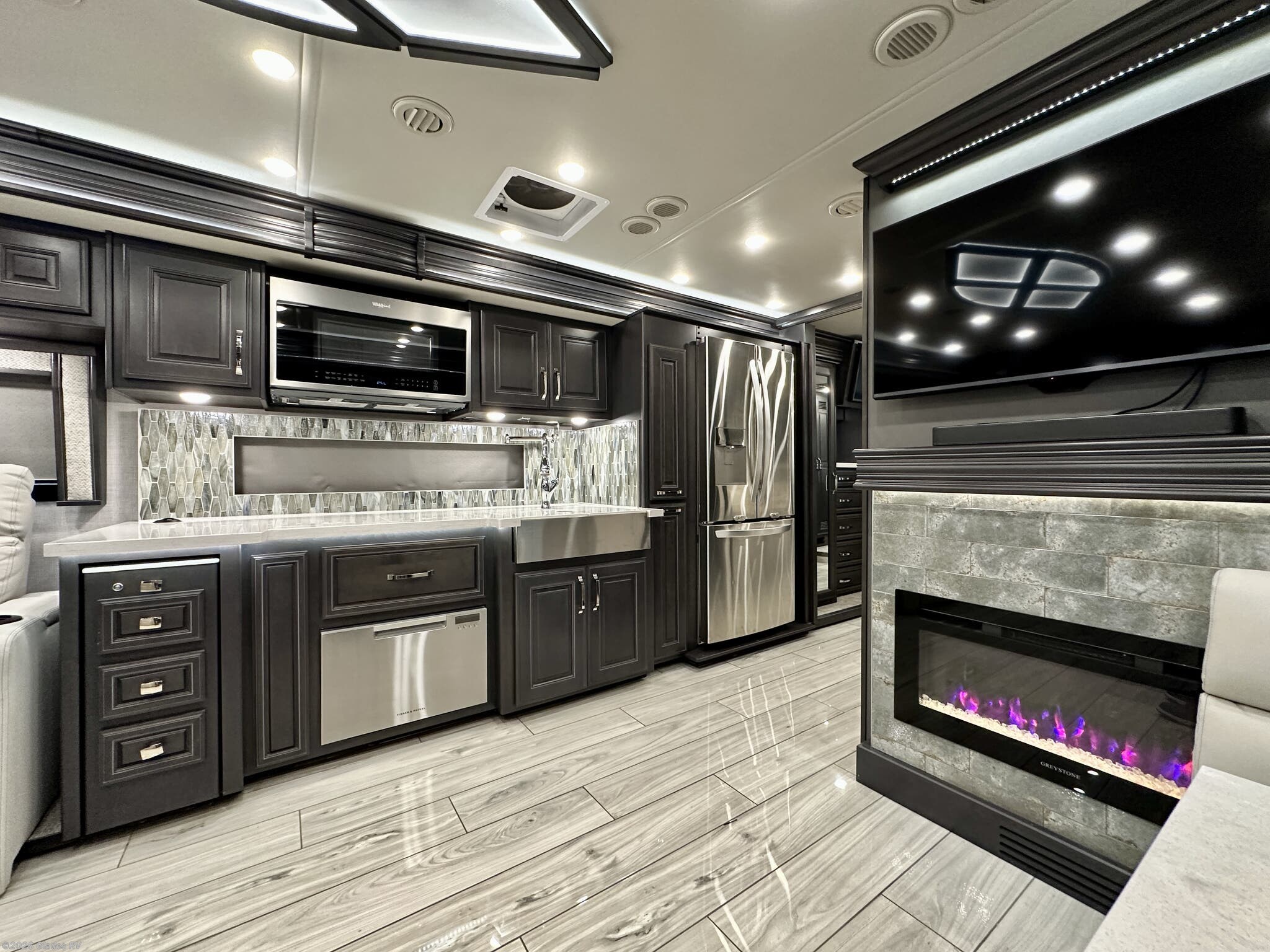 AUTO LEVELING, POWER INTEGRATED ROOF MOUNTED AWNINGS, KING BED, STACKED WASHER & DRYER, SLIDE TOPPERS, POWER STEP, SLIDE TRAYS IN BASEMENT, AQUA-HOT HYDRONIC HEATING, FIREPLACE, OUTSIDE ENTERTAINMENT, KITCHEN WINDOW, RESIDENTIAL REFRIGERATOR, POWER DROP DOWN BUNK, HEATED FLOORS, DISHWASHER AND MUCH MORE...