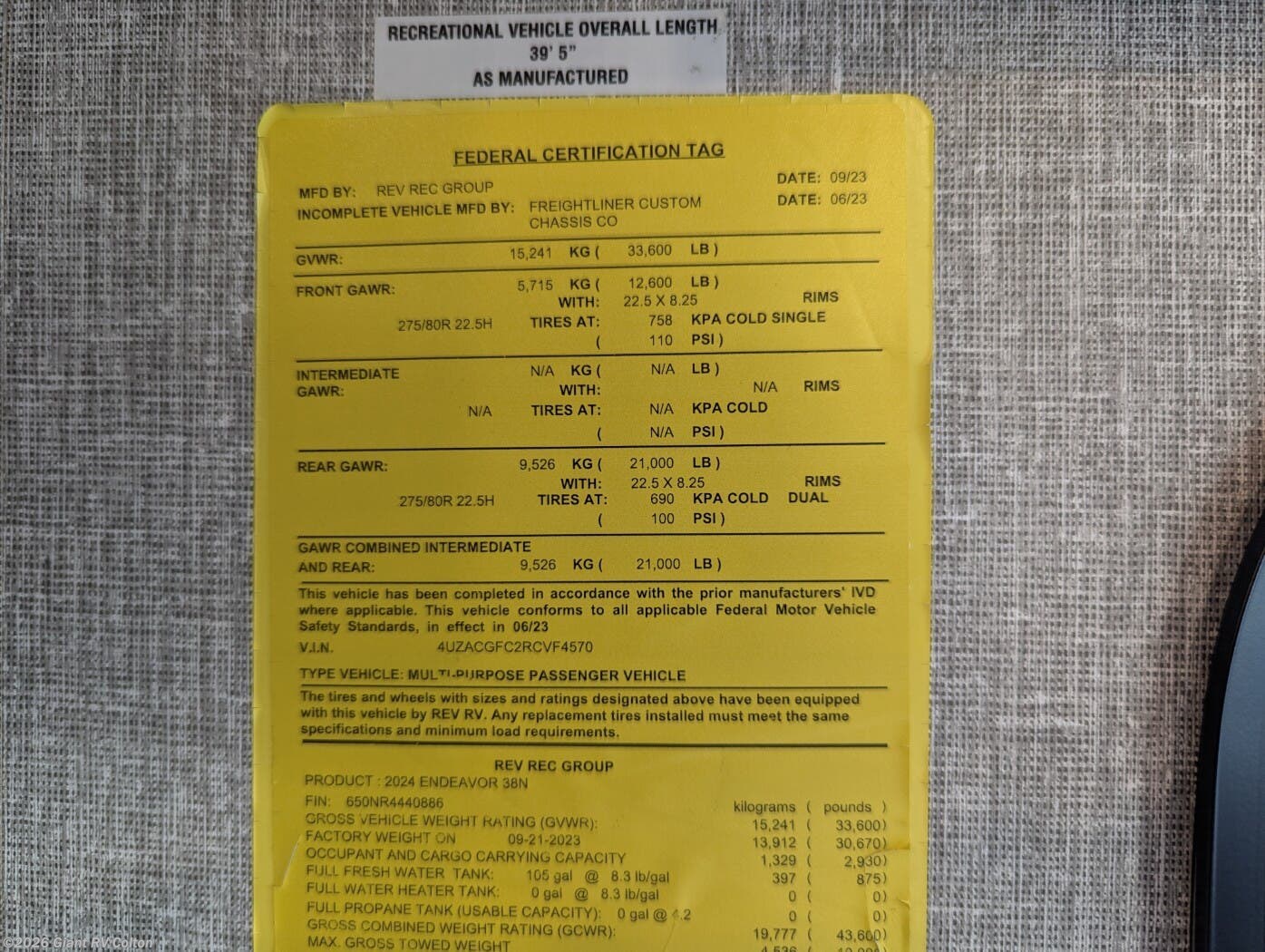 Step into upscale comfort with the 2024 Holiday Rambler Endeavor 38N, a premium Class A diesel motorhome designed for refined travel and elevated living on the road. With a sophisticated living-room-forward layout, a chef-style galley kitchen, and a private rear bedroom retreat, this model seamlessly blends elegance and functionality for every journey.