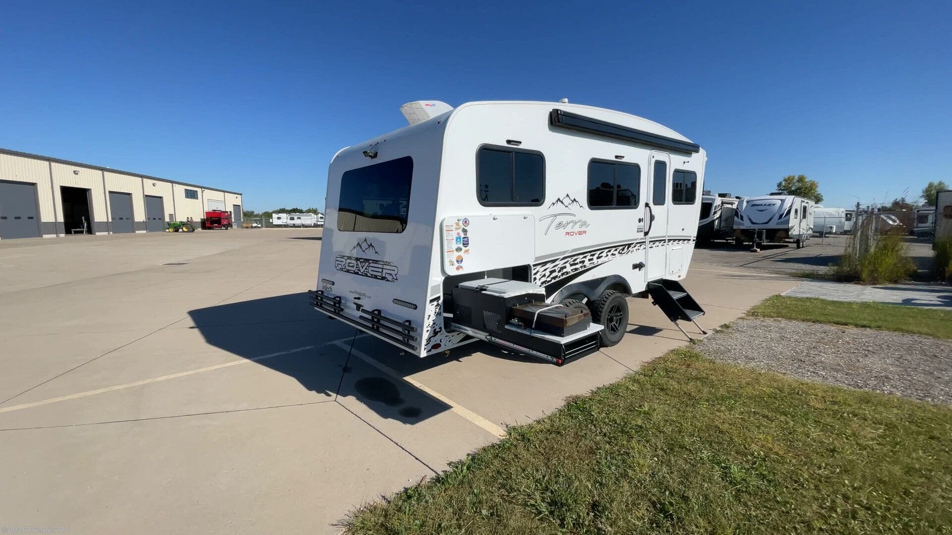 ROVER PACKAGE, FIBERGLASS EXTERIOR, SLIDEOUT REAR KITCHEN WITH GRIDDLE, ELECTRIC AWNING, ELECTRIC TONGUE JACK, LP TANK COVER, 2 EXTERIOR COMPARTMENTS, REAR CAMERA, TANKLESS GAS WATER HEATER, OUTSIDE KITCHEN, 30AMP SERVICE, DETACHABLE POWER CORD, 4 MANUAL STAB JACKS, FIRE EXTINGUISHER, SMOKE/CO/LP DETECTORS, 2 DOOR 12V FRIDGE, SOLID SURFACE COUNTERS, MICROWAVE, OVEN, 2 TVS IN LIVING & BEDROOM, TV ANTENNA, CABLE PREP, AM/FM & BLUETOOTH STEREO, 1 AC UNIT, ROLLER SHADES, U-SHAPE DINETTE, ODS BATHROOM, SHOWER, PORCELAIN TOILET, 12V EXHAUST FAN, QUEEN CORNER BED, SLEEPS 4, UVW: 5086 LBS, GVWR: 7500 LBS-Y, AS-IS NO WARRANTY