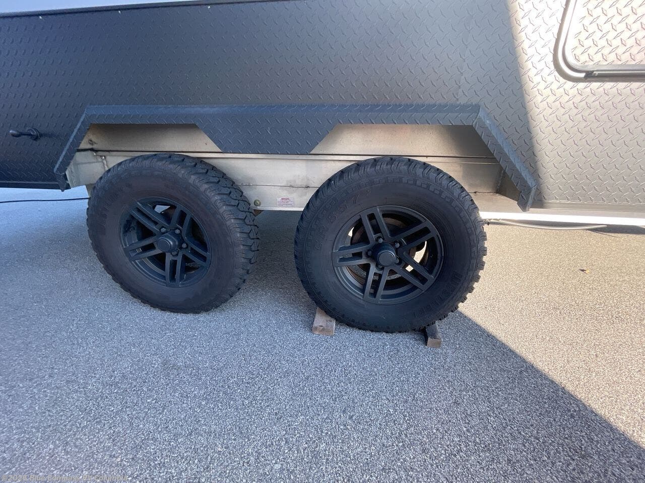 Navigate tough roads in this O-V-R travel trailer! You will love having your own walk-around queen bed in the front bedroom, or you can choose the optional twin beds in place of the queen bed. There is a private porcelain toilet and a round sink across the hall from the shower, allowing two people to freshen up at once, and you'll appreciate the base cabinet with under-sink storage for your toiletries. Once you've worked up an appetite from hiking, head to the kitchen to prepare lunch on the stainless steel two burner cooktop and grab a cold drink from the 10 cu. ft. 12V refrigerator. You can dine at the L-shaped dinette, or head outdoors to relax in your camp chair. Add the optional slide out exterior kitchen or the optional 3.6kW LP generator for even more convenience!